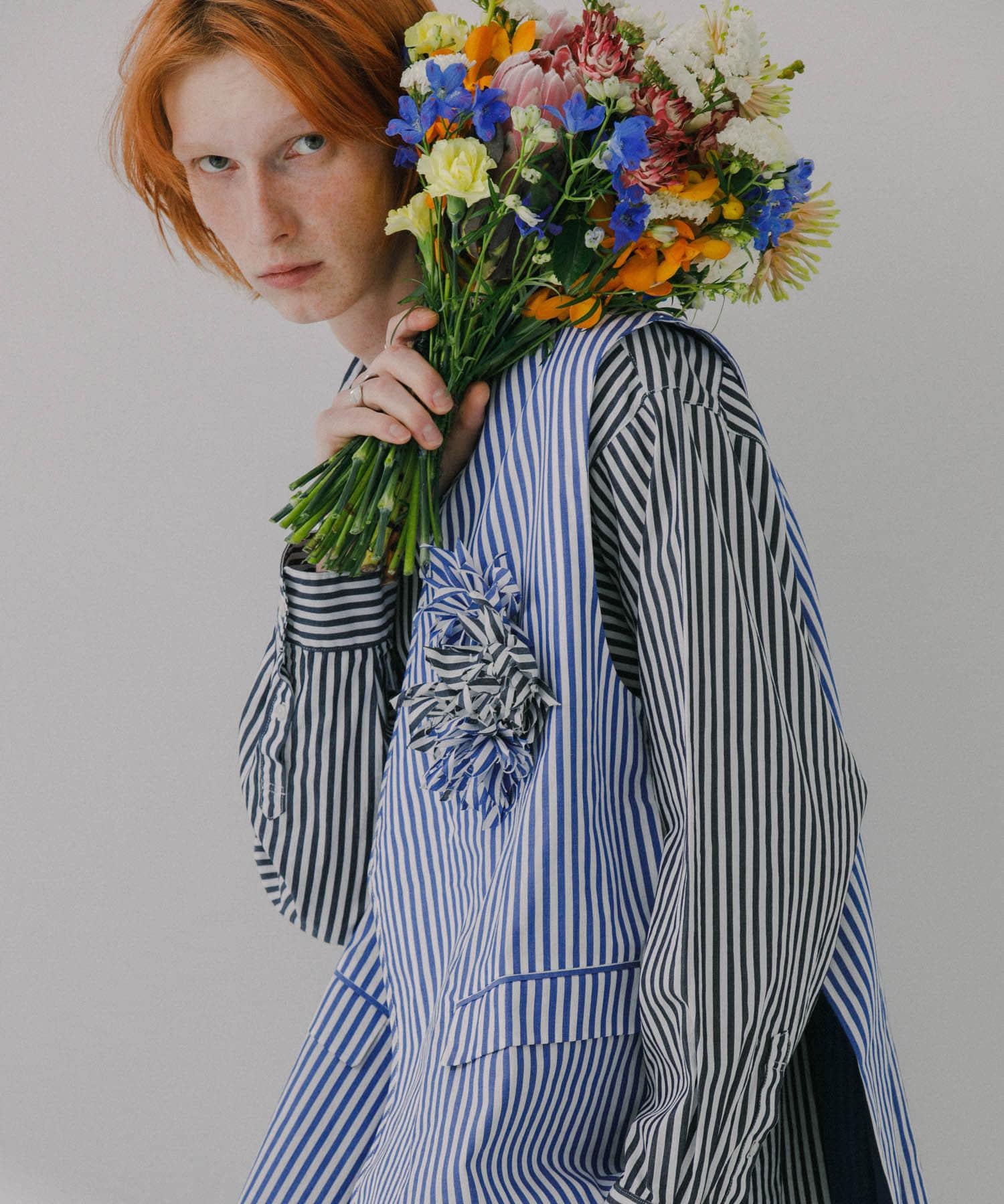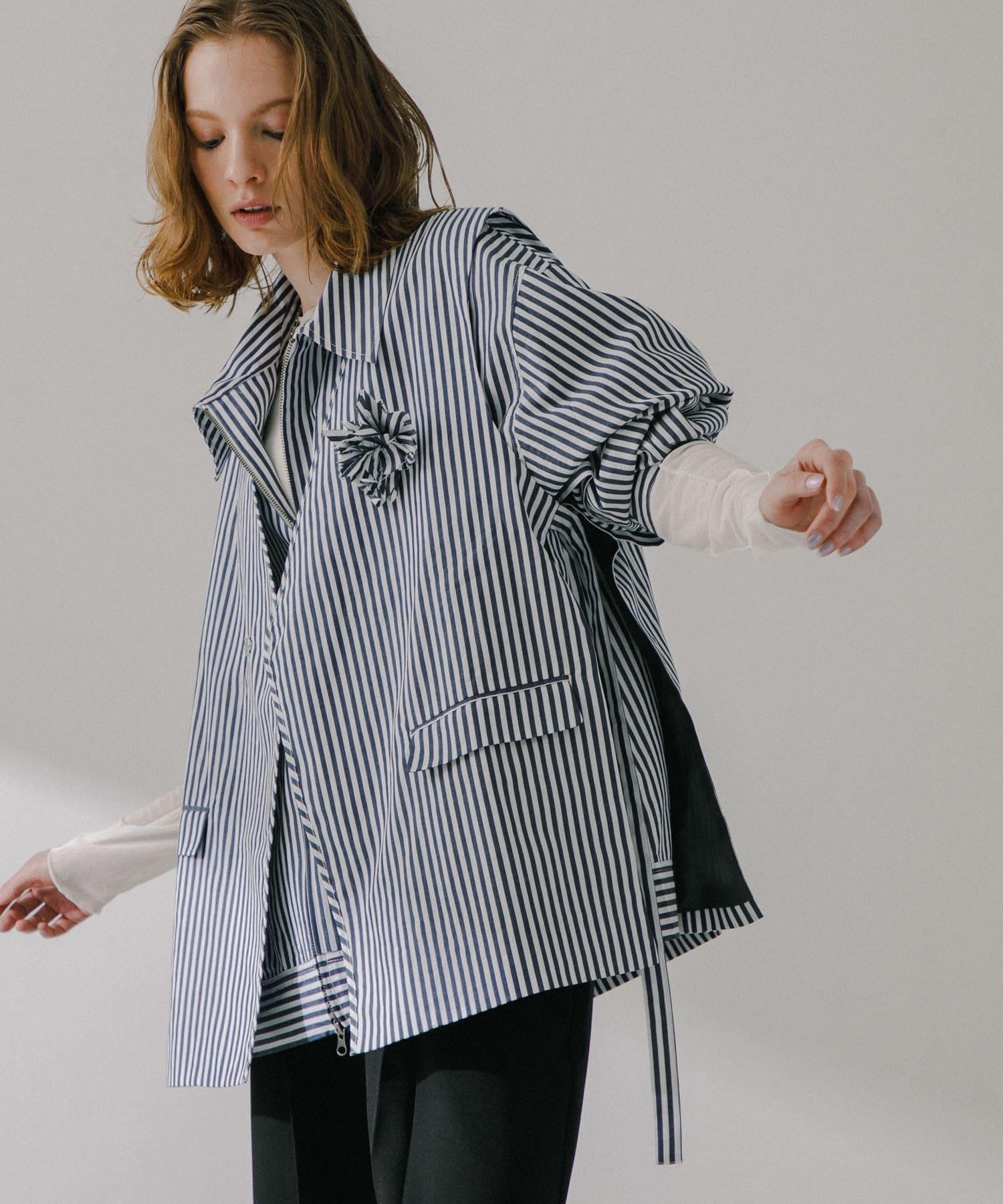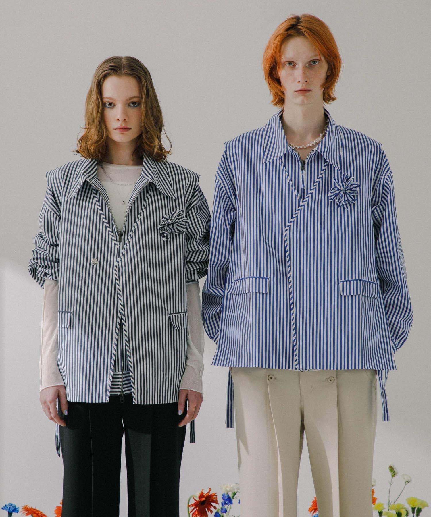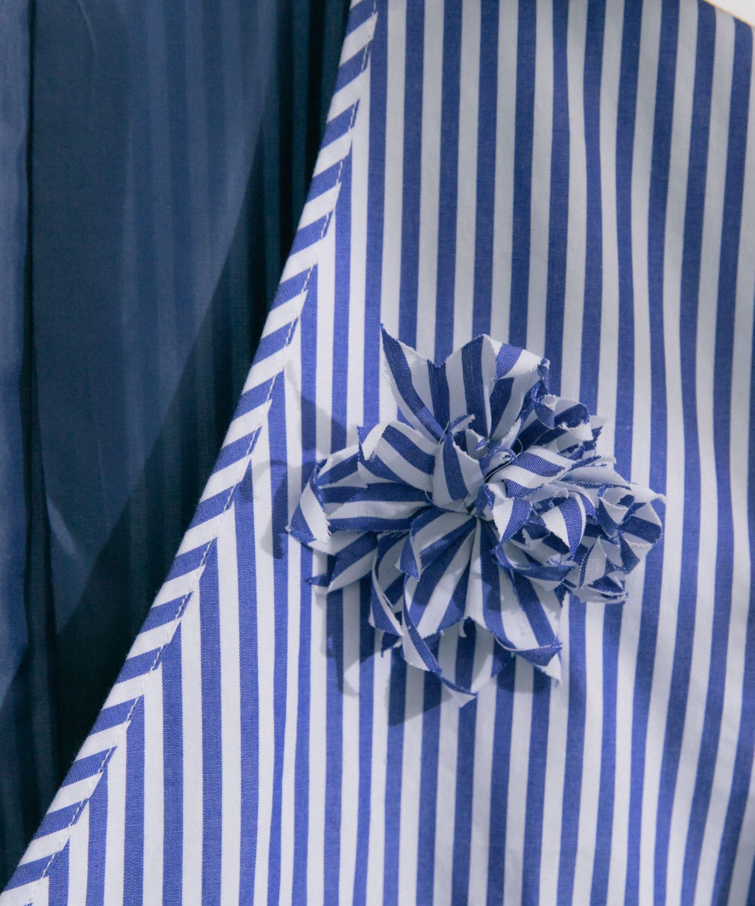 條紋花朵胸花襯衫 Blouson AA45-17S101