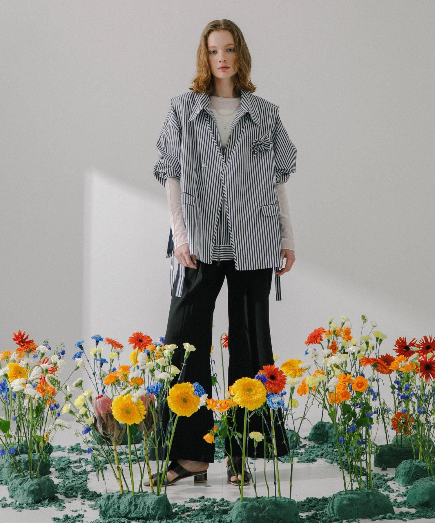 簡潔、基本的條紋面料讓您可以搭配已有的單品。我們還建議您與同材質的襯衫或罩衫疊穿,打造獨特造型!胸花的位置可任意選擇!