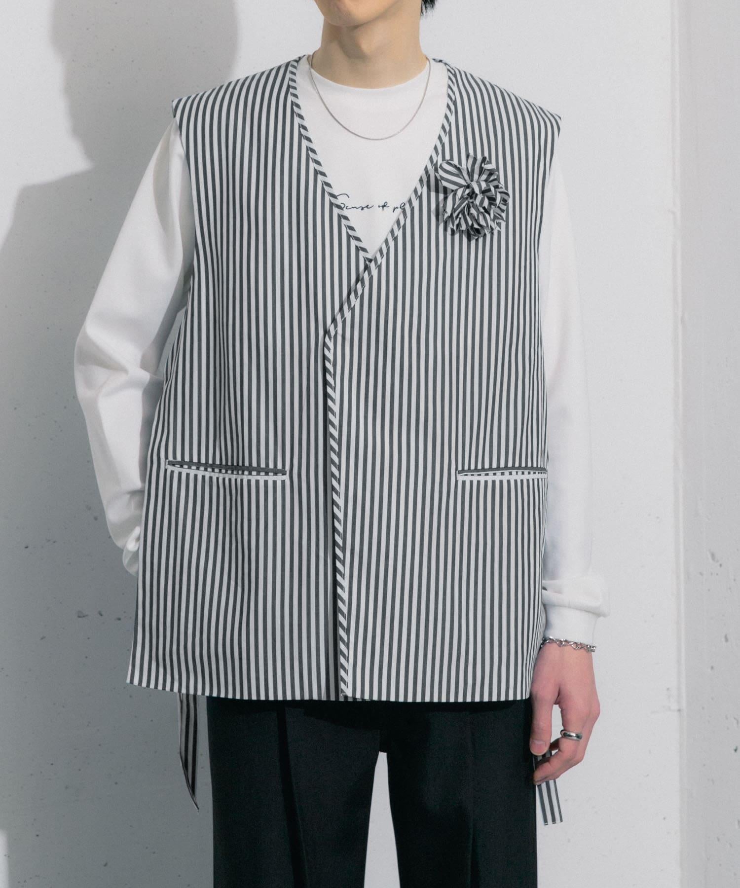 hxcyyd × SOP 條紋花卉胸花襯衫馬甲(男女同款)
