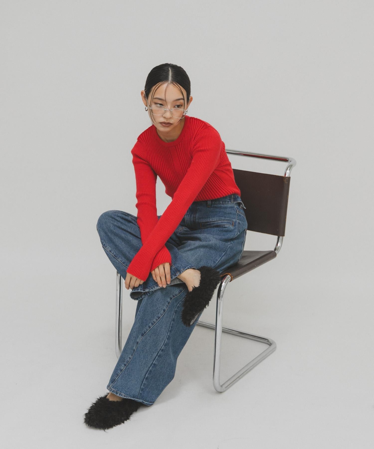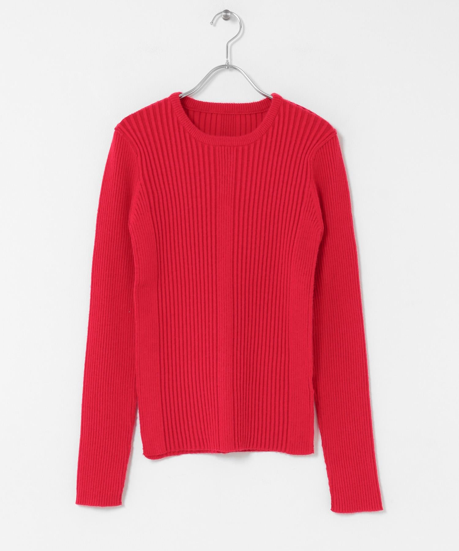 圓領針織衫,採用與 Random RIB 高領針織衫(KIA7-22J902)相同的面料和顏色。穿著舒適,彈性恰到好處。基本款有 IVORY 和 CHARCOAL,時尚款有 BLUE 和 RED,非常適合作為色彩點綴。