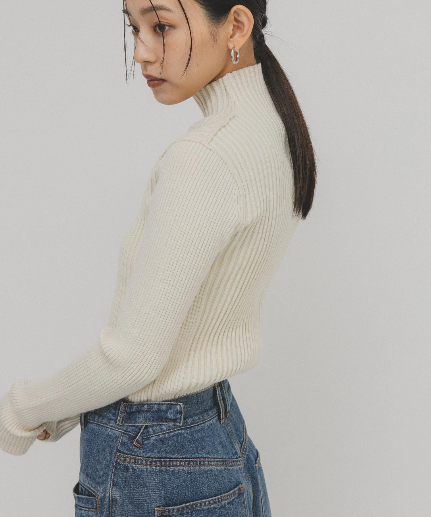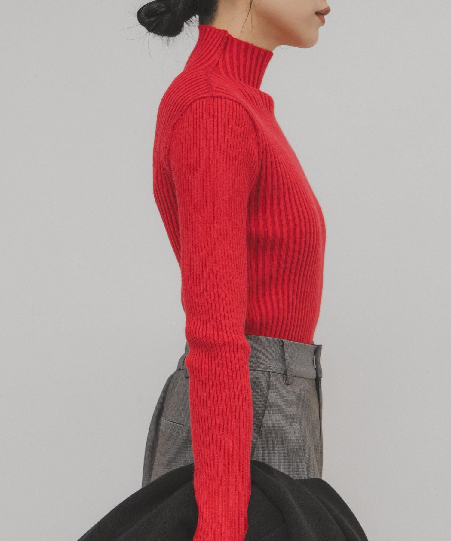 高領針織衫,採用與 Random RIB 圓領針織衫(KIA7-22J903)相同的面料和顏色。舒適合體,彈性恰到好處。基本款有 IVORY 和 CHARCOAL,時尚款有 BLUE 和 RED,非常適合作為色彩點綴。