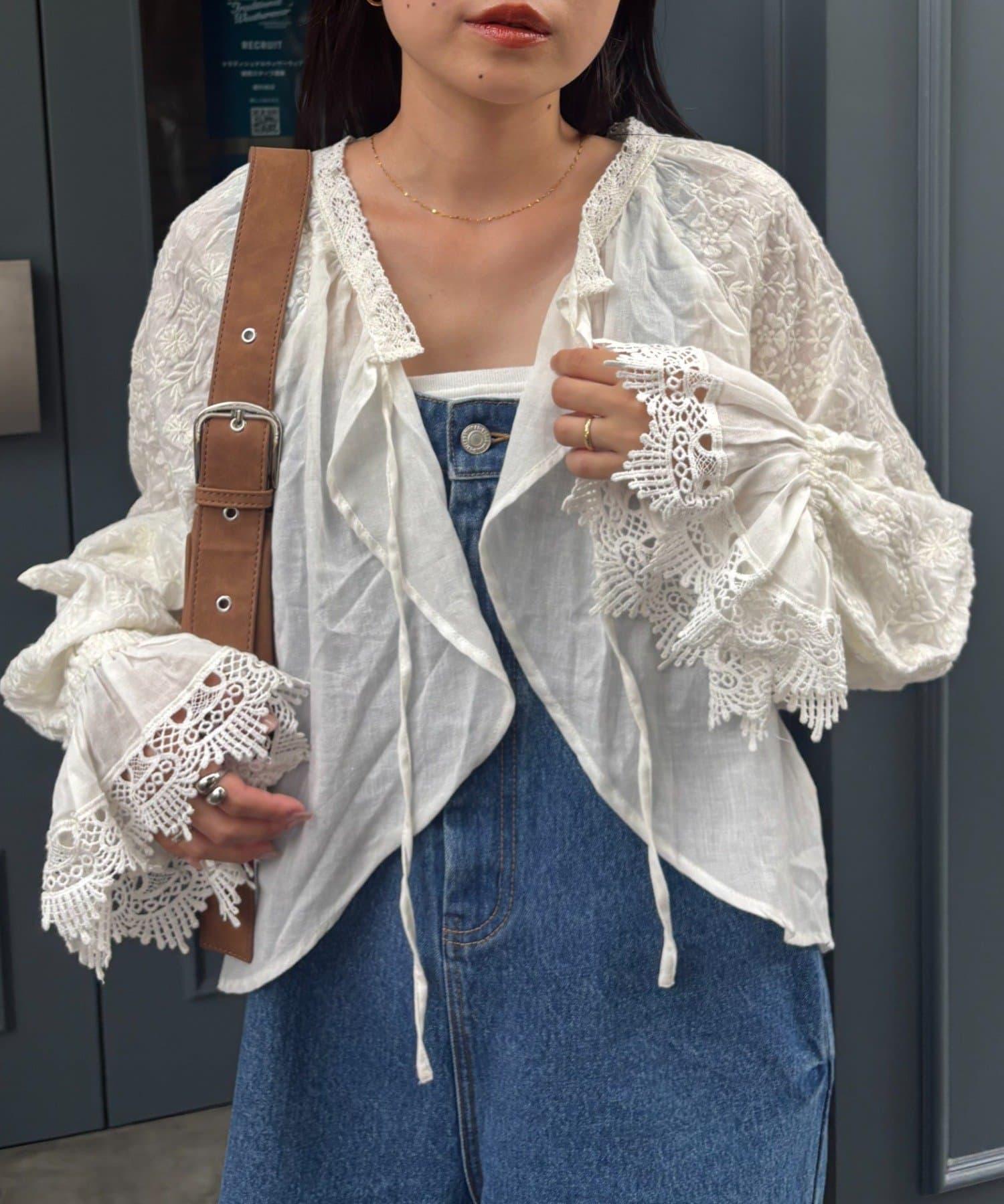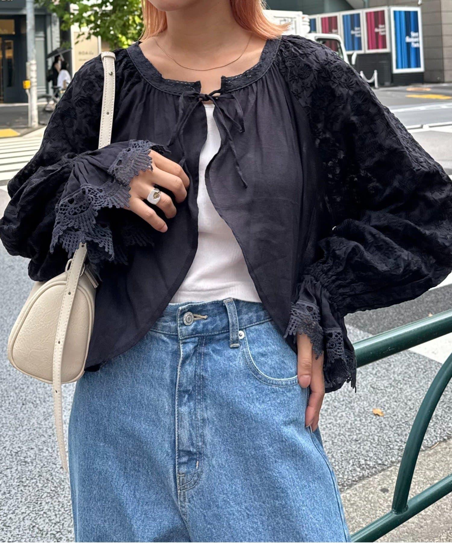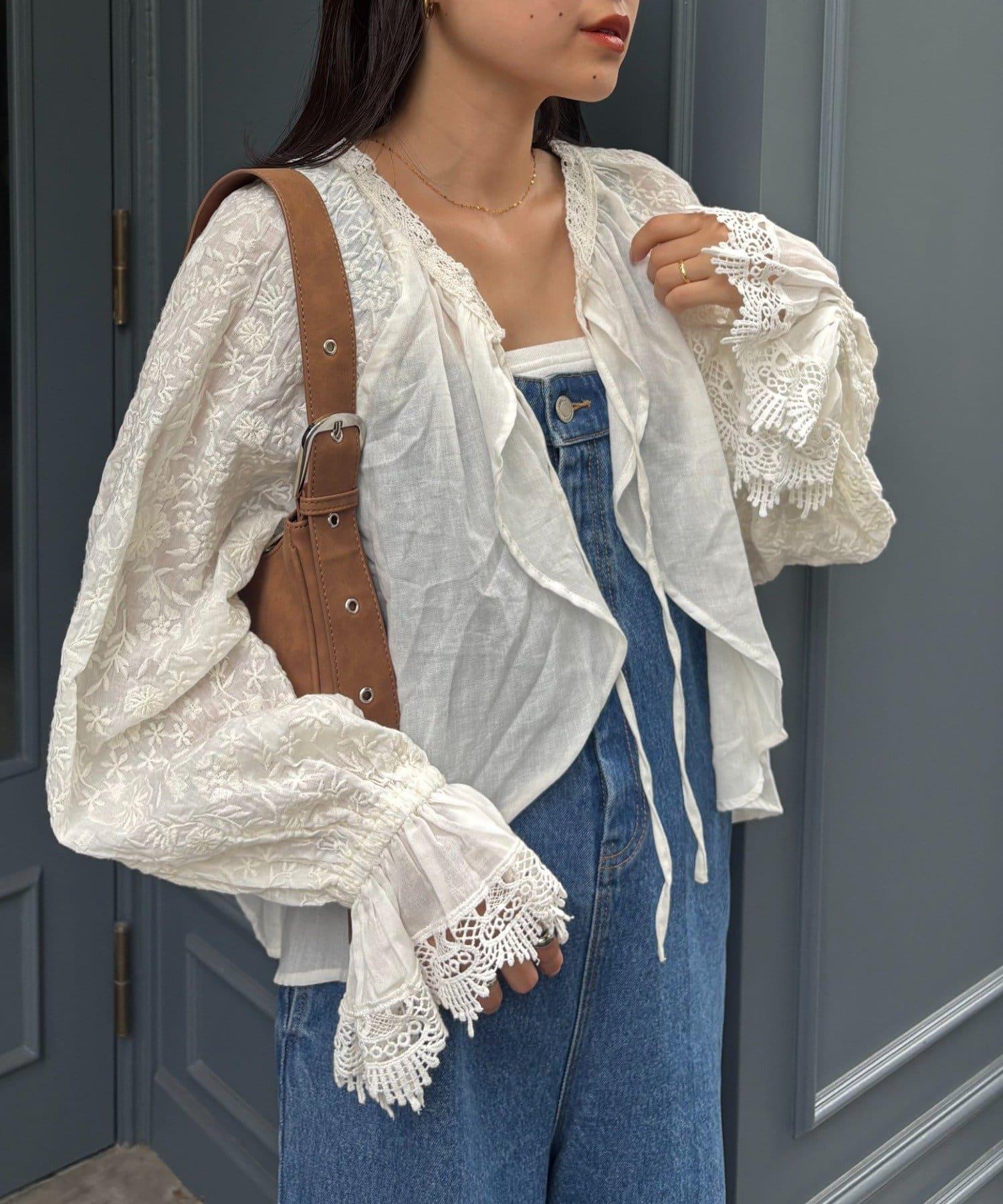 將它套在牛仔褲和 T 恤上,以刺繡和蕾絲為主要特色,打造少女風格。