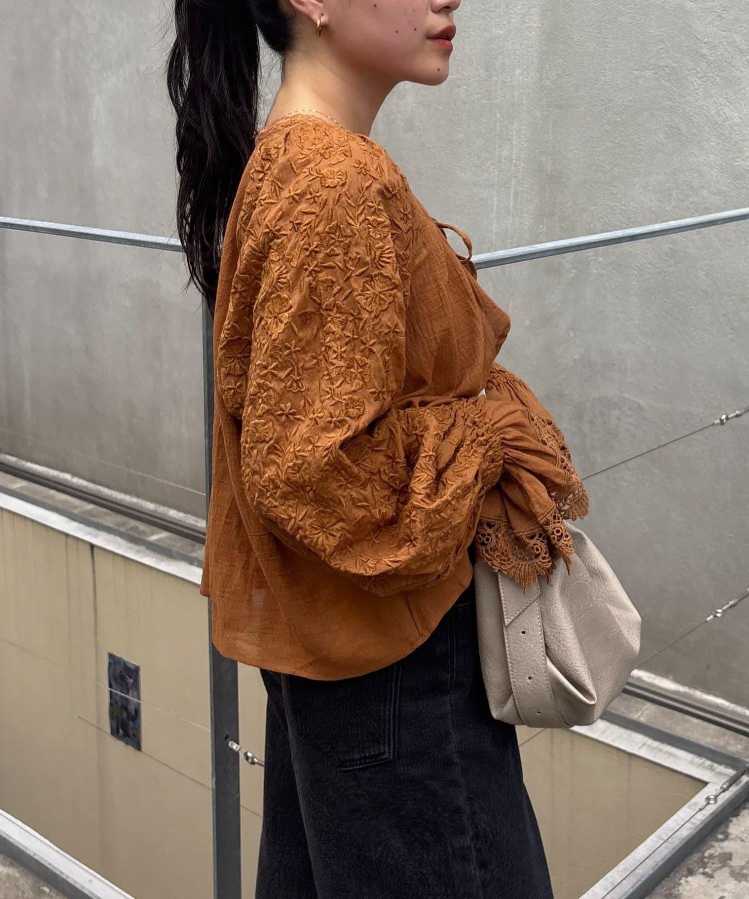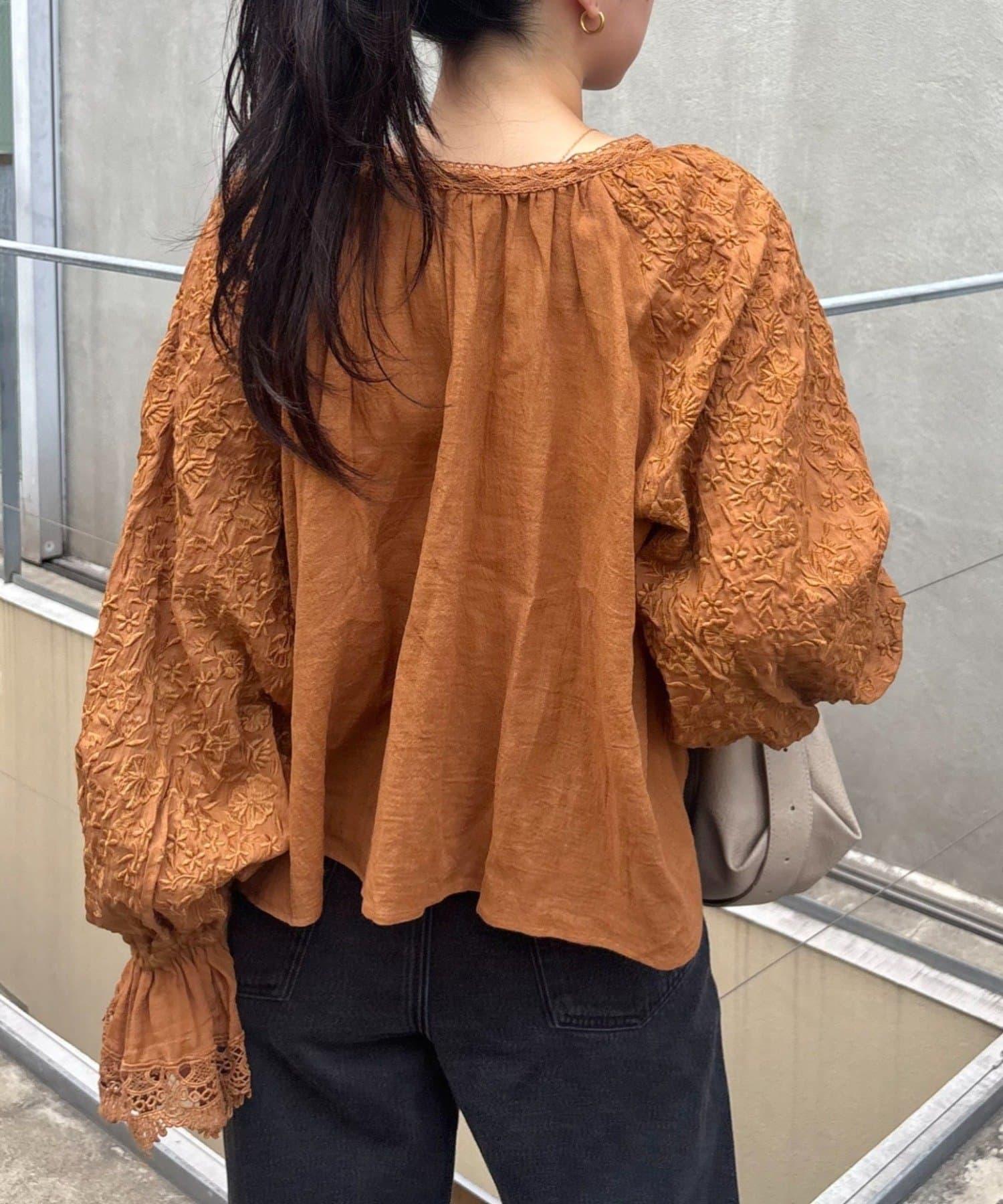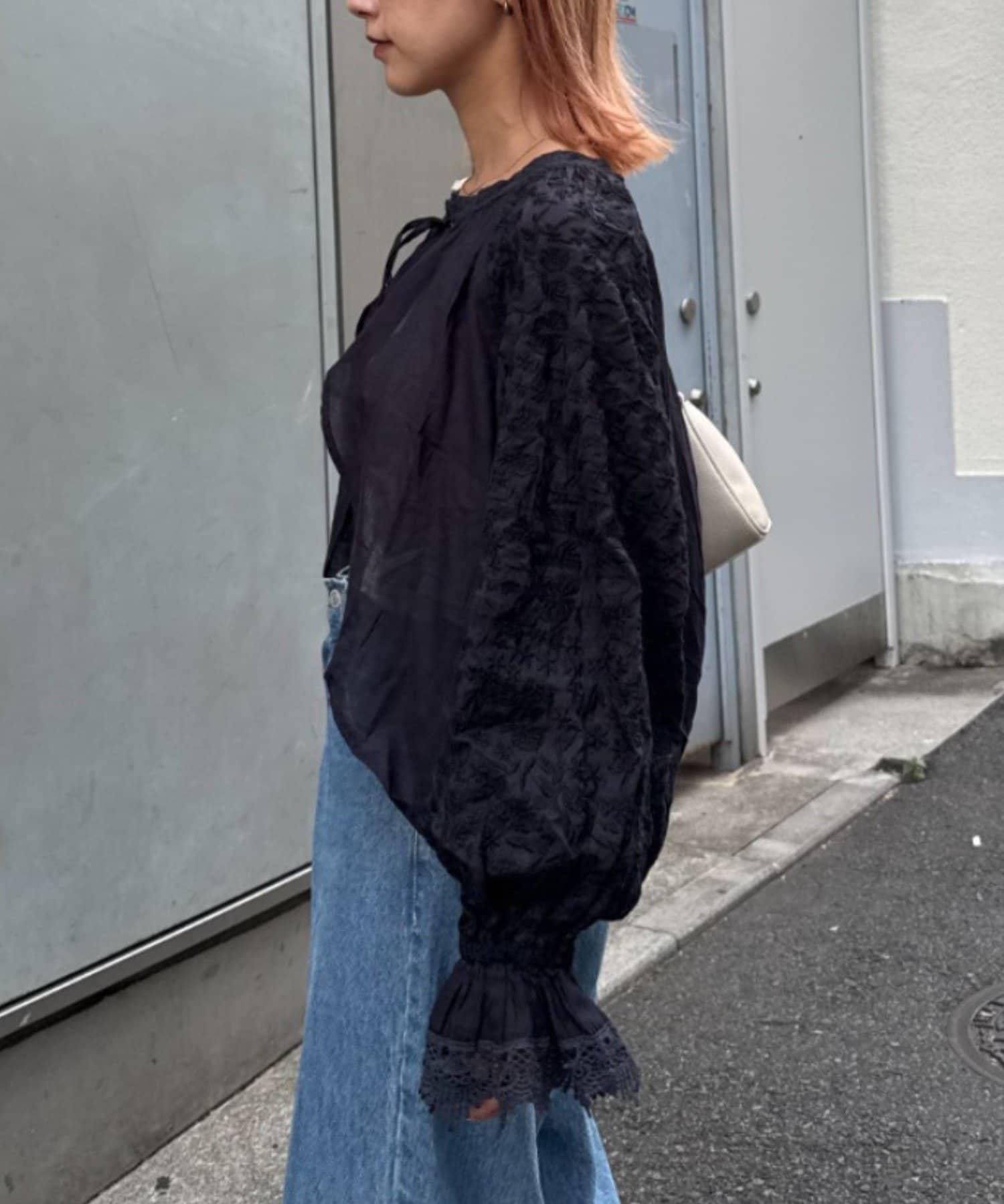 蓬鬆、豐滿的袖子在手腕處收緊,蕾絲在袖子外蔓延開來,設計華麗。