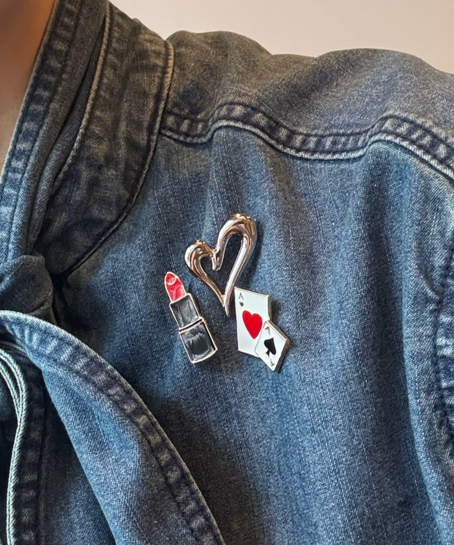 心形胸針,綴有一顆大愛心,極具衝擊力。