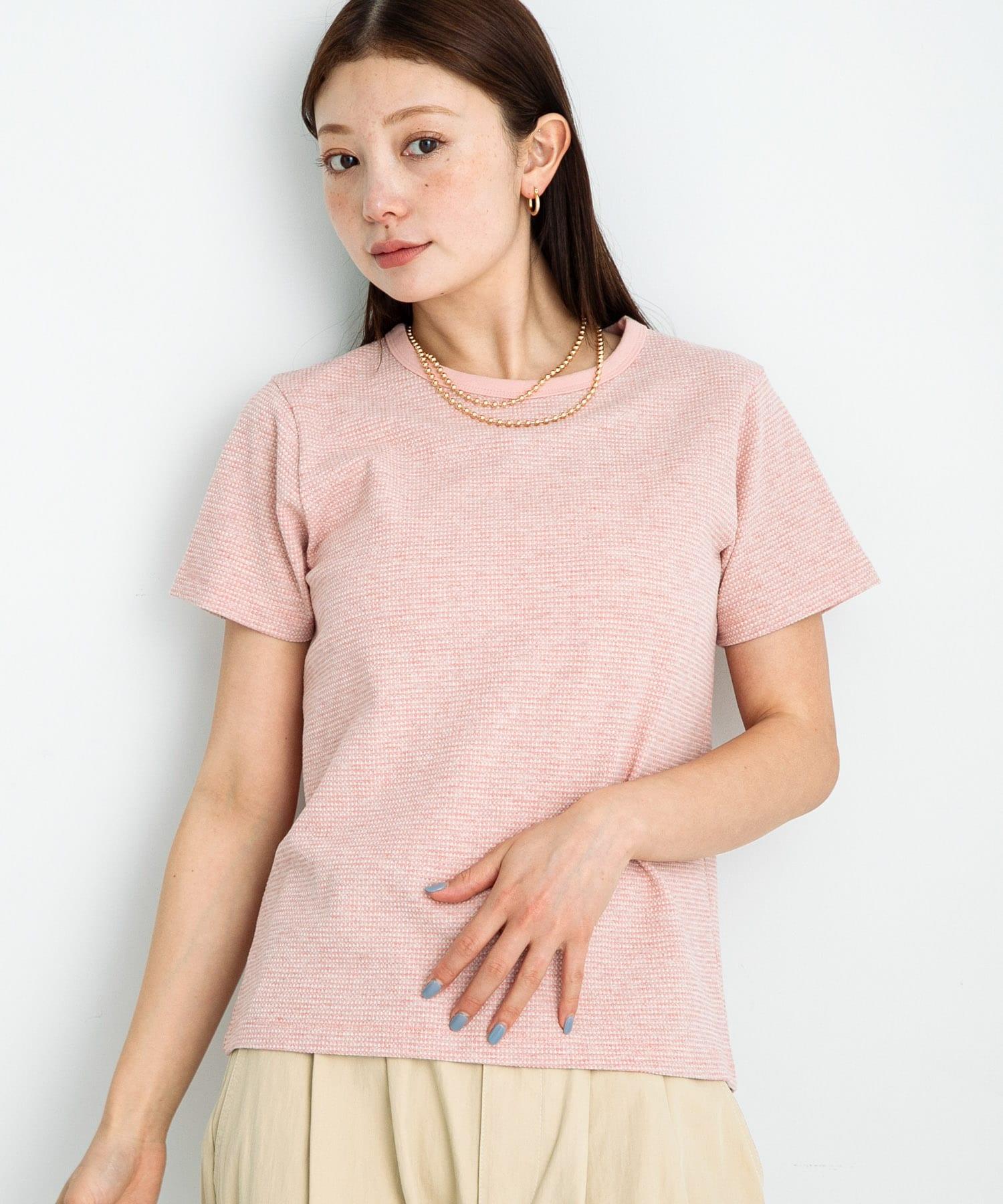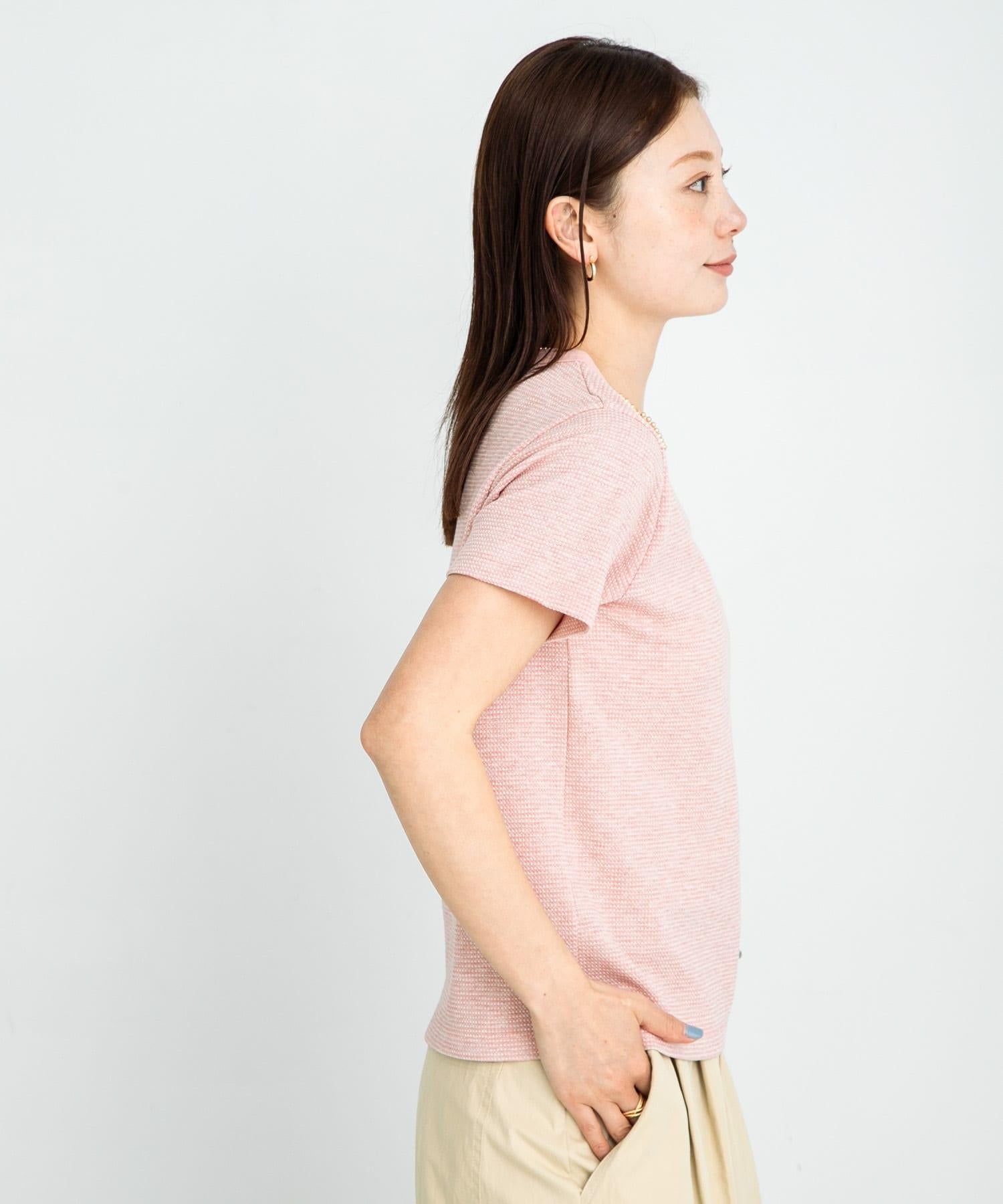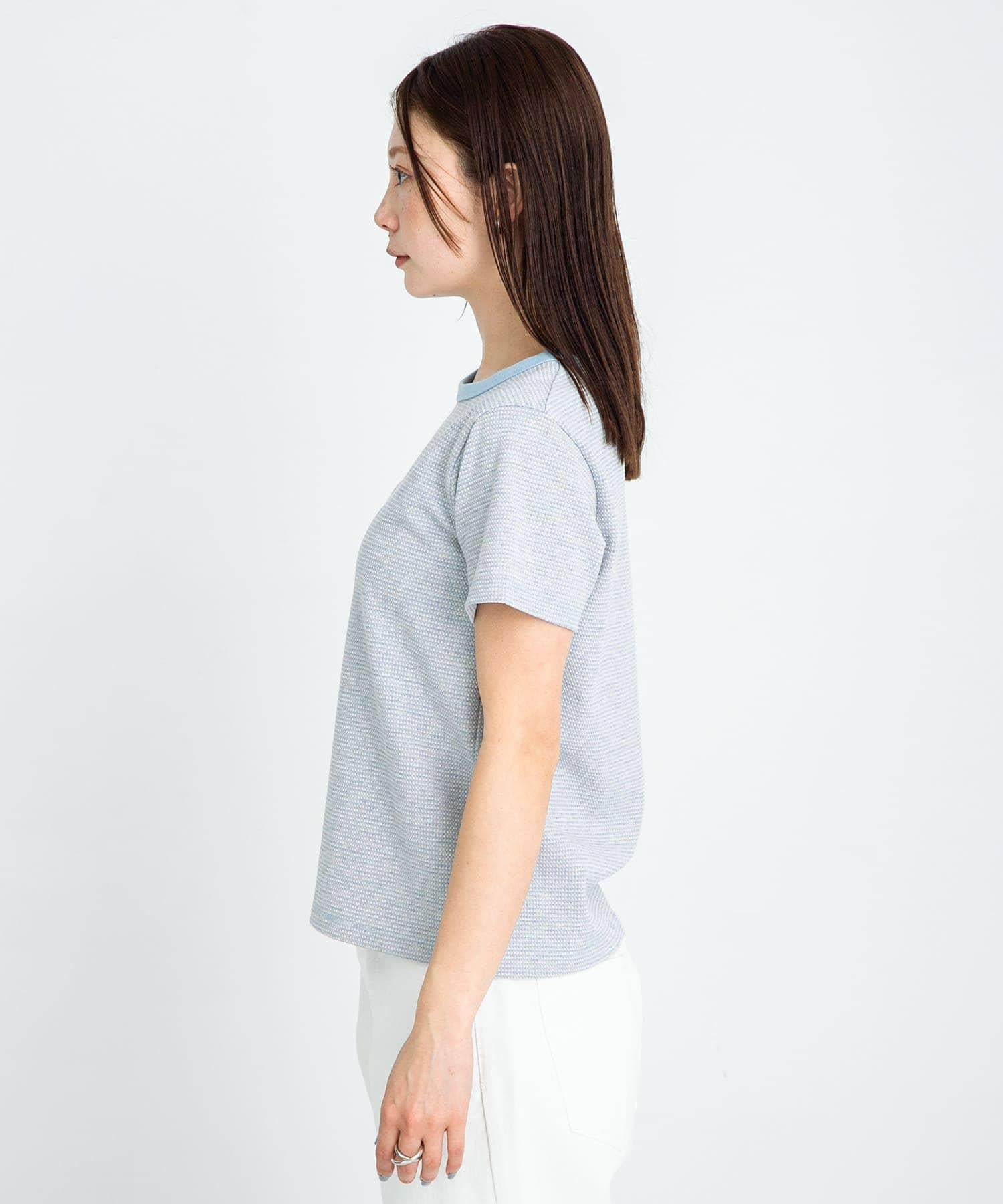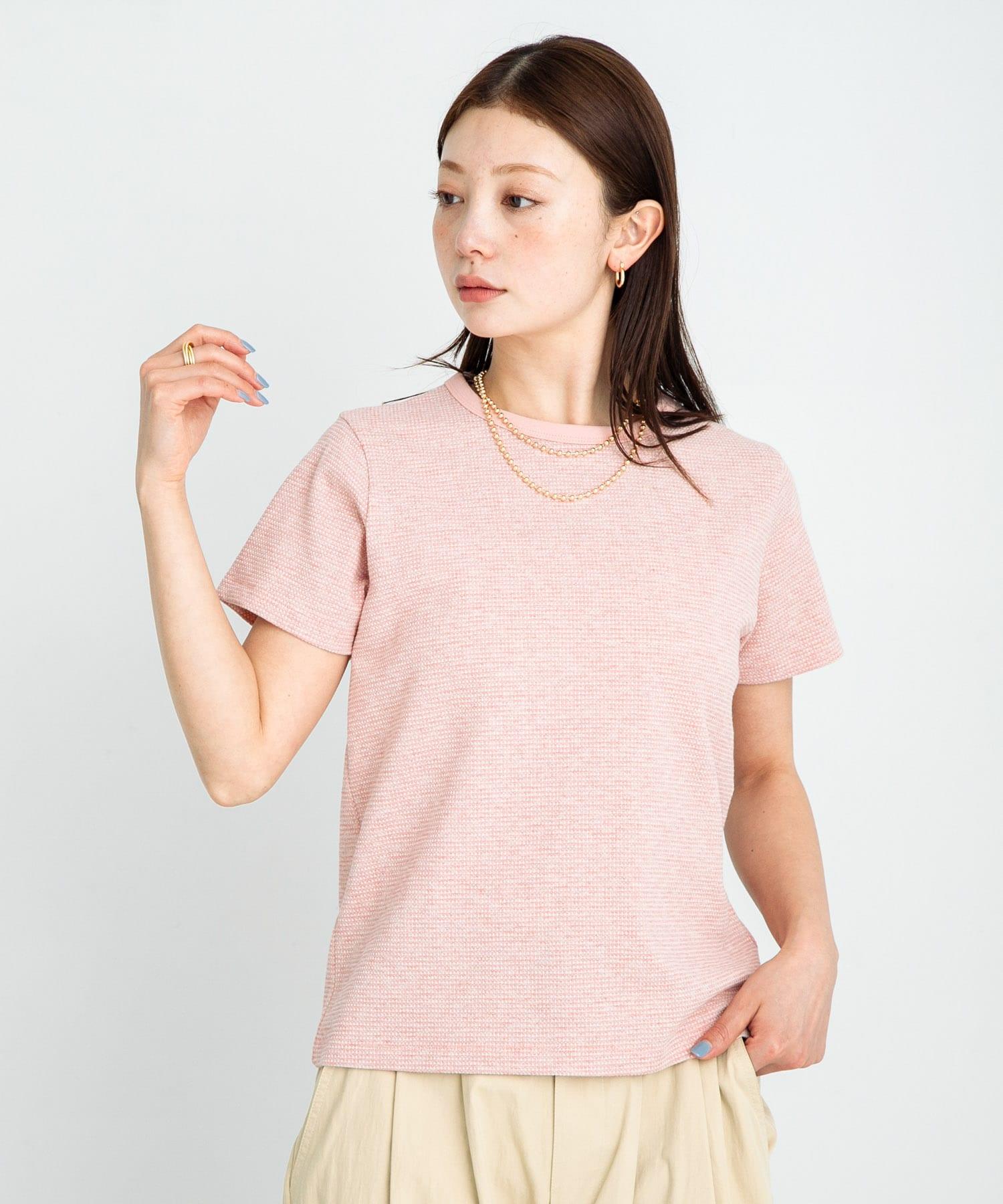 短袖 T 恤採用提花面料製成,表面有紋理。