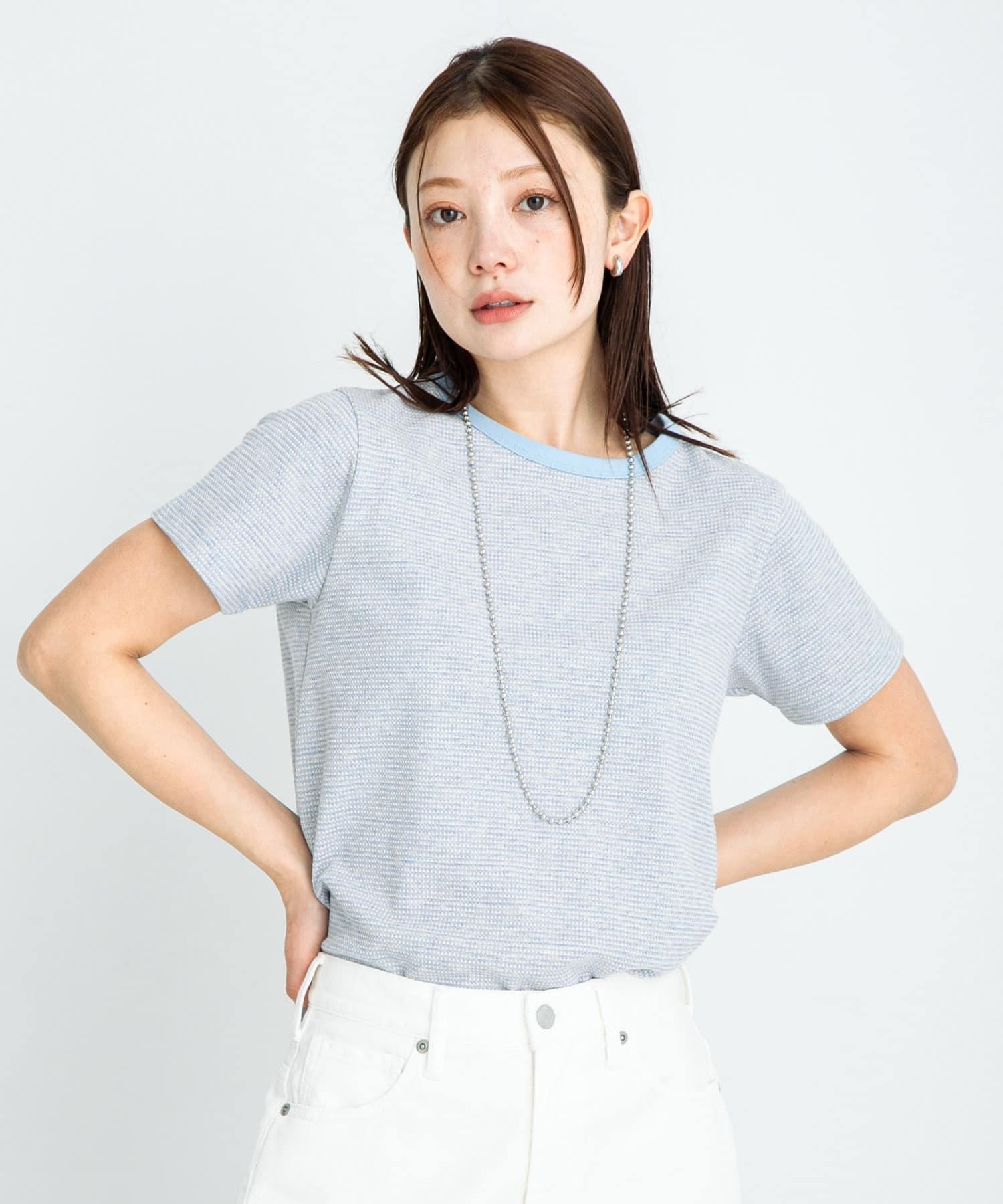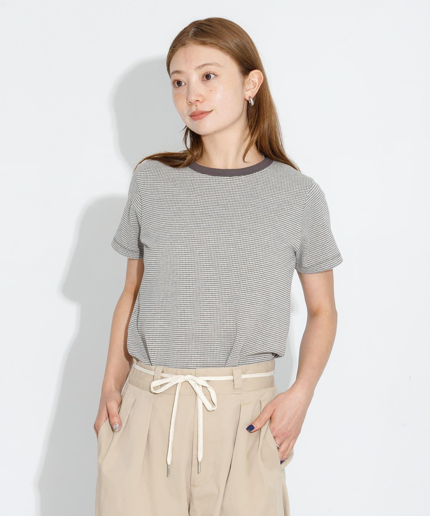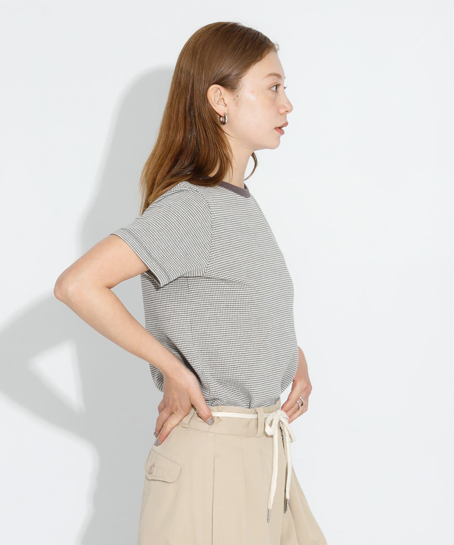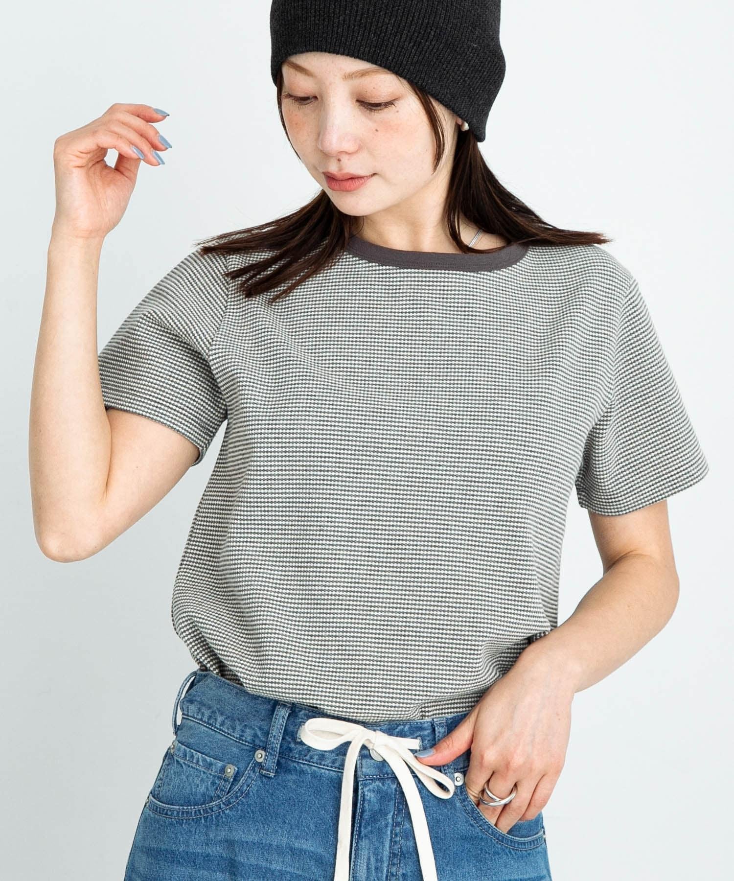 短袖 T 恤採用提花面料製成,表面有紋理。