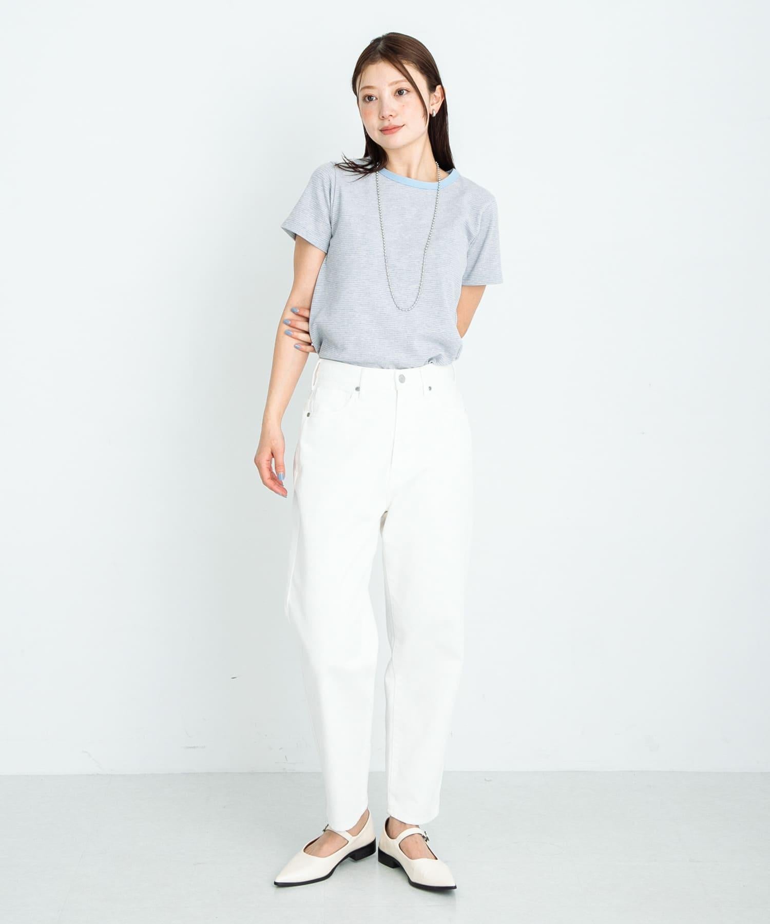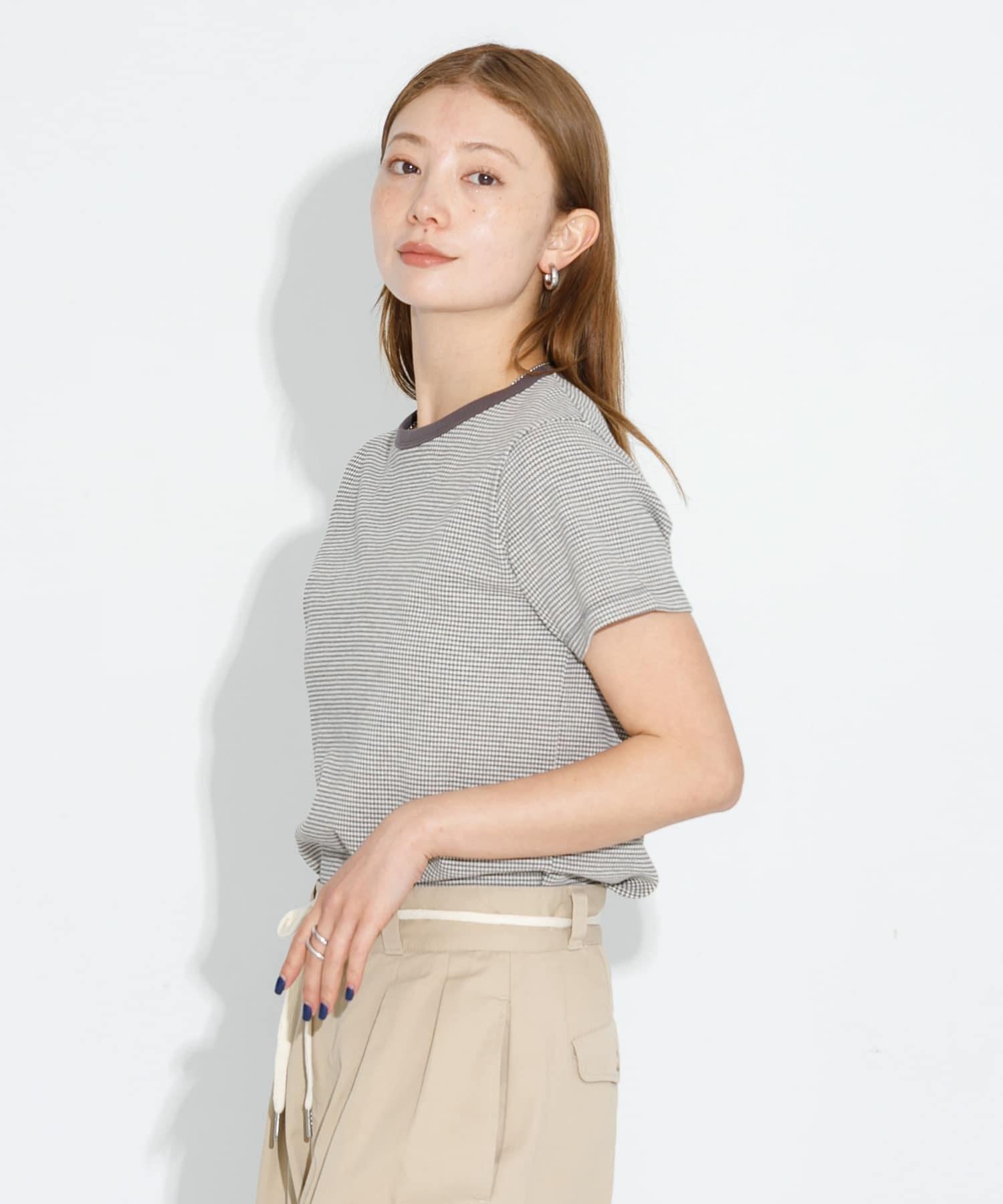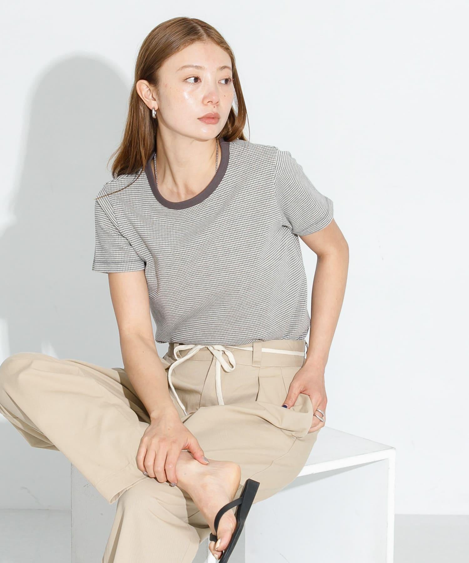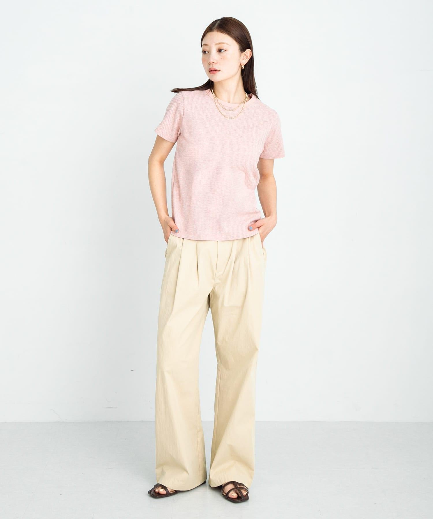 短袖 T 恤採用提花面料製成,表面有紋理。