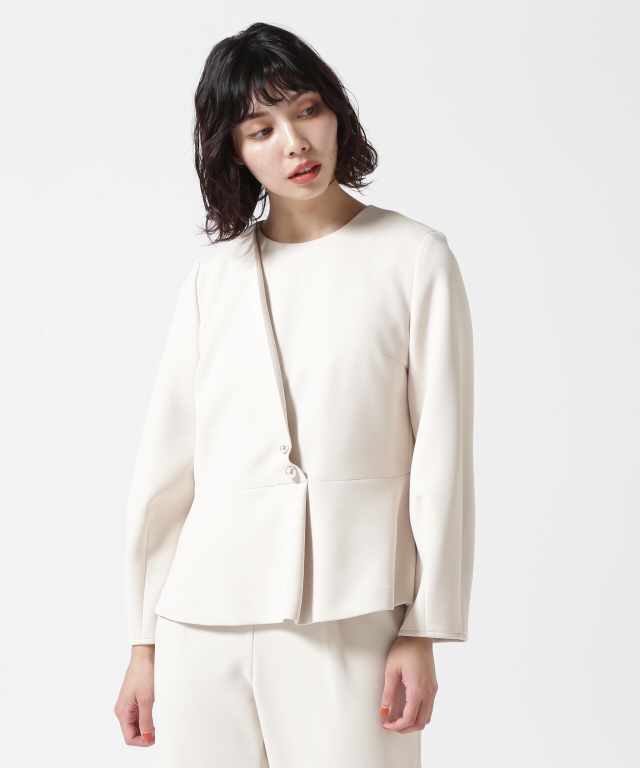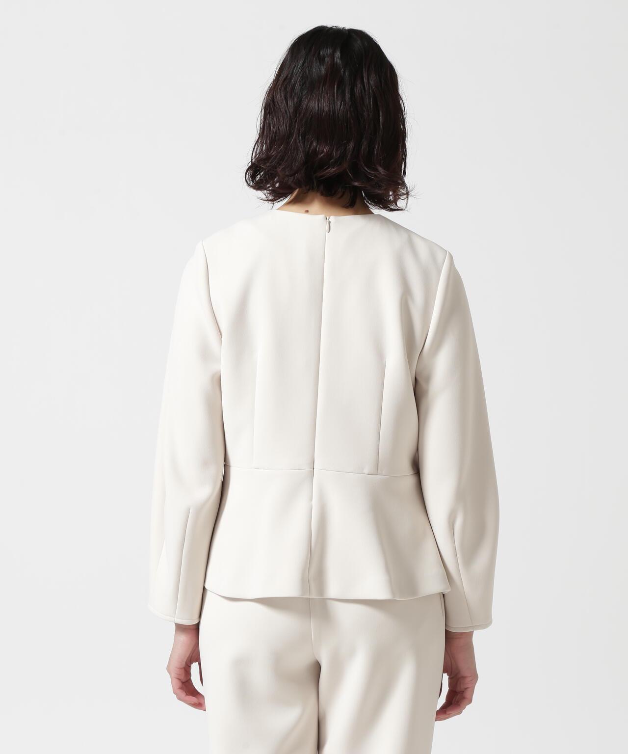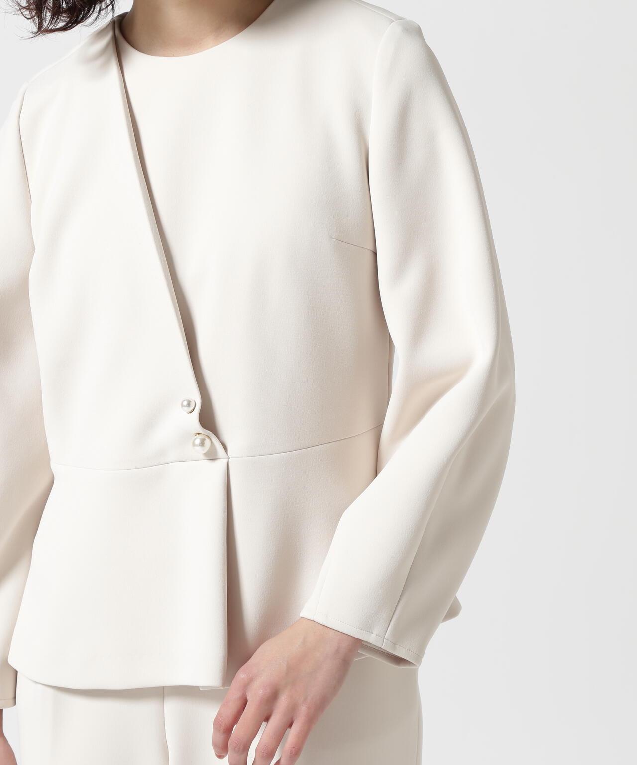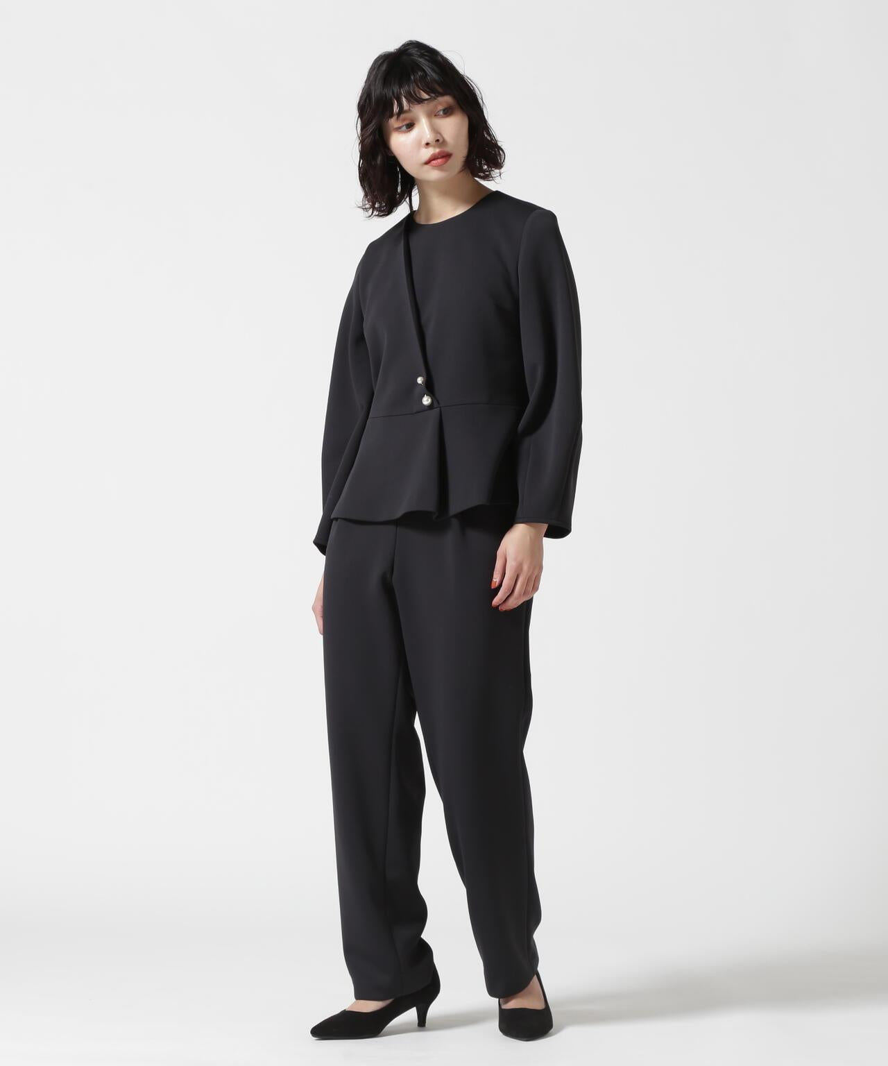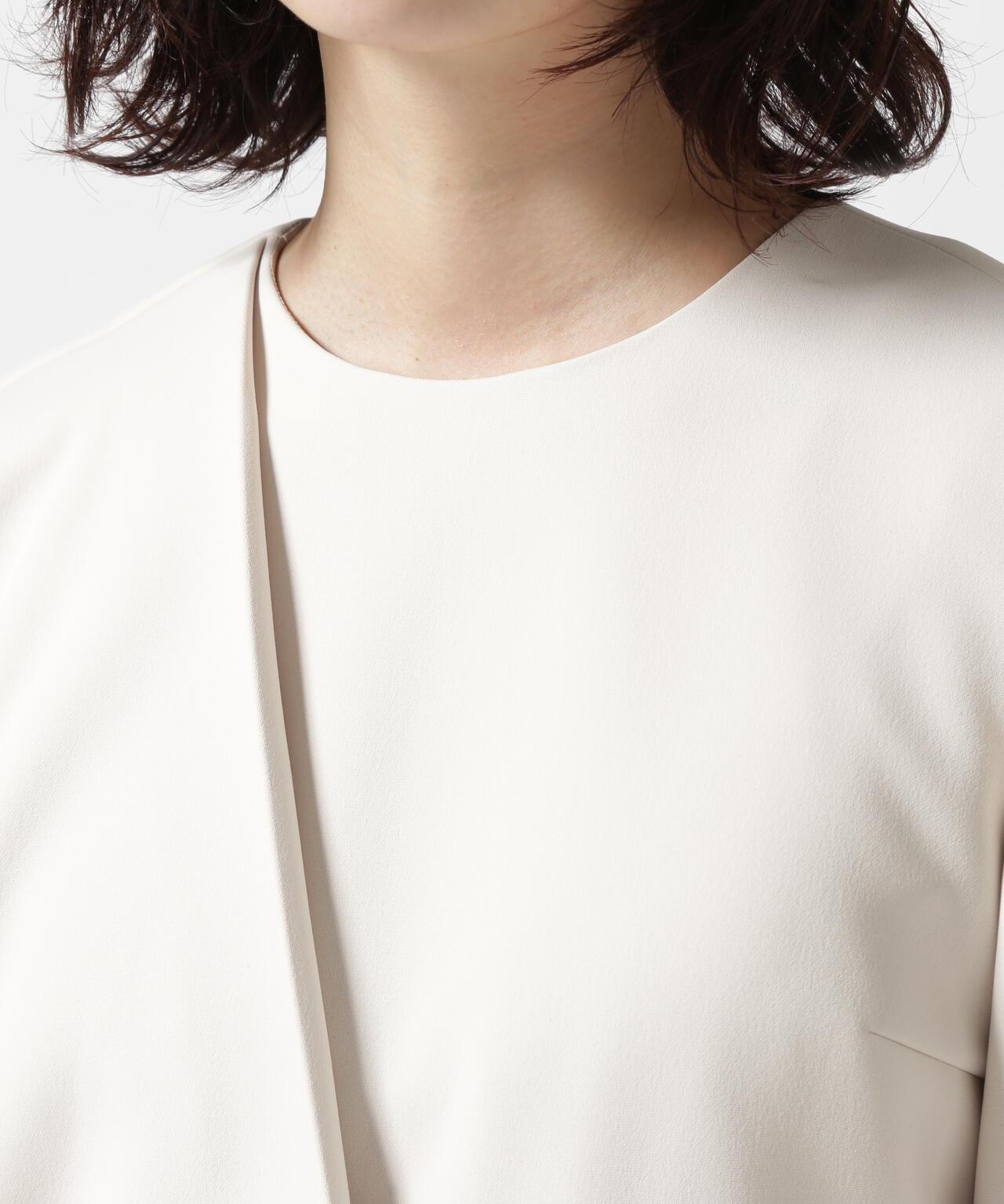 B'2nd也有非常受歡迎的套裝!同樣適用於典禮★對角線褶襉展現了利落的設計風格,可拆卸的珍珠別針則為這款設計感十足的上衣增添了華麗的印象。袖口的褶襉使袖子看起來更有立體感。蓬蓬裙的部分還遮住了腰部,這也是人們關心的問題。這款高彈性紙板針織衫具有良好的彈性,穿著方便,使用的面料具有柔軟的觸感和良好的張力感。這種面料的功能性也很強,抗透明、吸水的紫外線屏蔽率(UV cut)達到了 90%,這也是一大亮點!當然,與同種面料的長褲(高彈力長褲/008222)配套使用時,還要注意長褲的緊身剪裁。