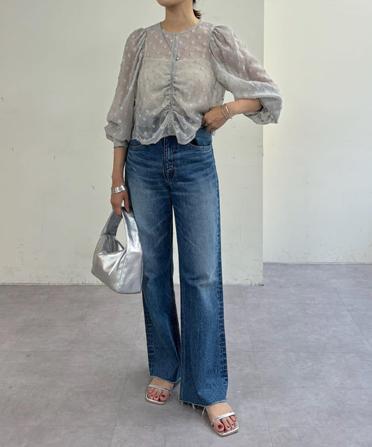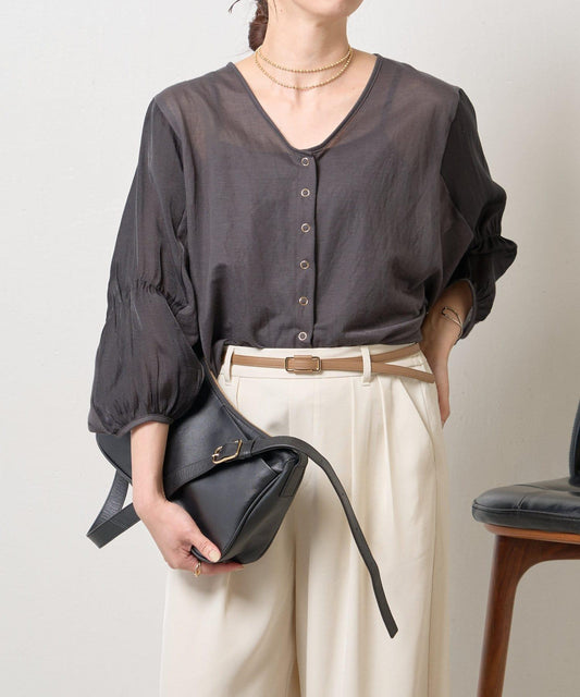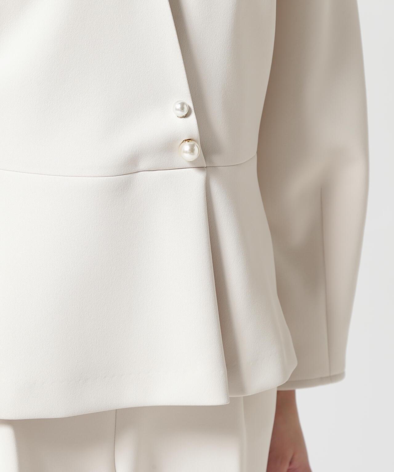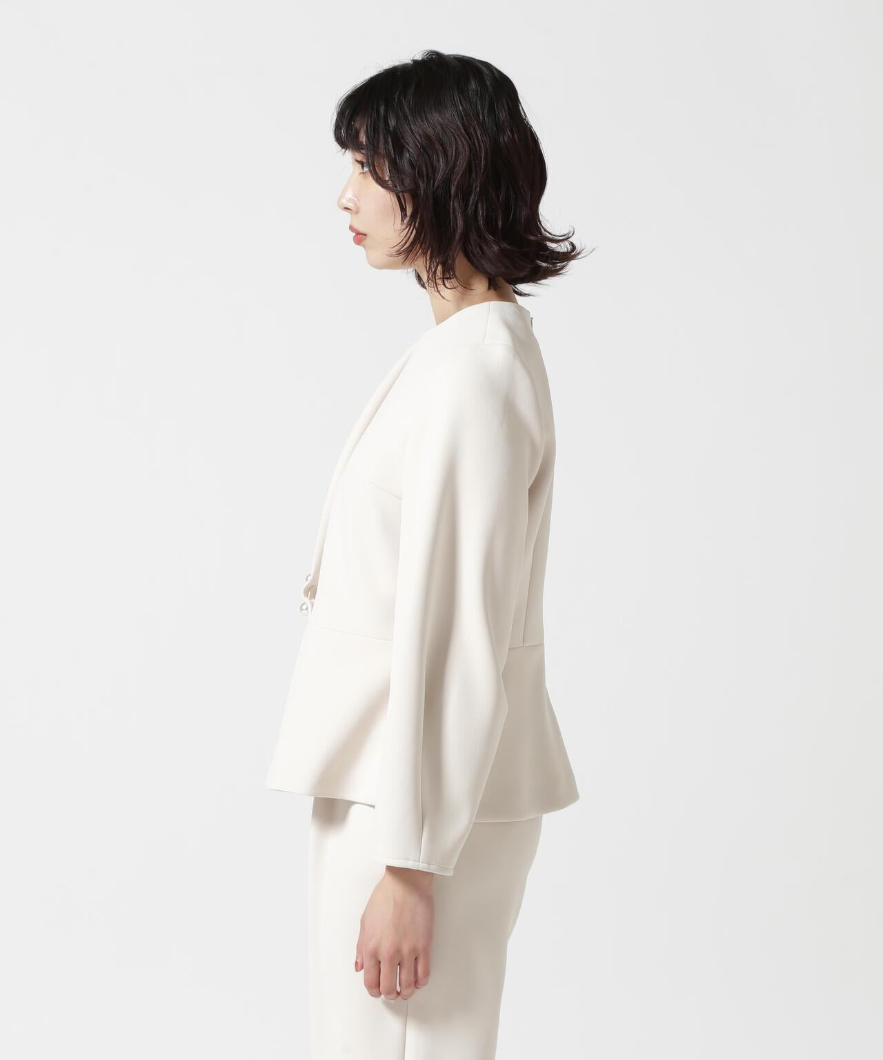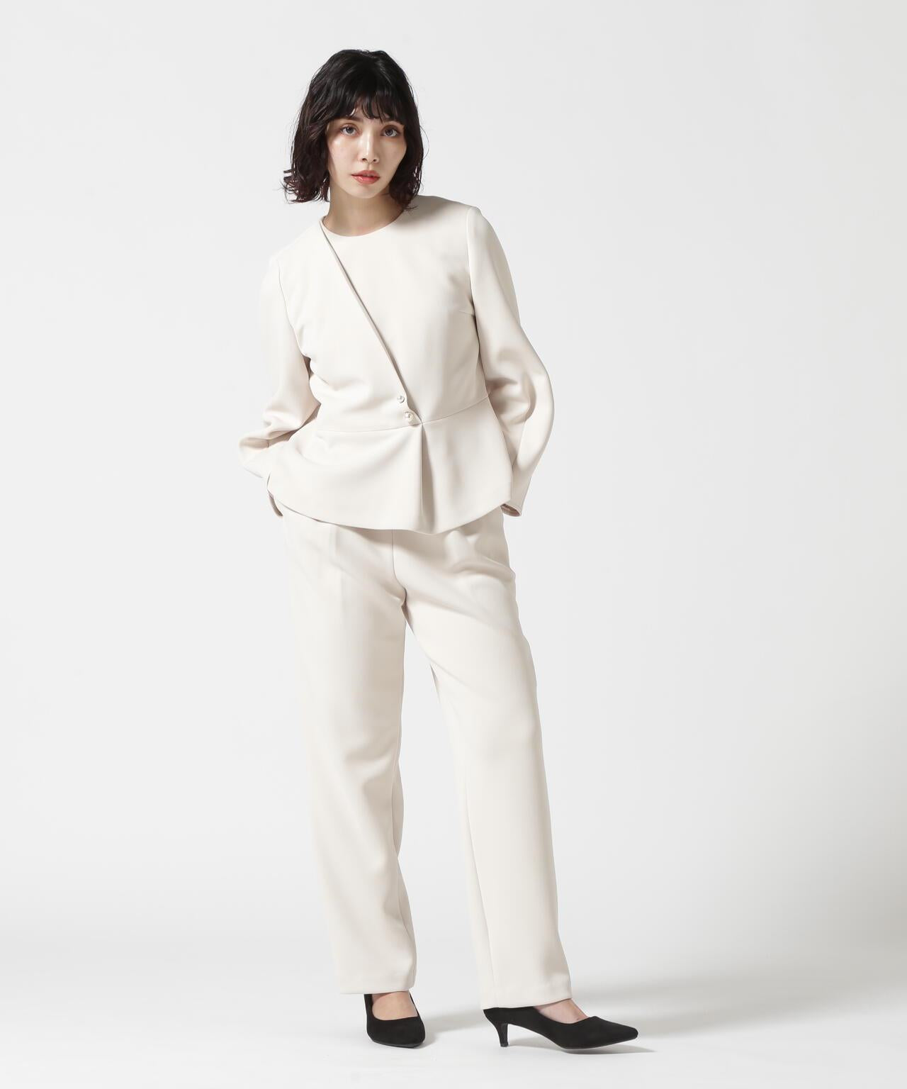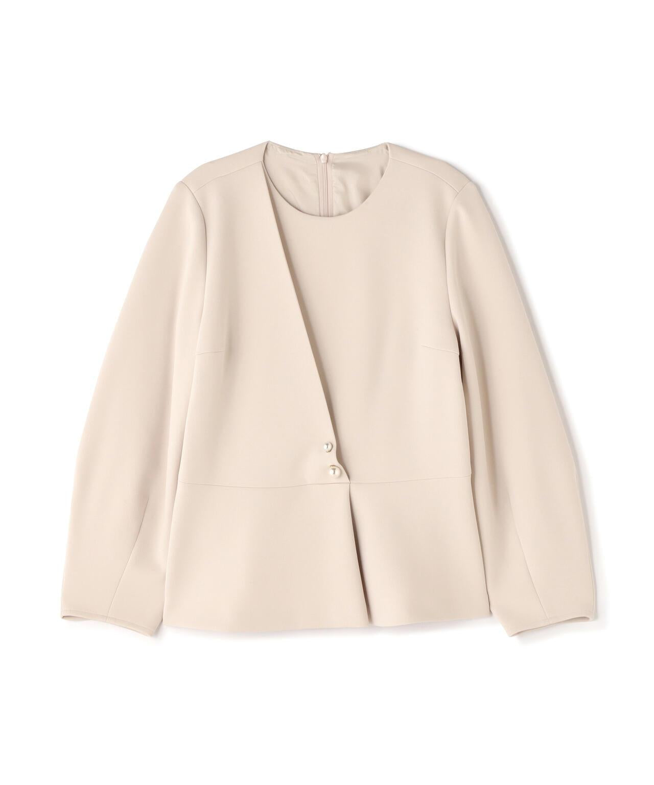 B'2nd也有非常受歡迎的套裝!同樣適用於典禮★對角線褶襉展現了利落的設計風格,可拆卸的珍珠別針則為這款設計感十足的上衣增添了華麗的印象。袖口的褶襉使袖子看起來更有立體感。蓬蓬裙的部分還遮住了腰部,這也是人們關心的問題。這款高彈性紙板針織衫具有良好的彈性,穿著方便,使用的面料具有柔軟的觸感和良好的張力感。這種面料的功能性也很強,抗透明、吸水的紫外線屏蔽率(UV cut)達到了 90%,這也是一大亮點!當然,與同種面料的長褲(高彈力長褲/008222)配套使用時,還要注意長褲的緊身剪裁。