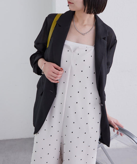背部有一個大開衩口作為設計點,可以用鉤扣開合來調節大小,即使不喜歡緊身的人也可以放心穿著。您還可以享受從開衩口瞥見的內搭選擇。