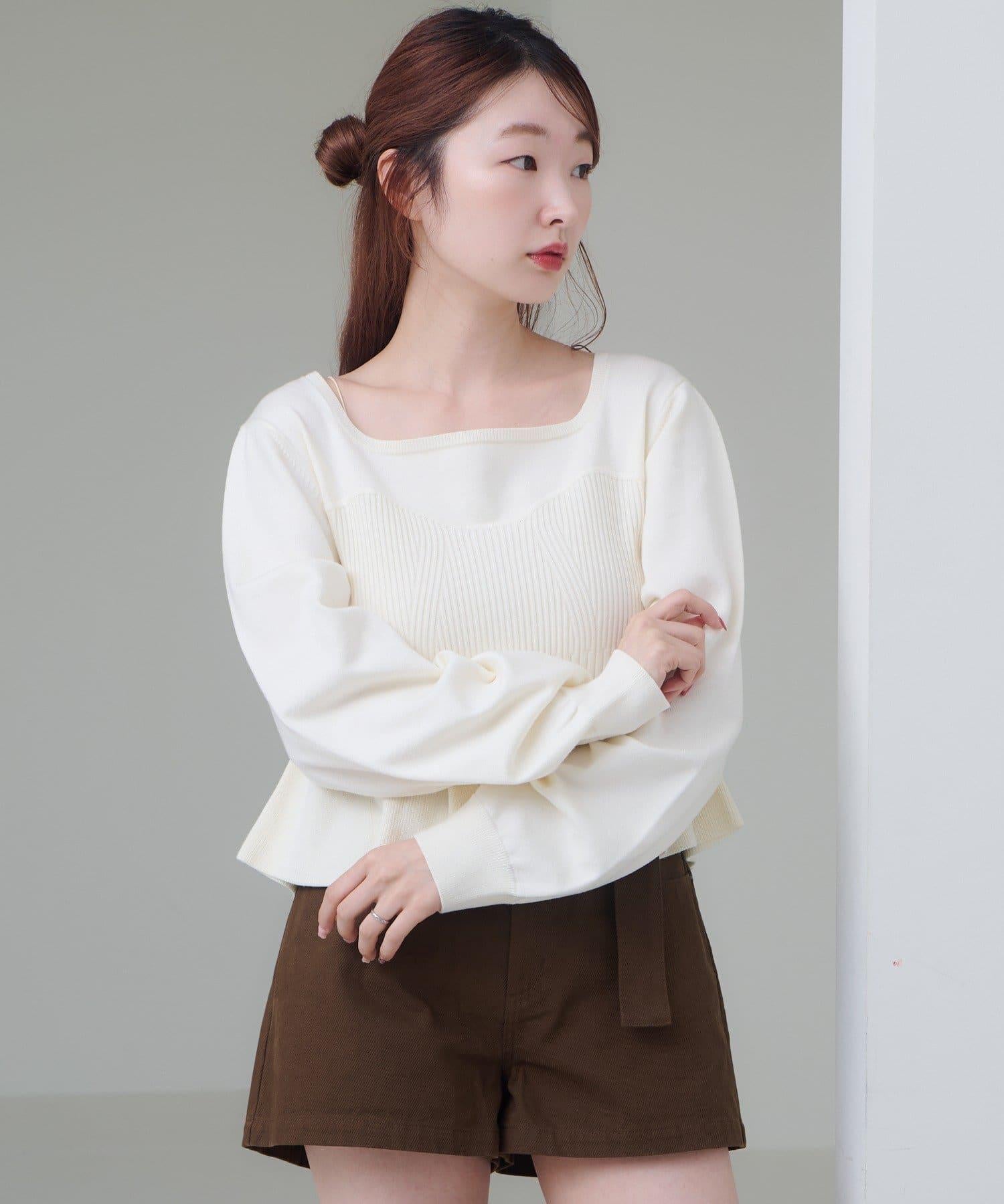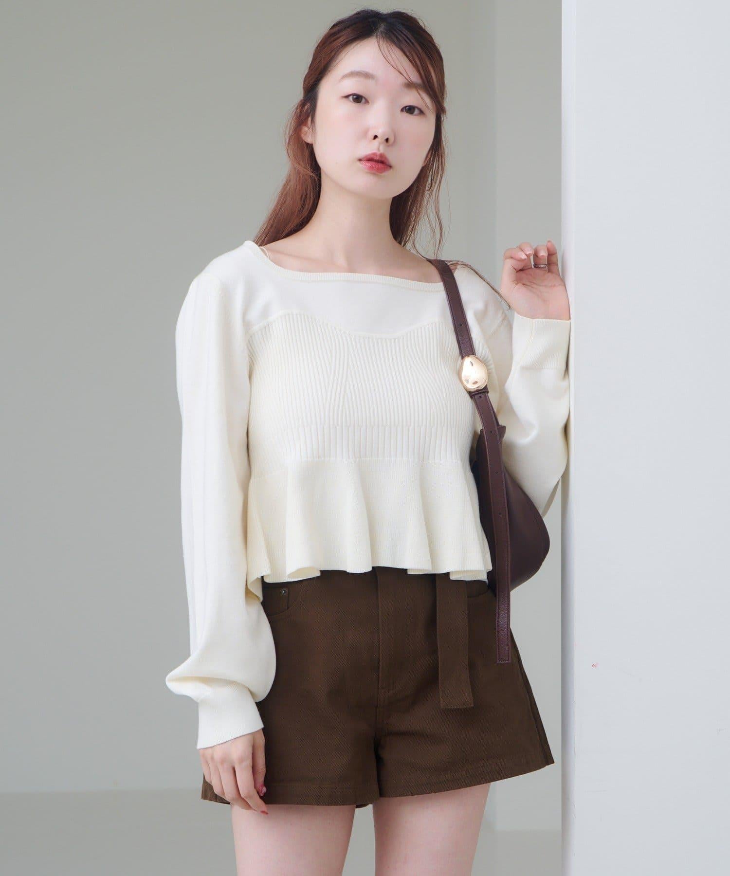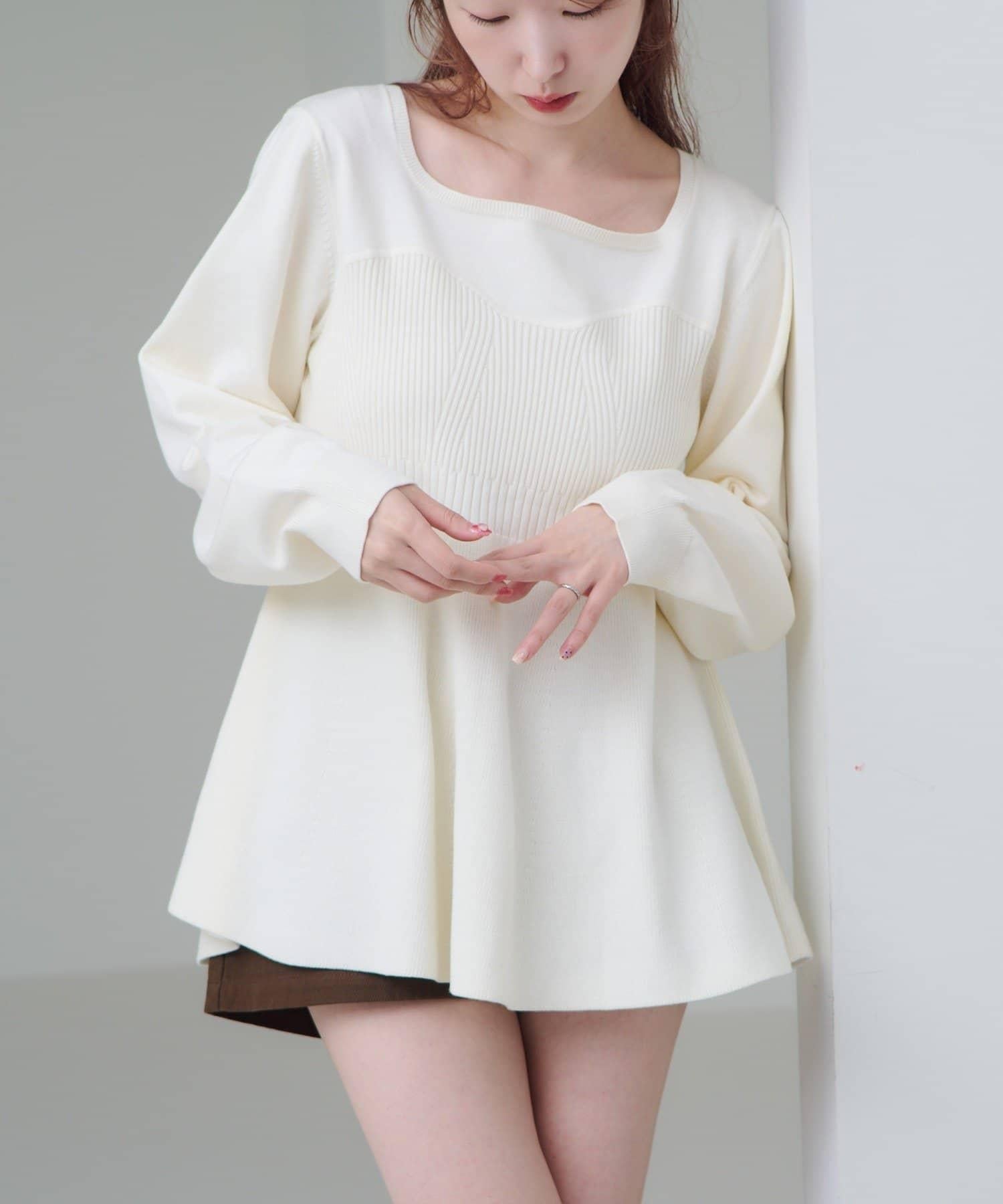從胸部底部開始的羅紋針織增強了款式感,使腰部看起來自然纖細。