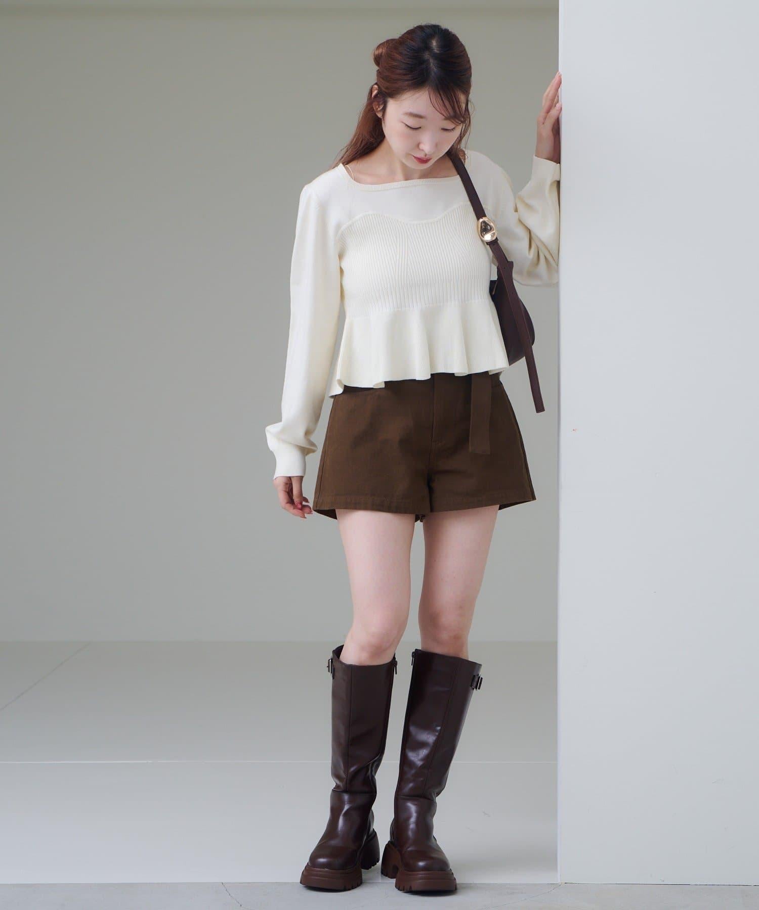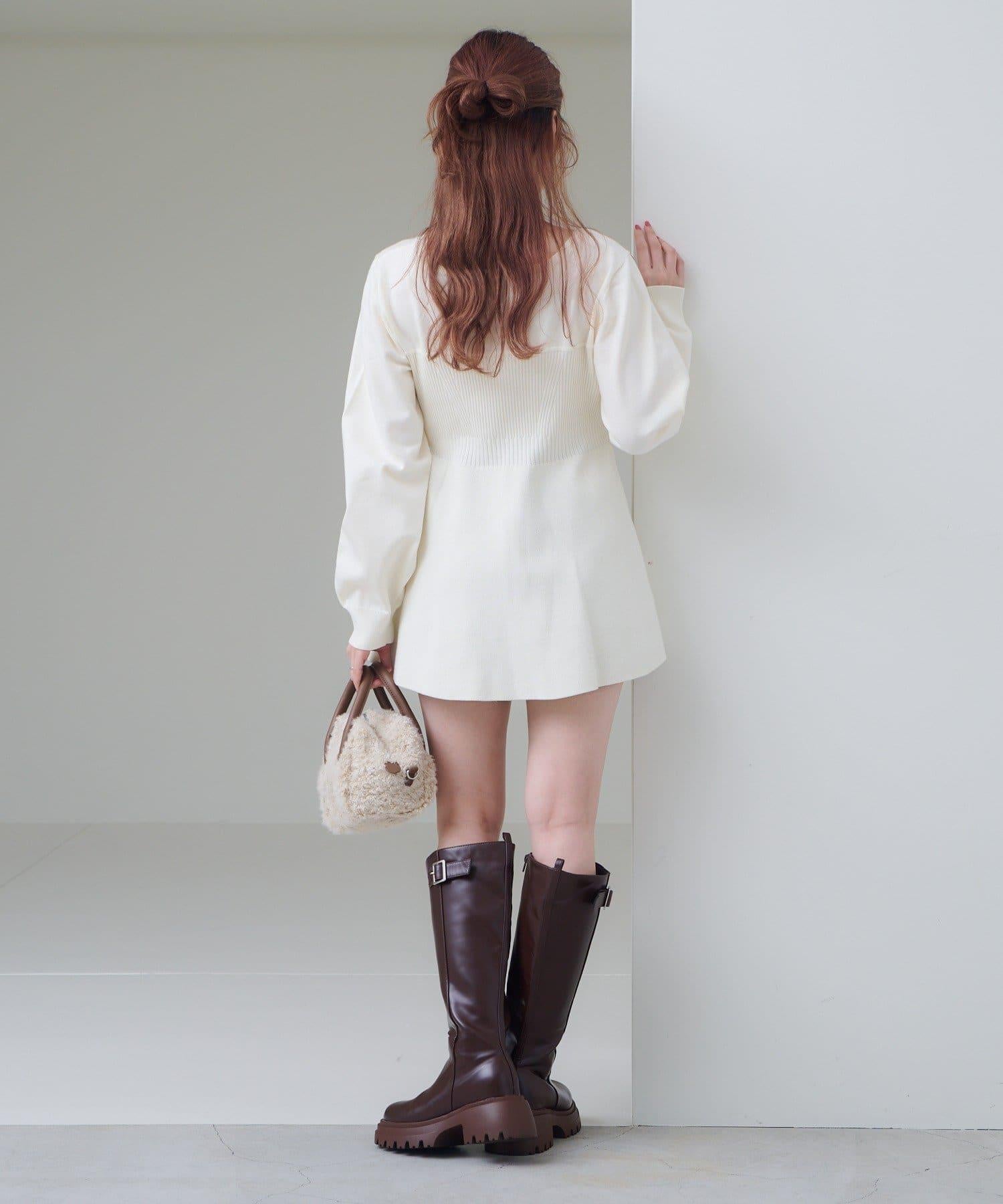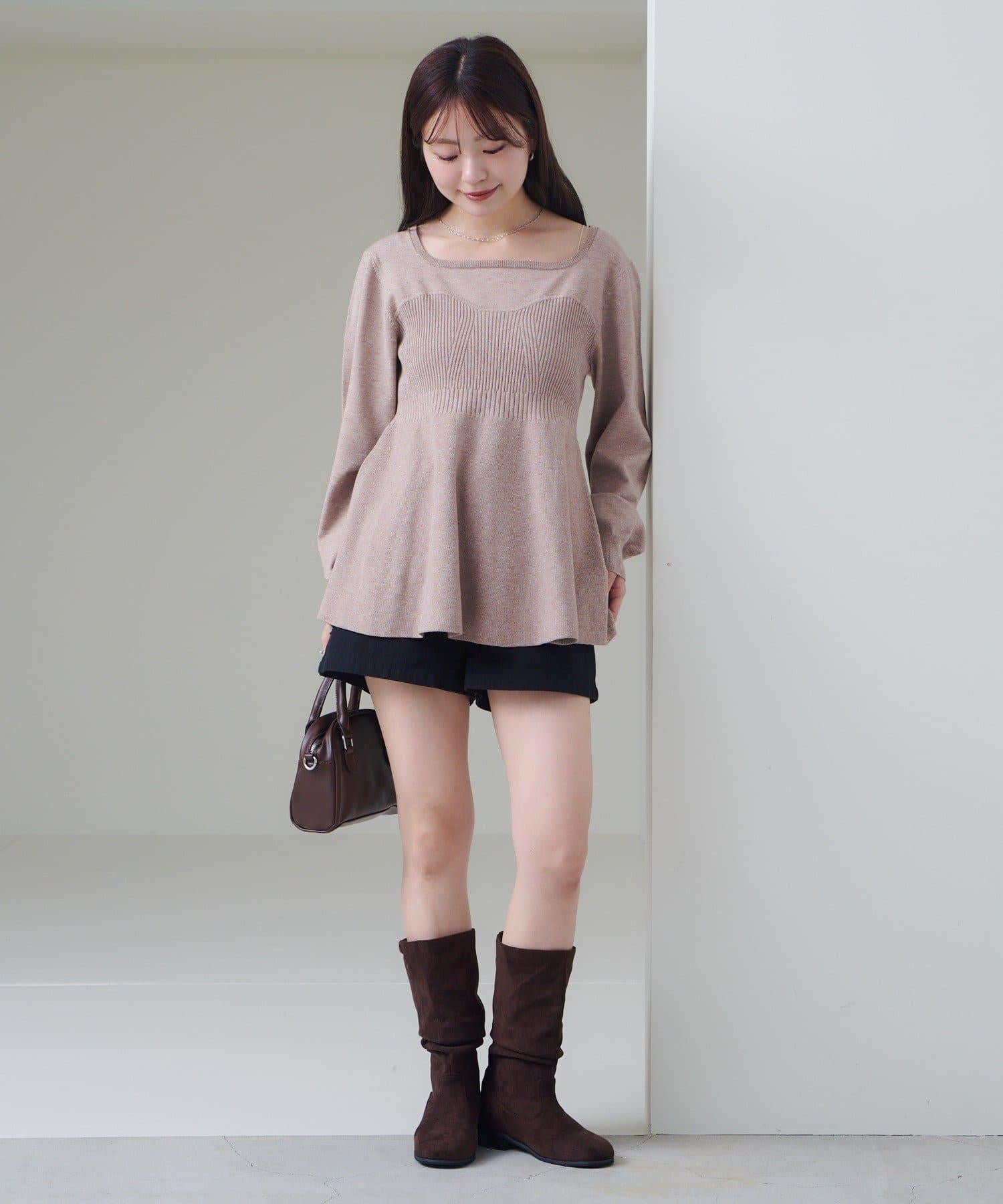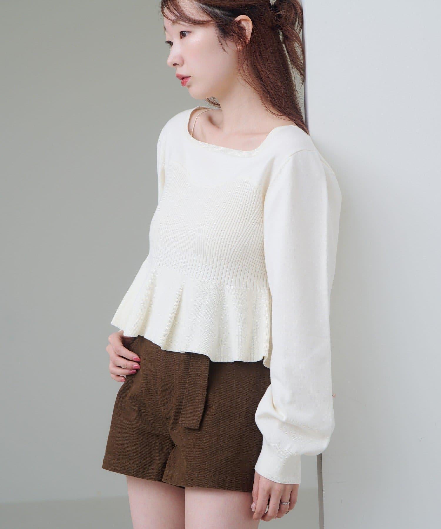 從胸部底部開始的羅紋針織增強了款式感,使腰部看起來自然纖細。