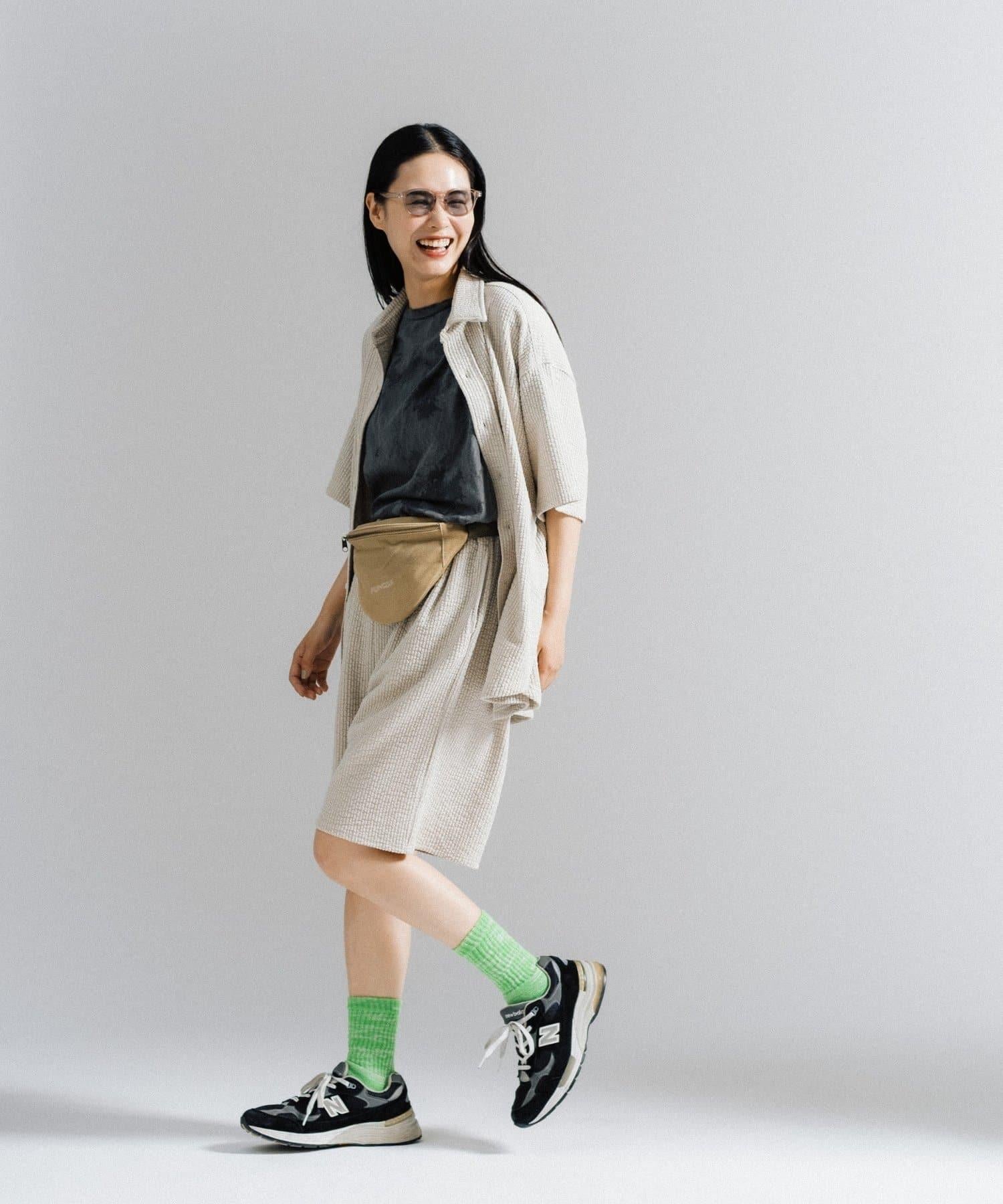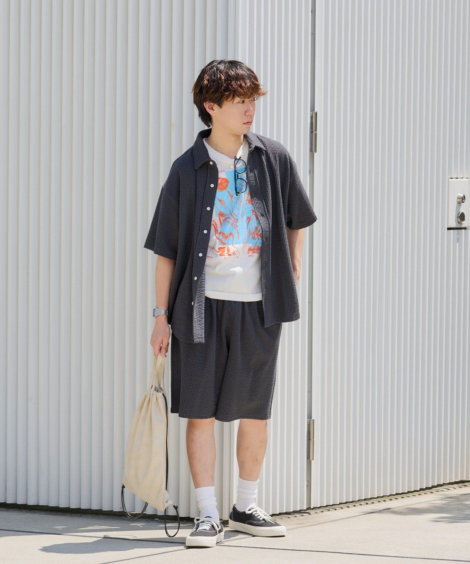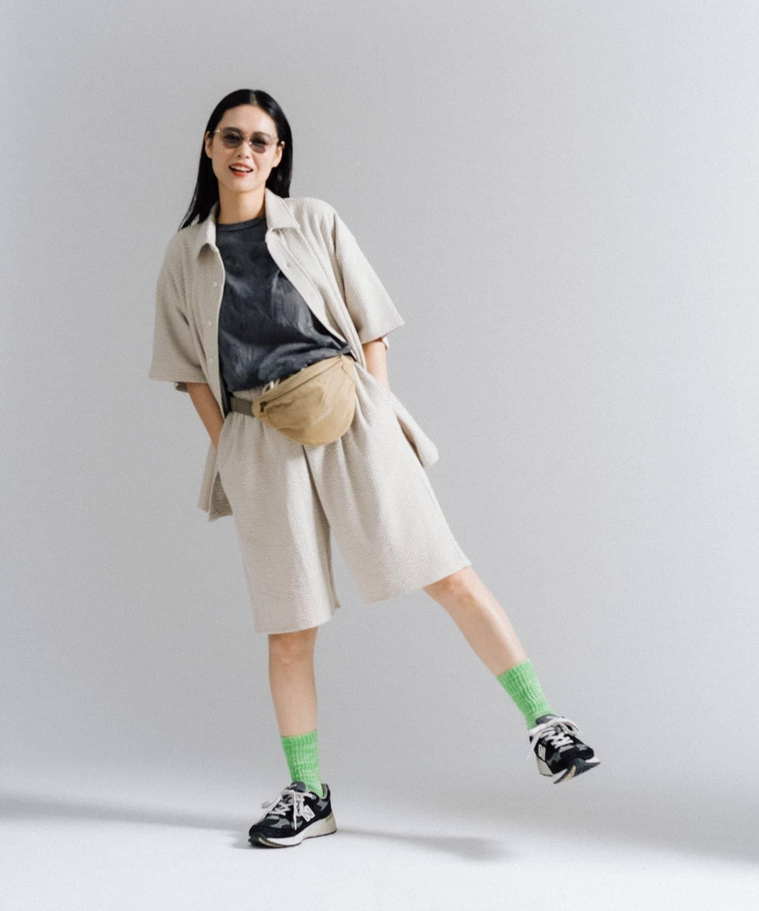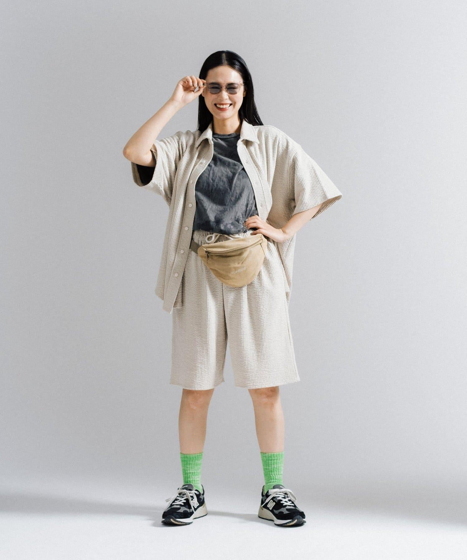 同樣面料的彈力海魂衫短袖襯衫也可供選擇,因此也建議作為套裝進行搭配。