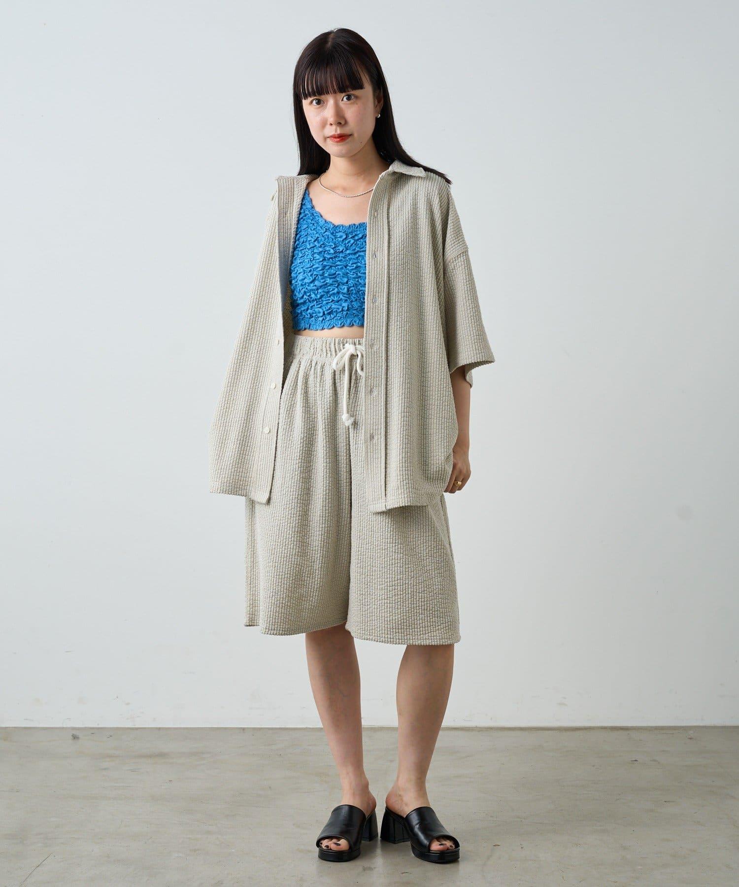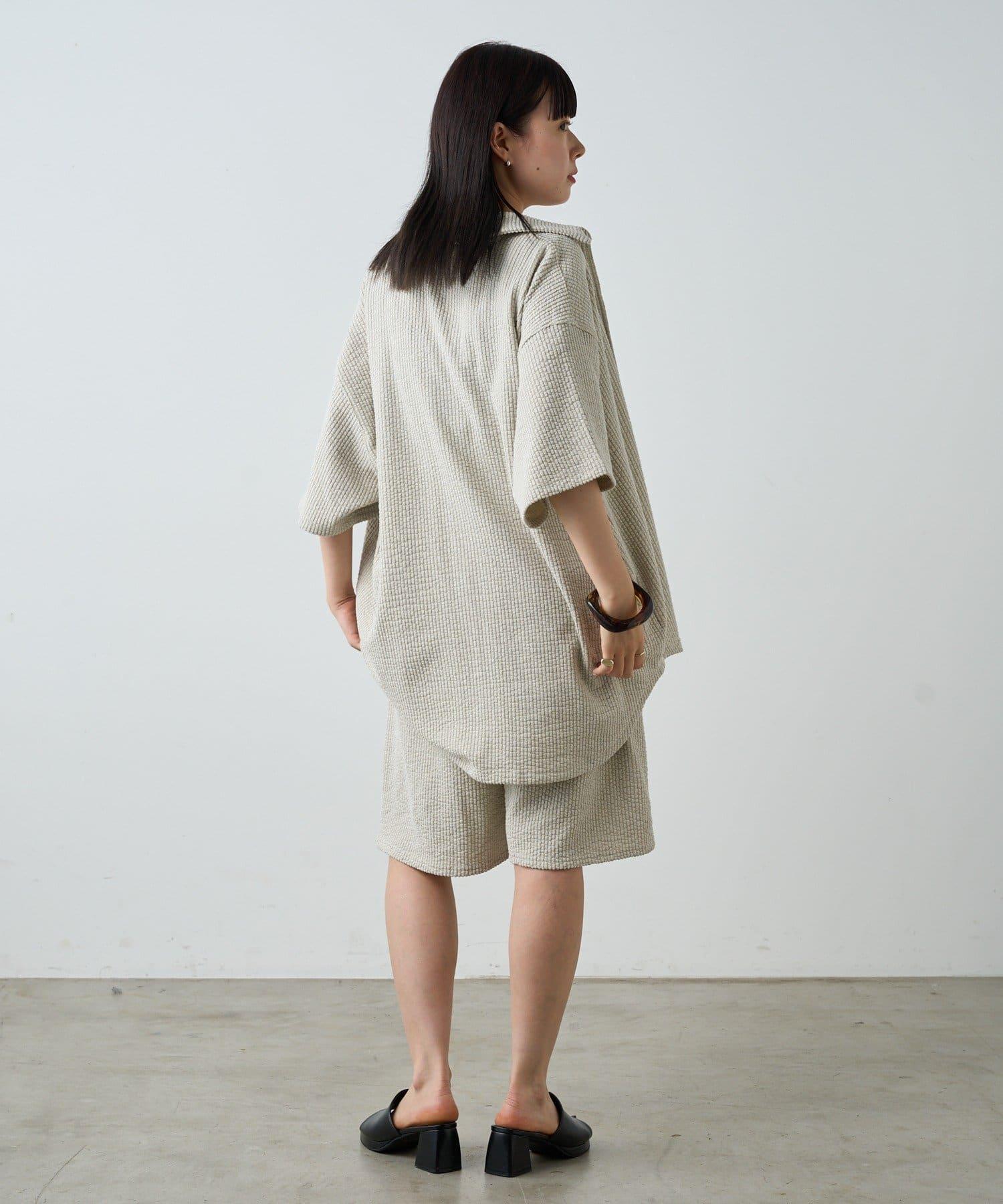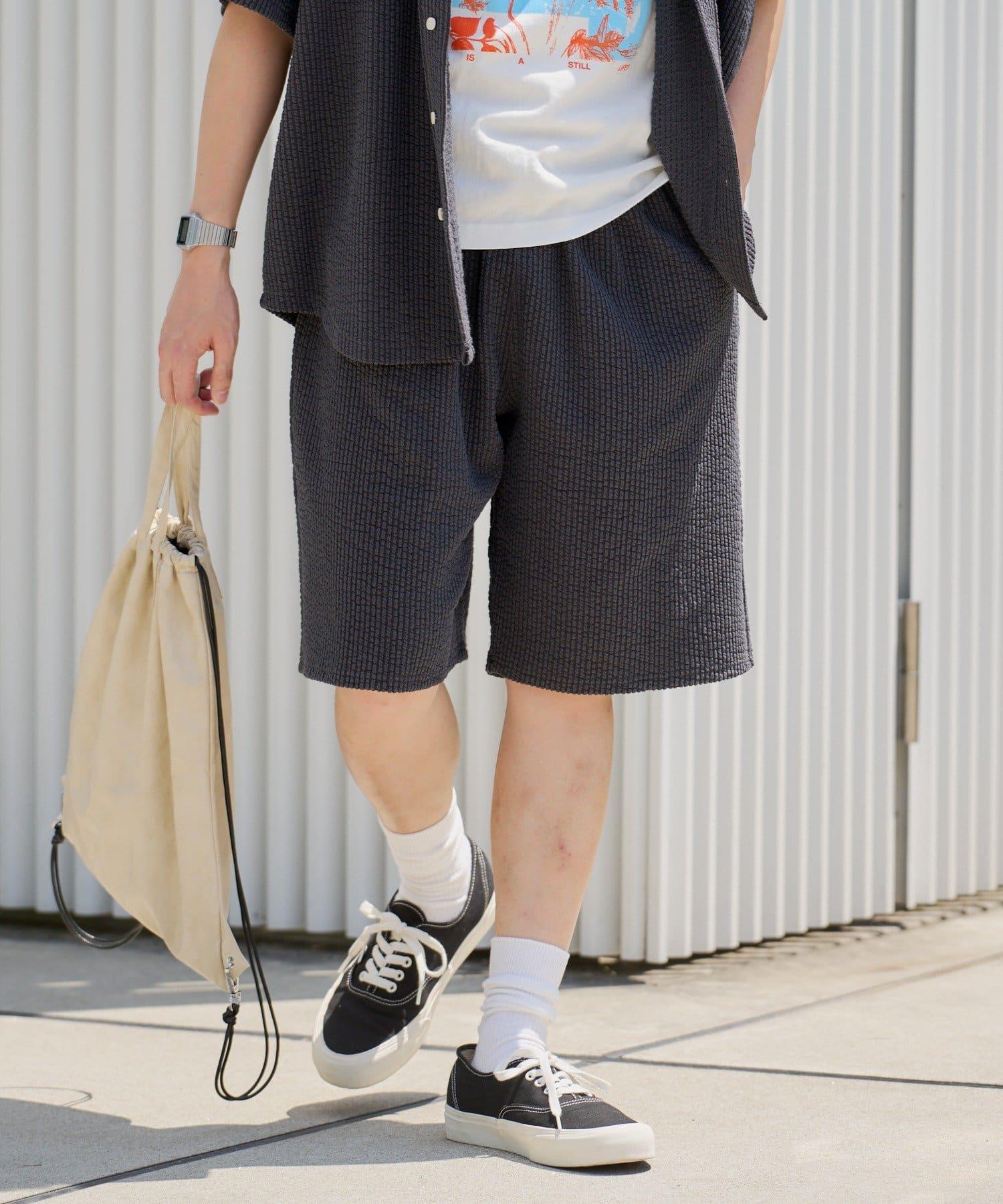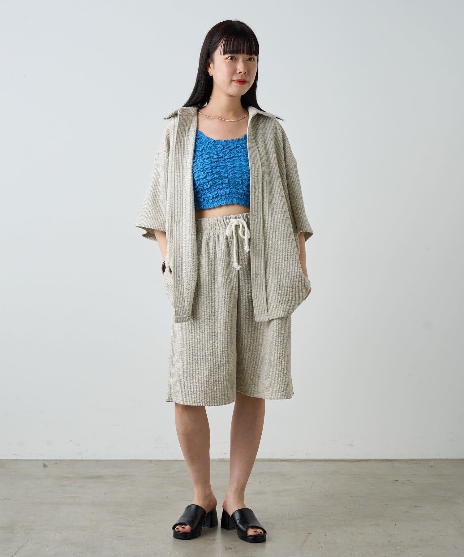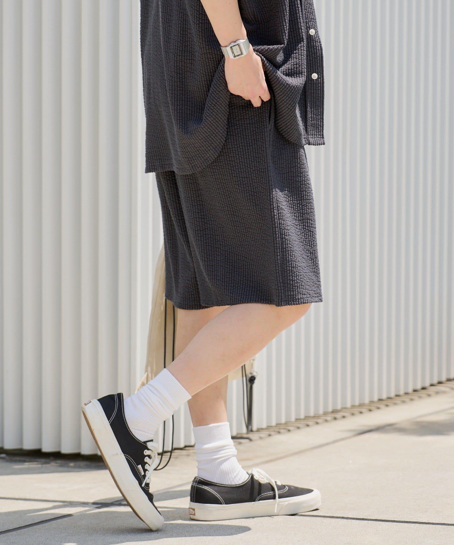 同樣面料的彈力海魂衫短袖襯衫也可供選擇,因此也建議作為套裝進行搭配。