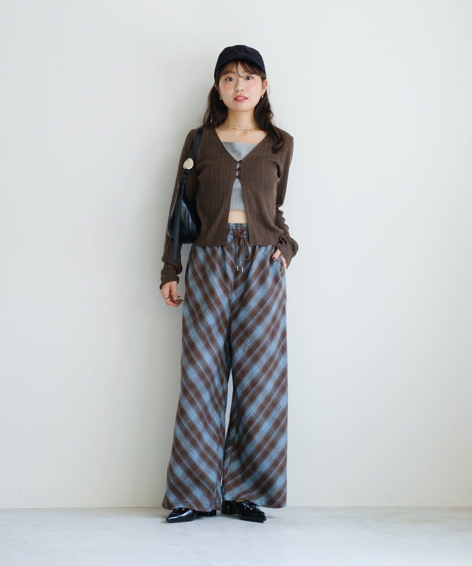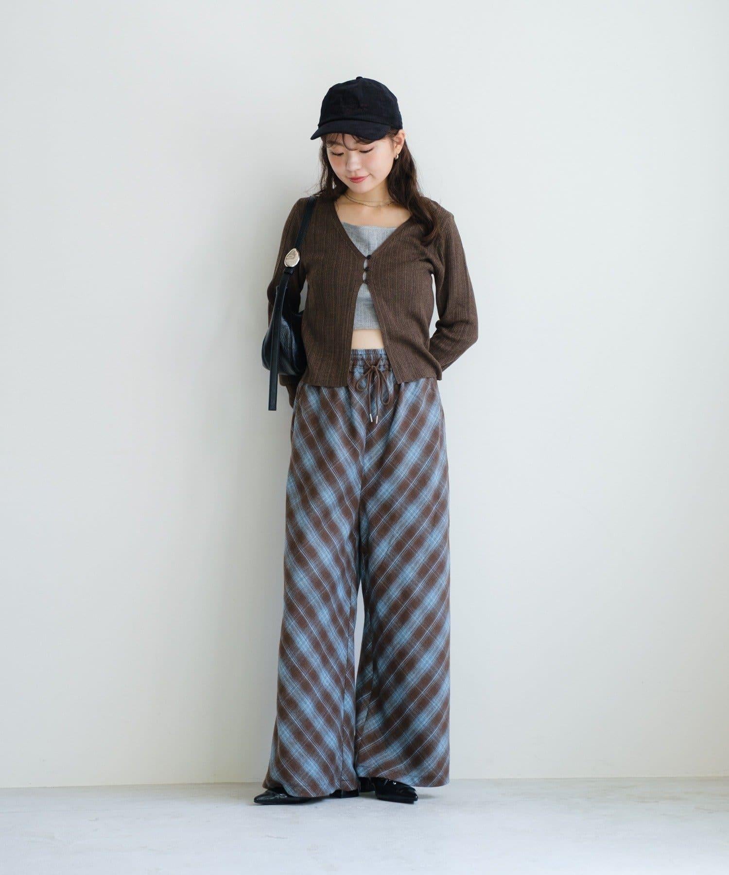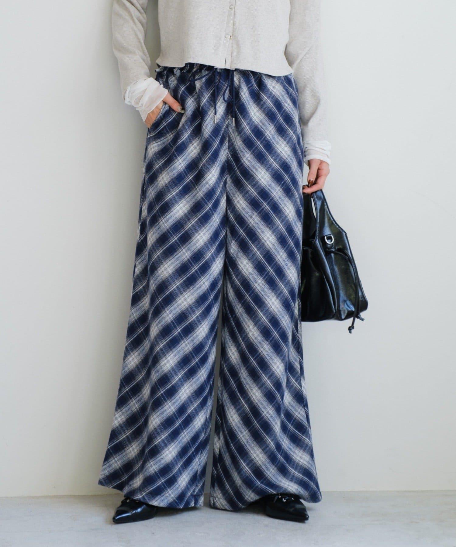 低調的彩色格紋增強了季節感,使褲子看起來休閒而時尚。