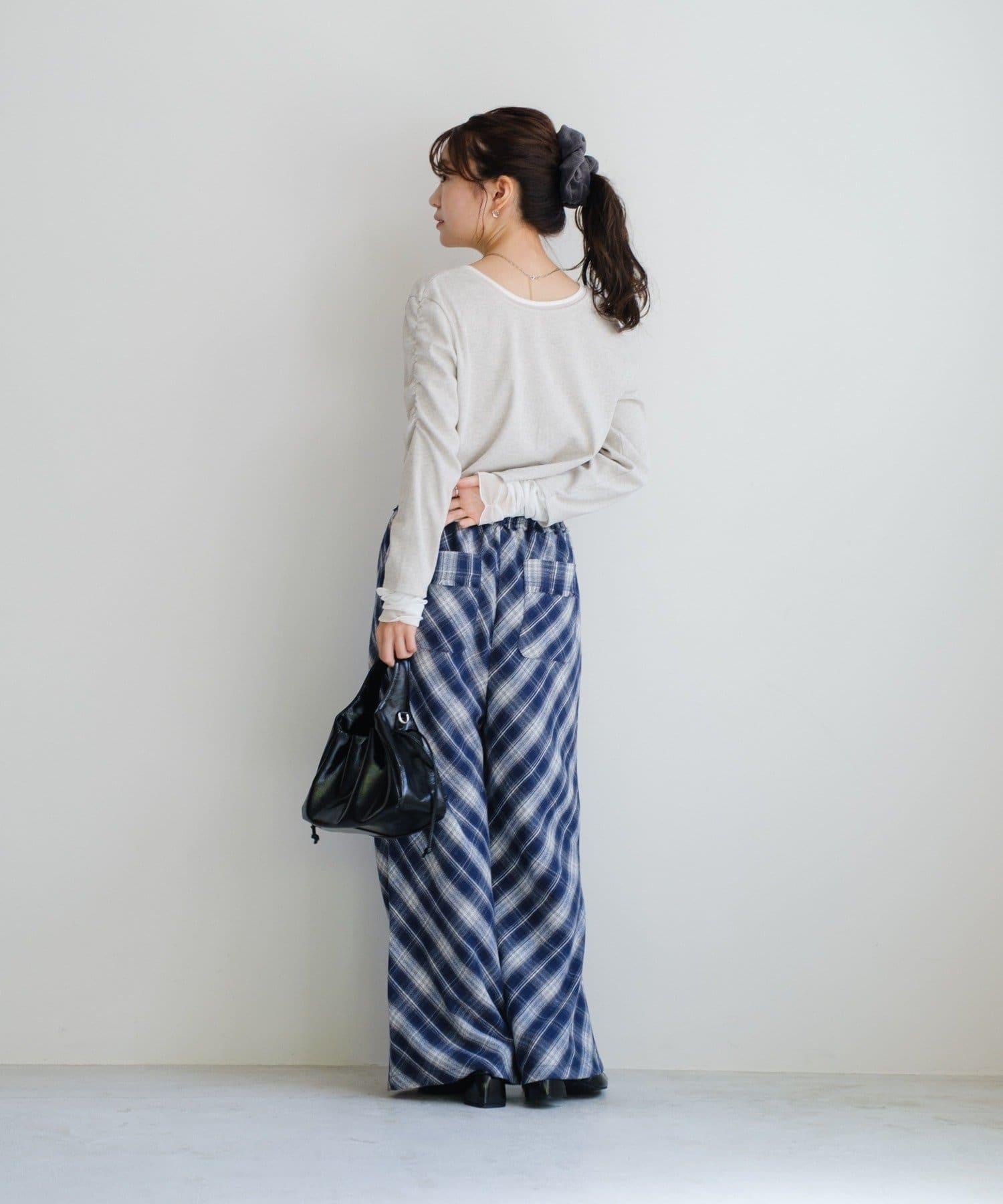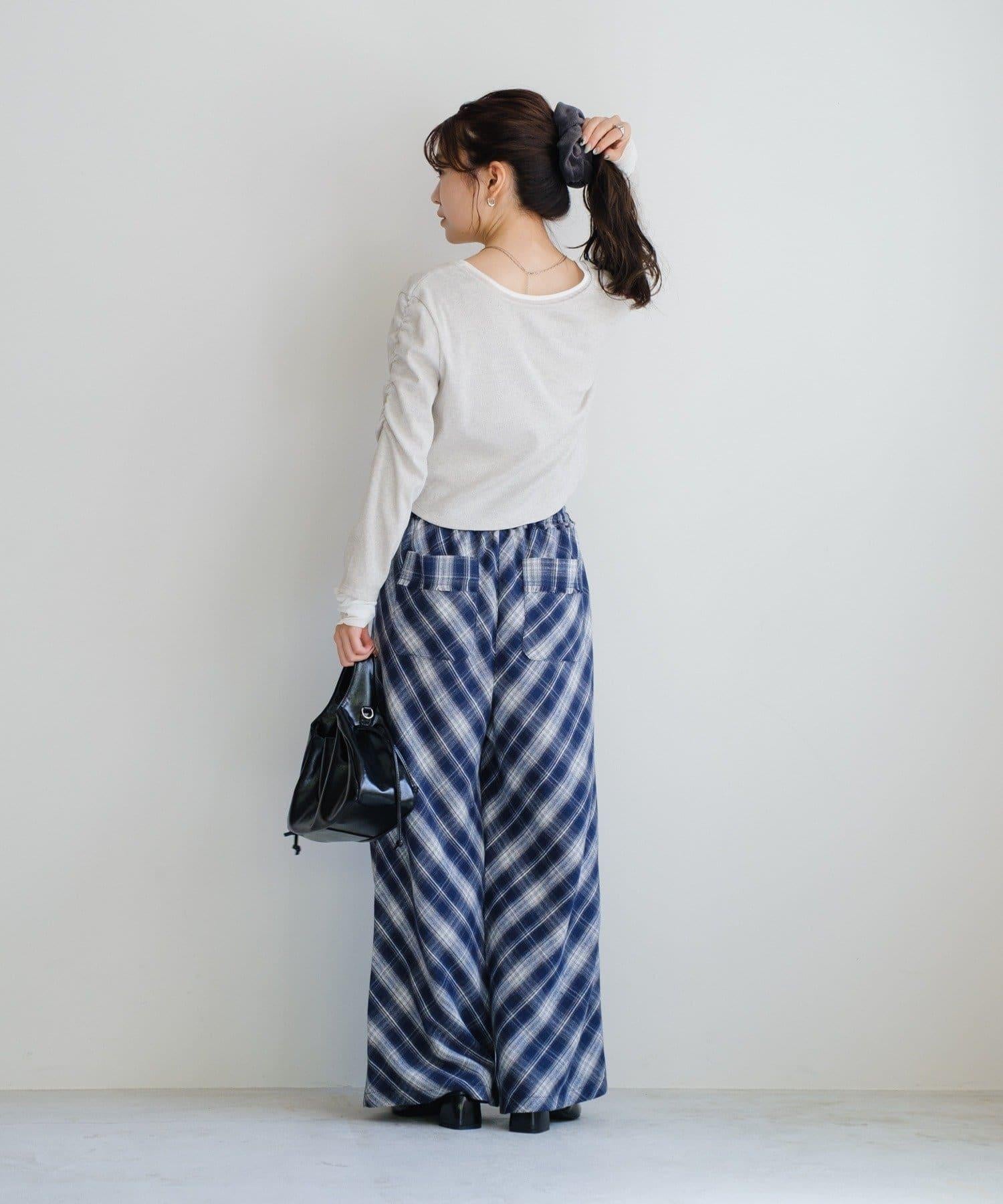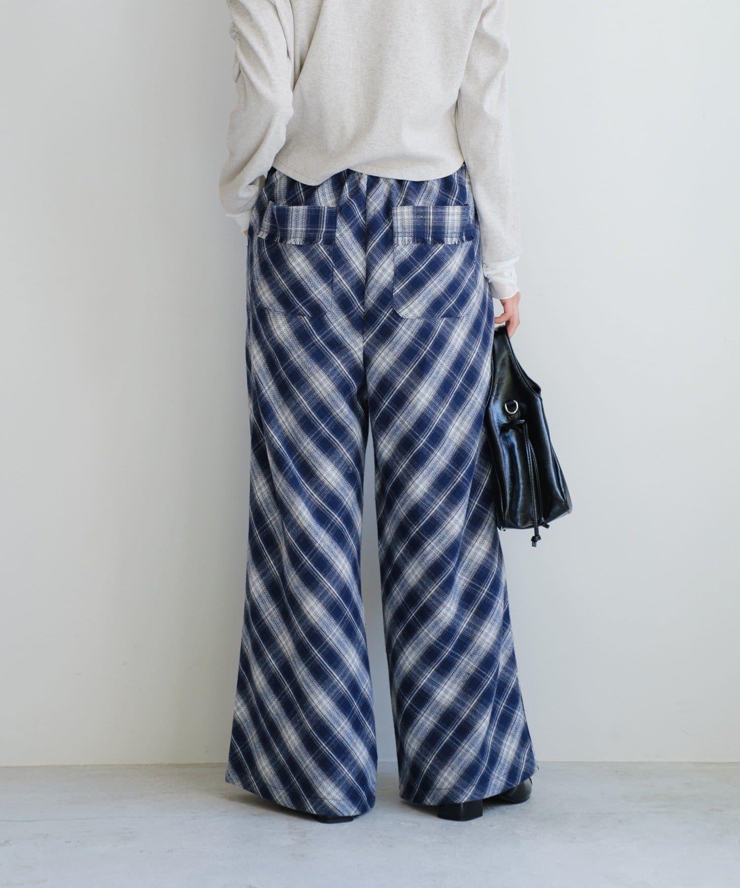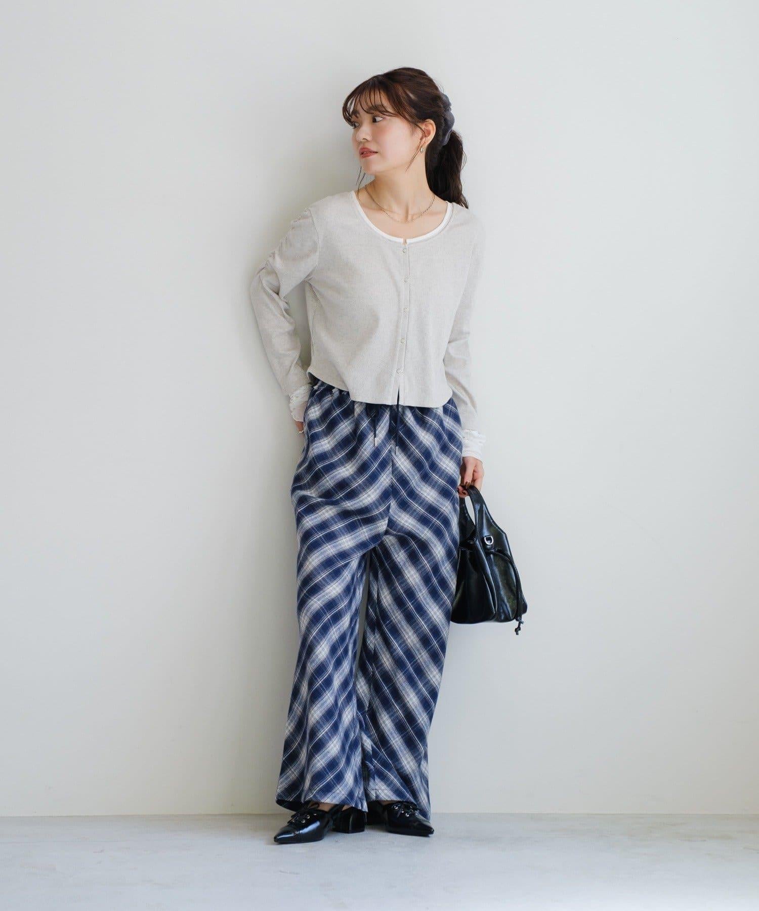 低調的彩色格紋增強了季節感,使褲子看起來休閒而時尚。