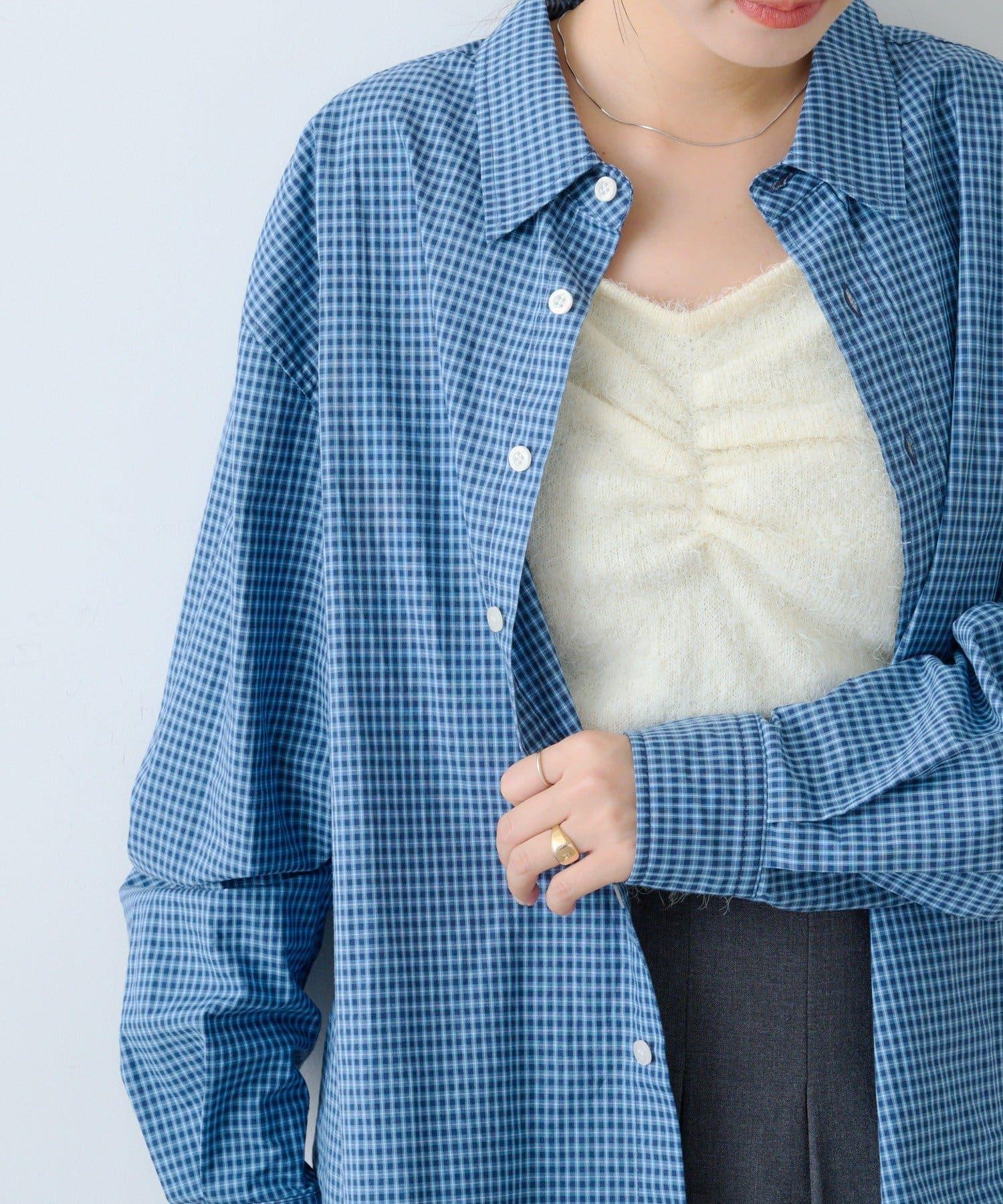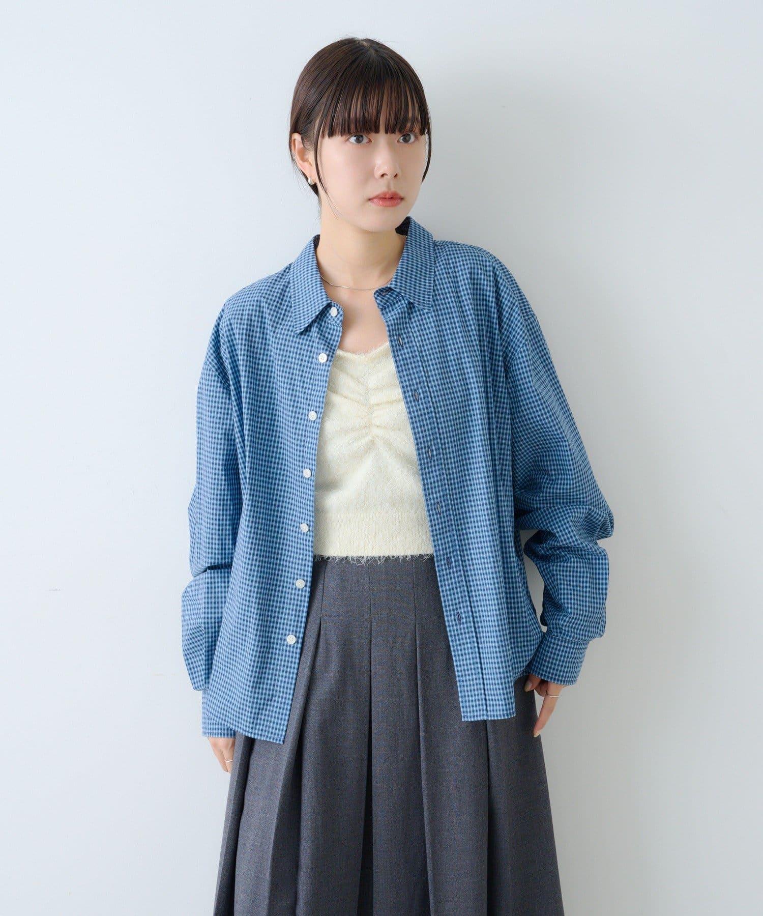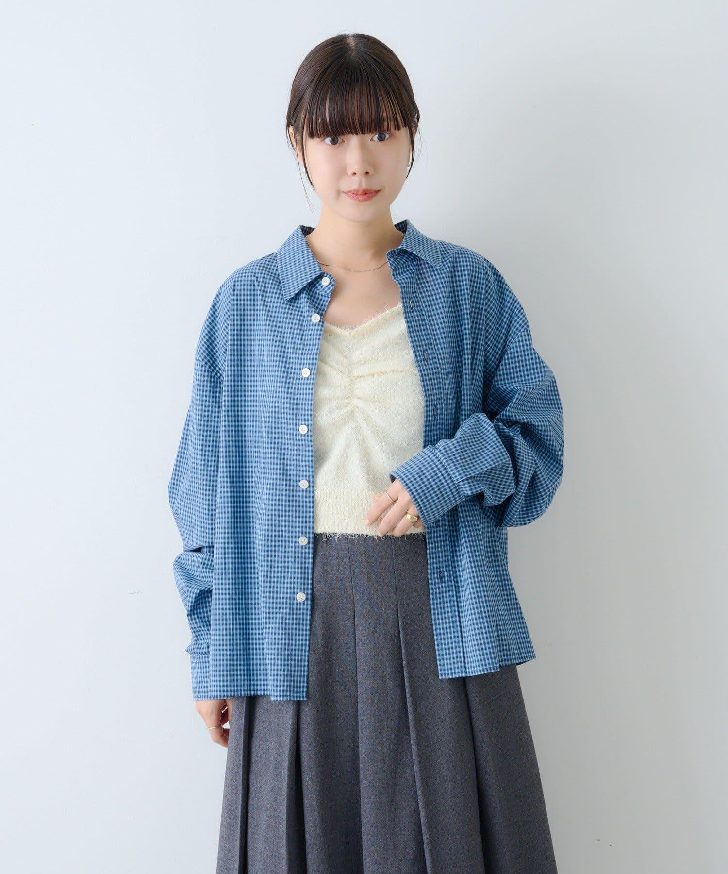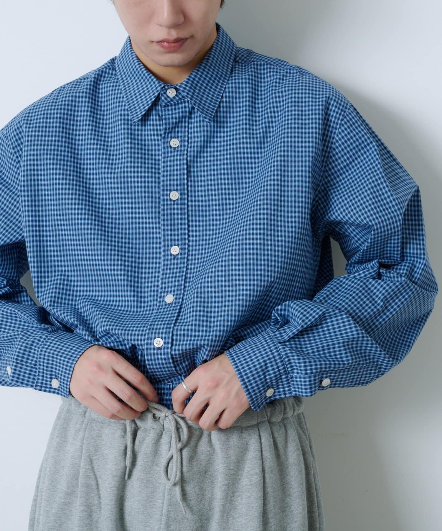 中性] 短款格紋長袖襯衫