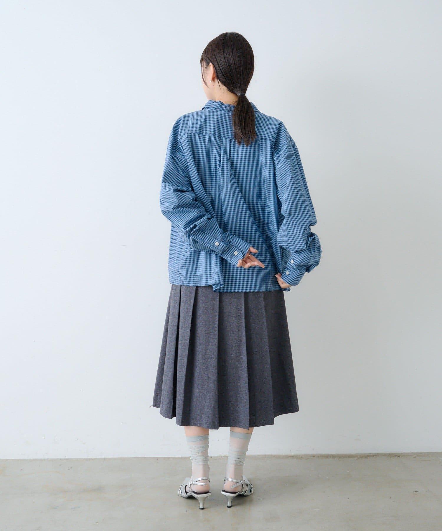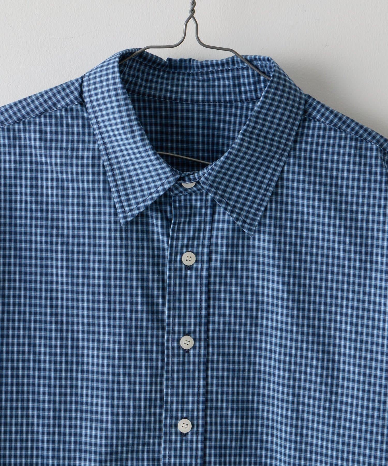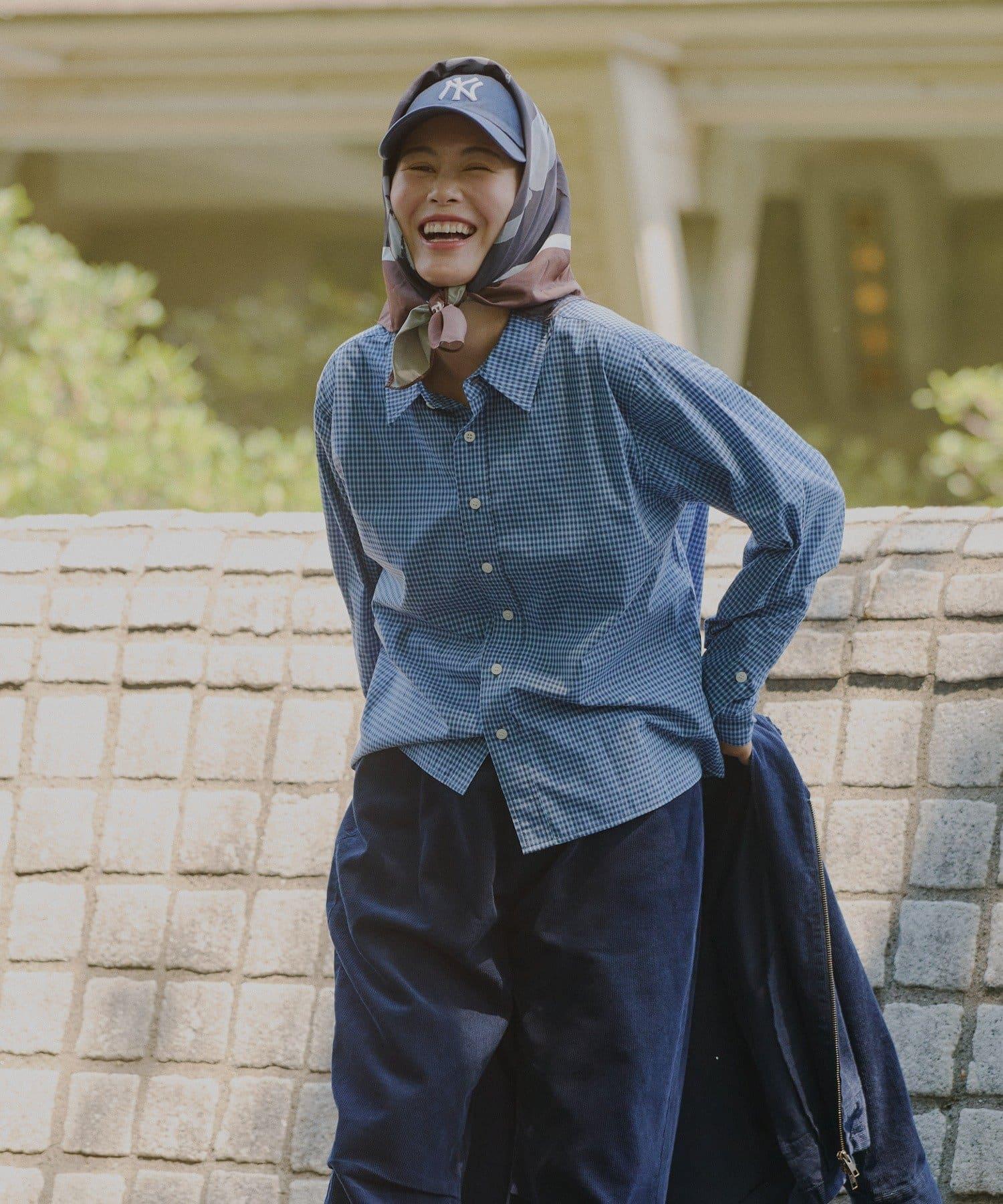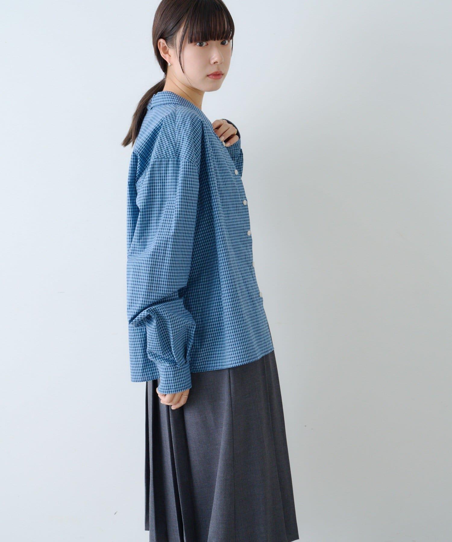 中性] 短款格紋長袖襯衫