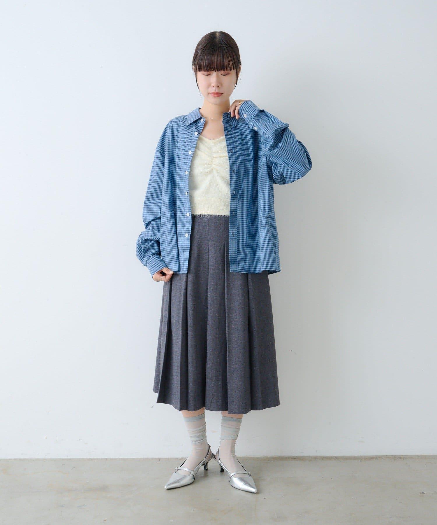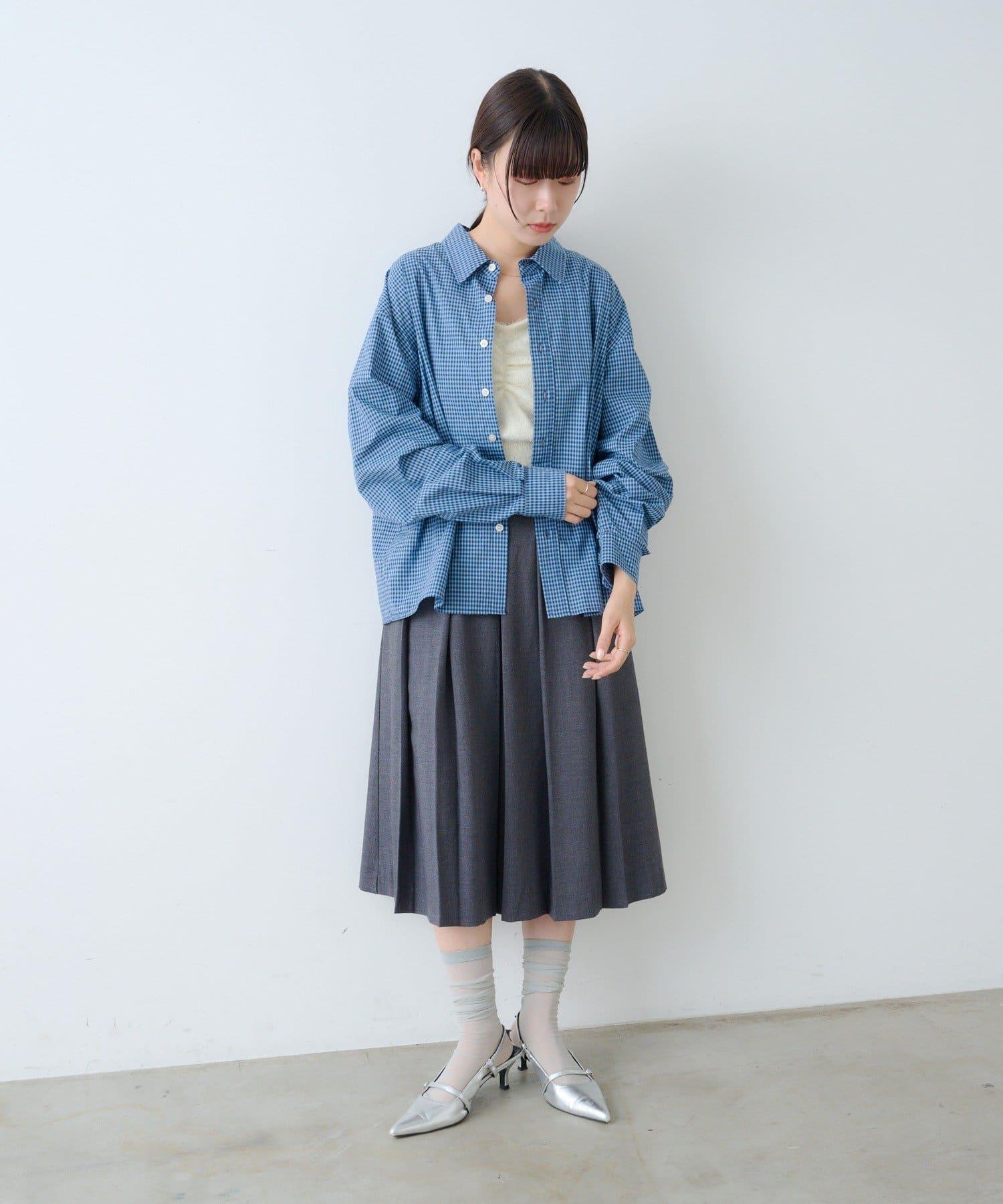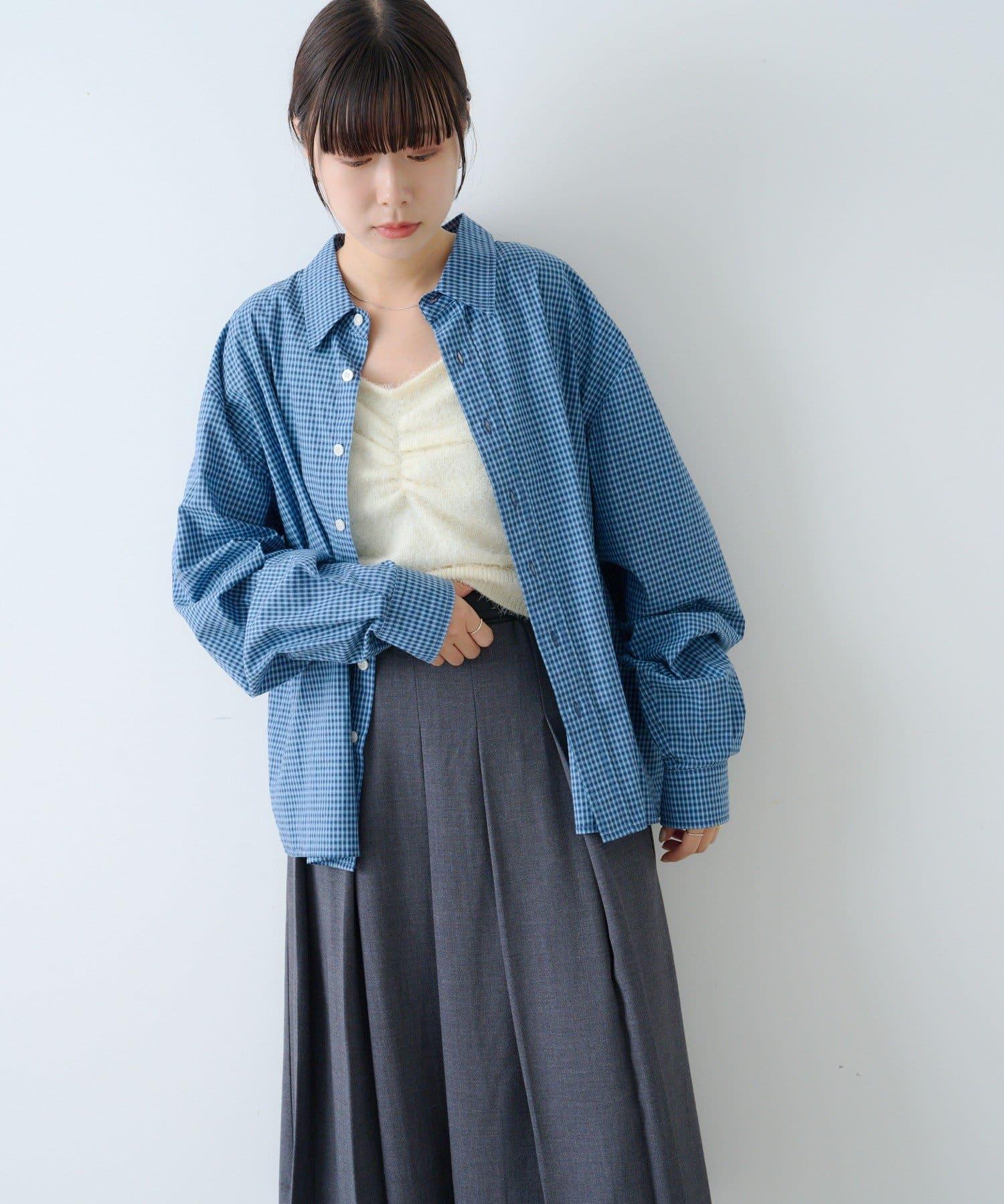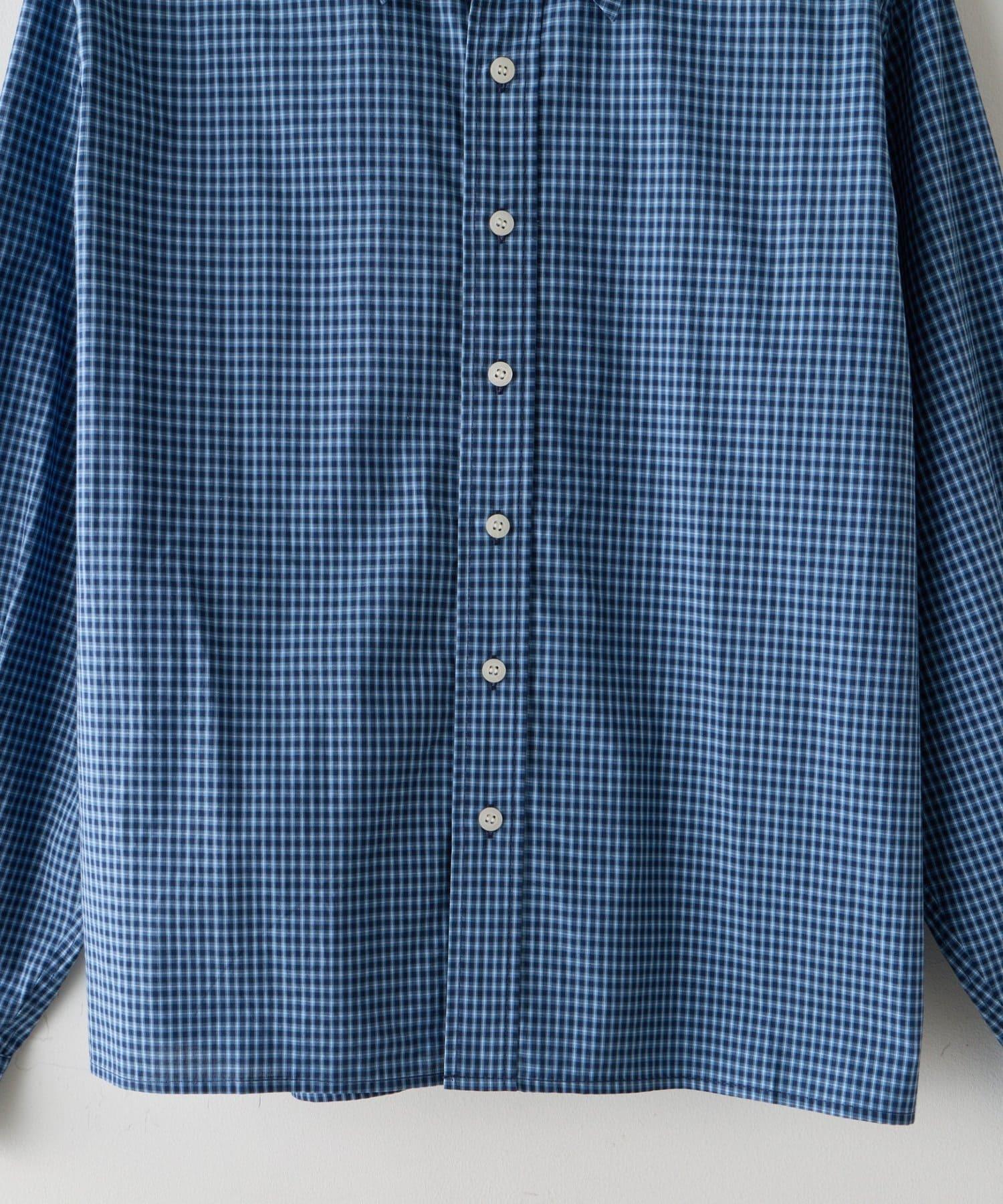 中性] 短款格紋長袖襯衫