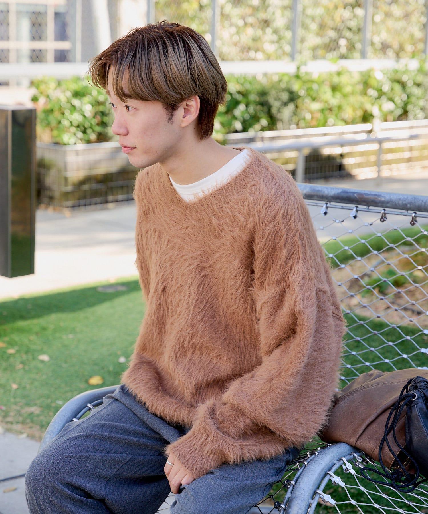 這款 V 領針織套衫採用柔軟舒適的紗線編織而成。