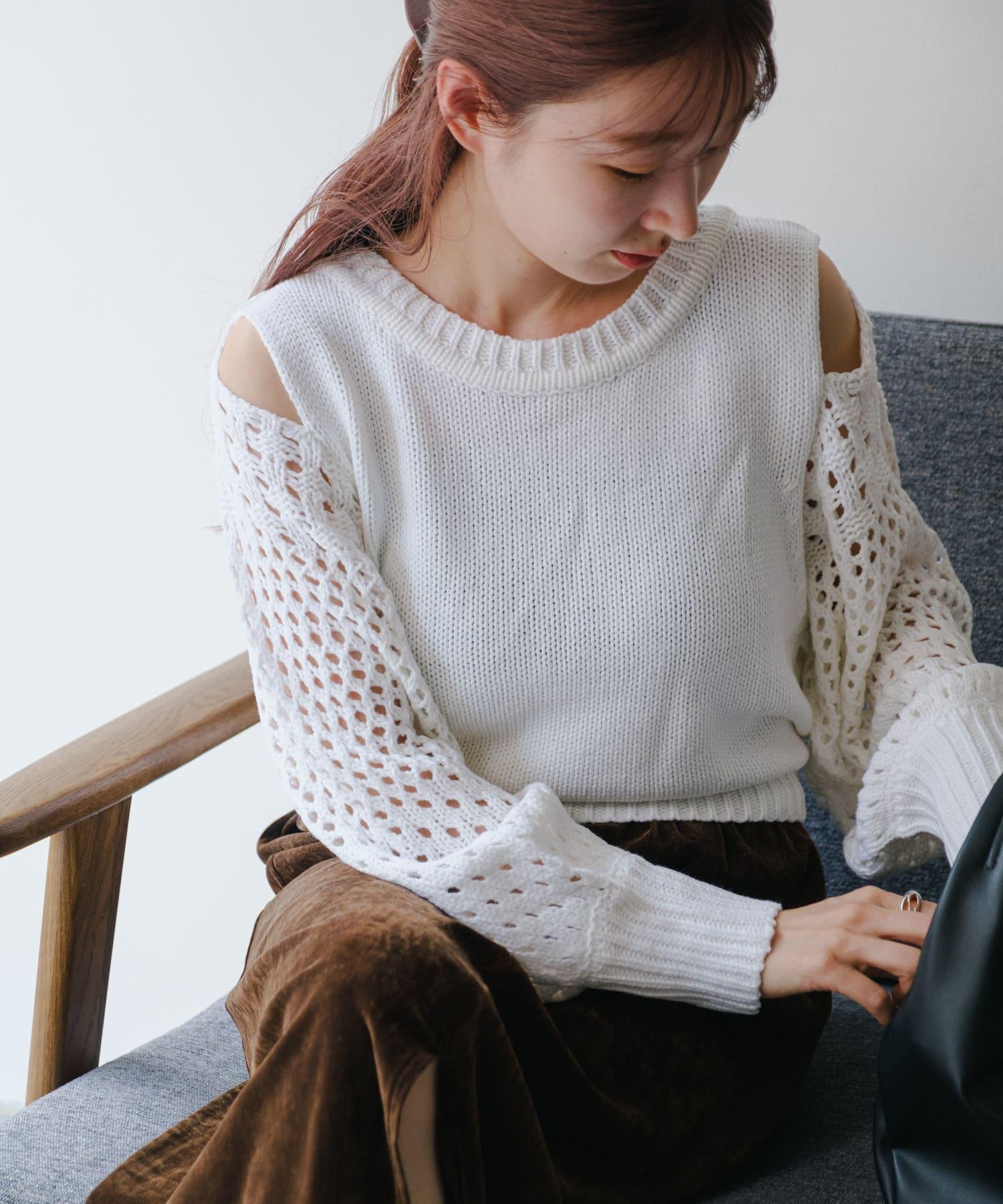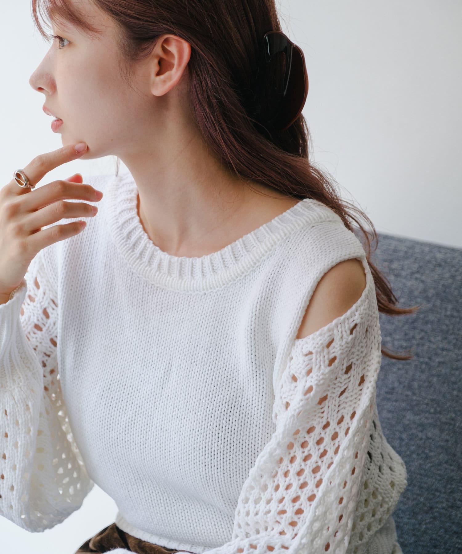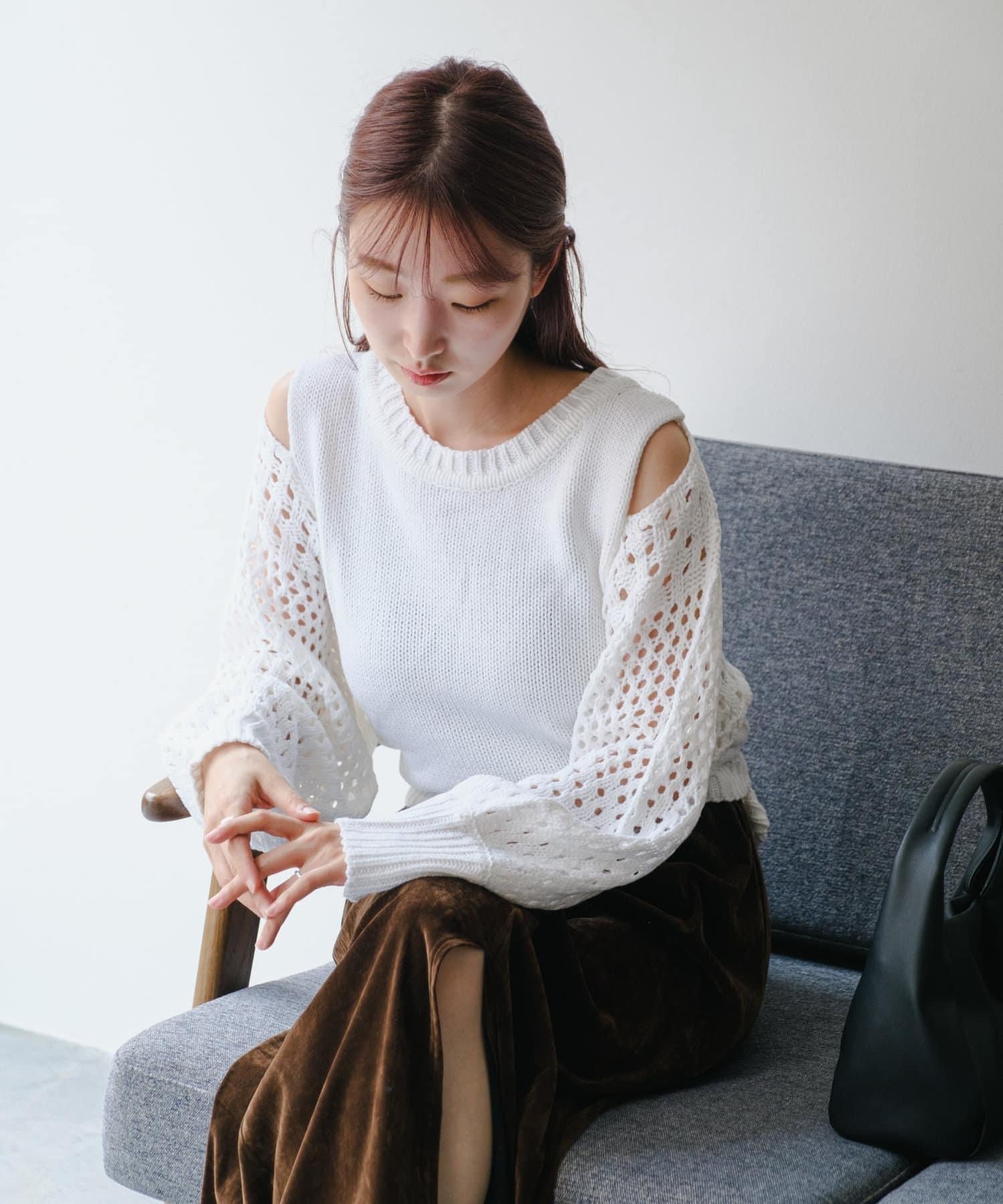 袖子和背部採用鏤空設計,更顯寬鬆柔美。