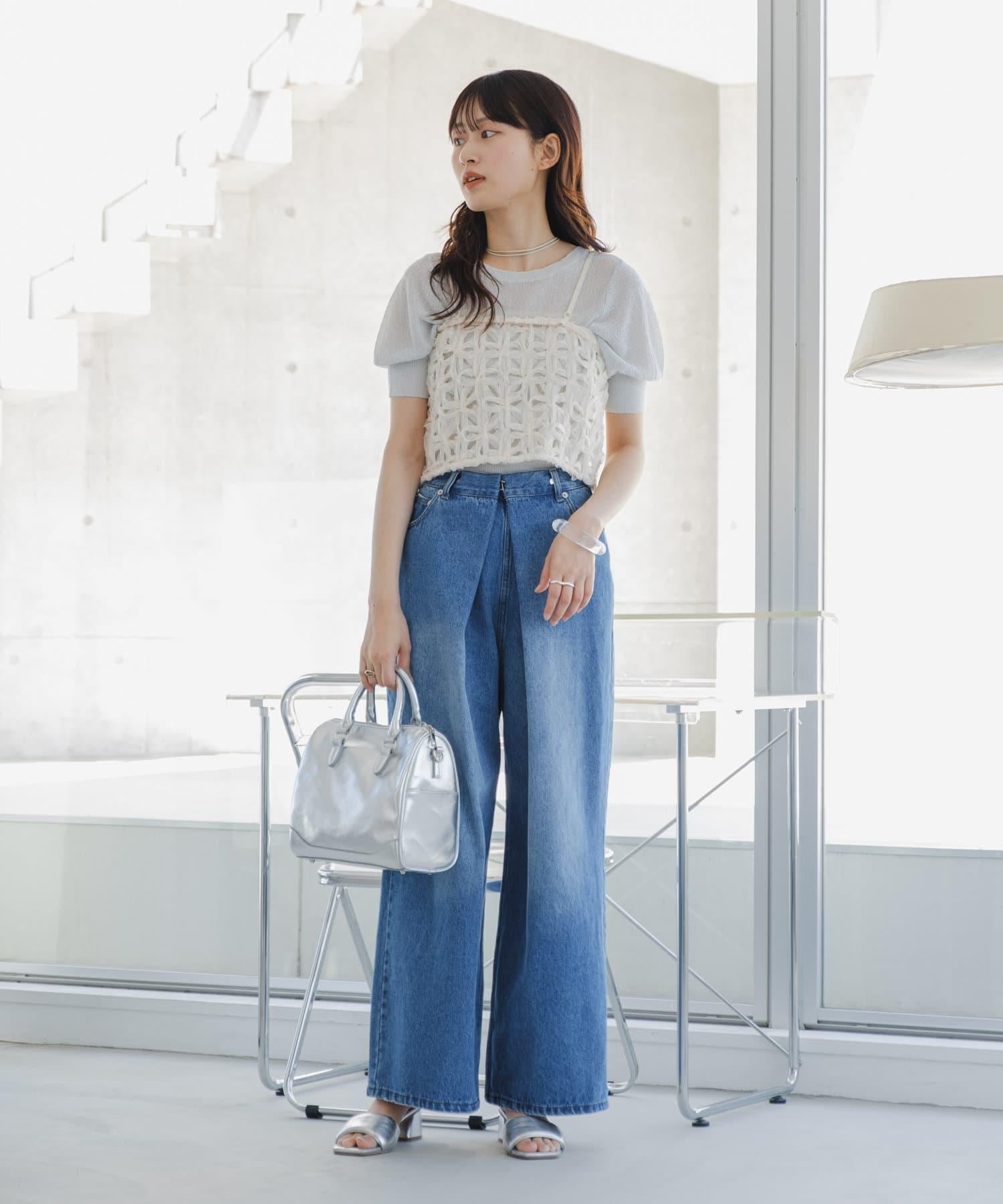 薄紗針織套頭衫,配以醒目的扎克扎克花飾