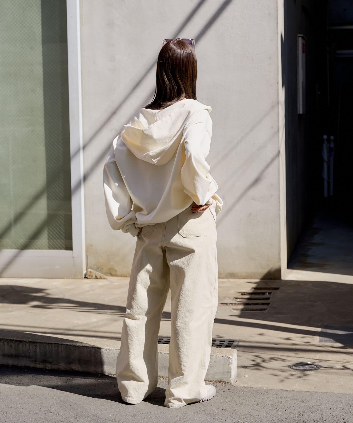 畫家長褲特有的深襠、錘圈、鱗片口袋和三針縫製賦予了長褲功能性和耐用性,單品完成後再現了當時的氛圍。