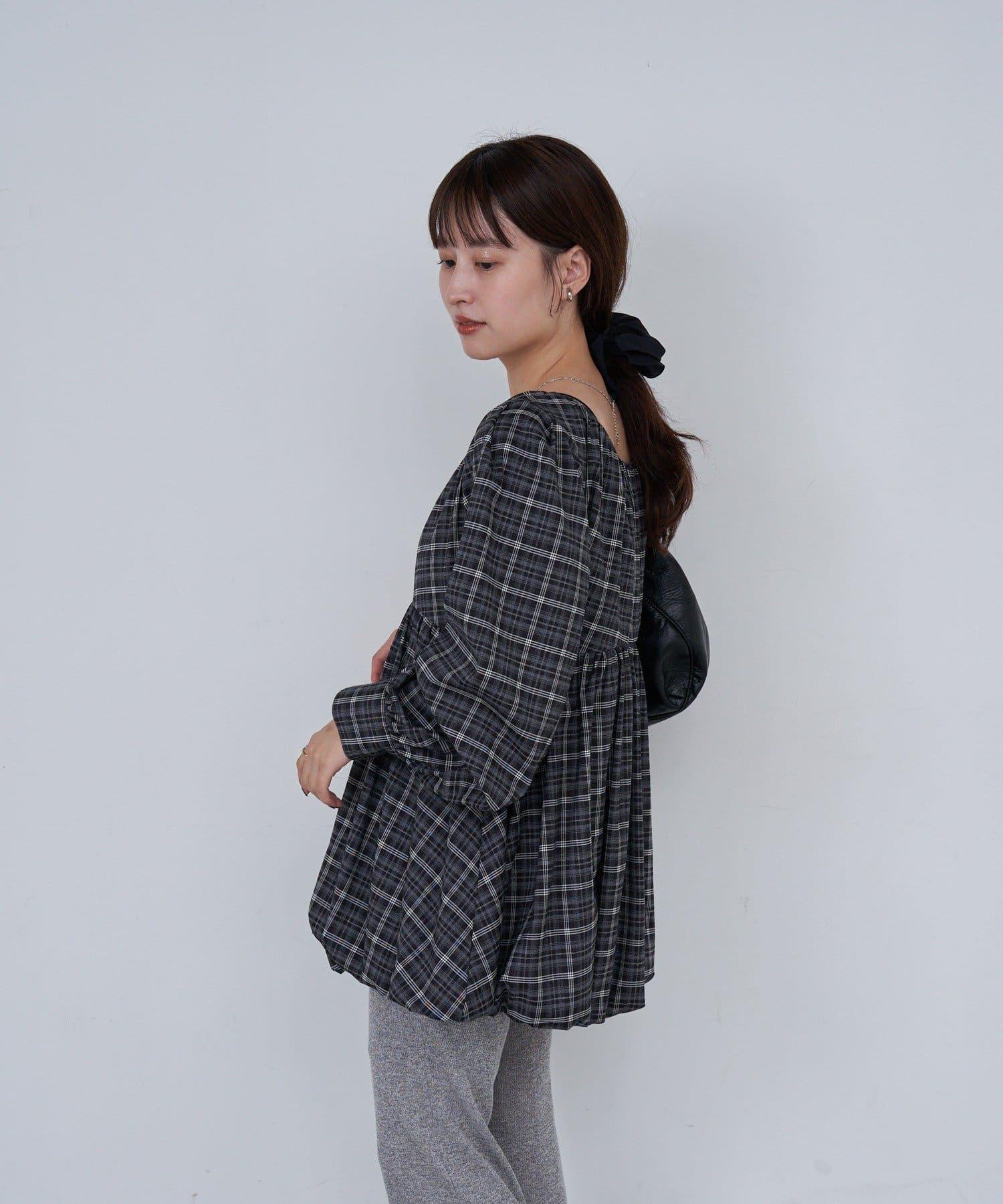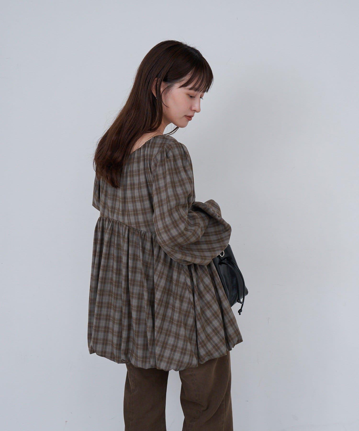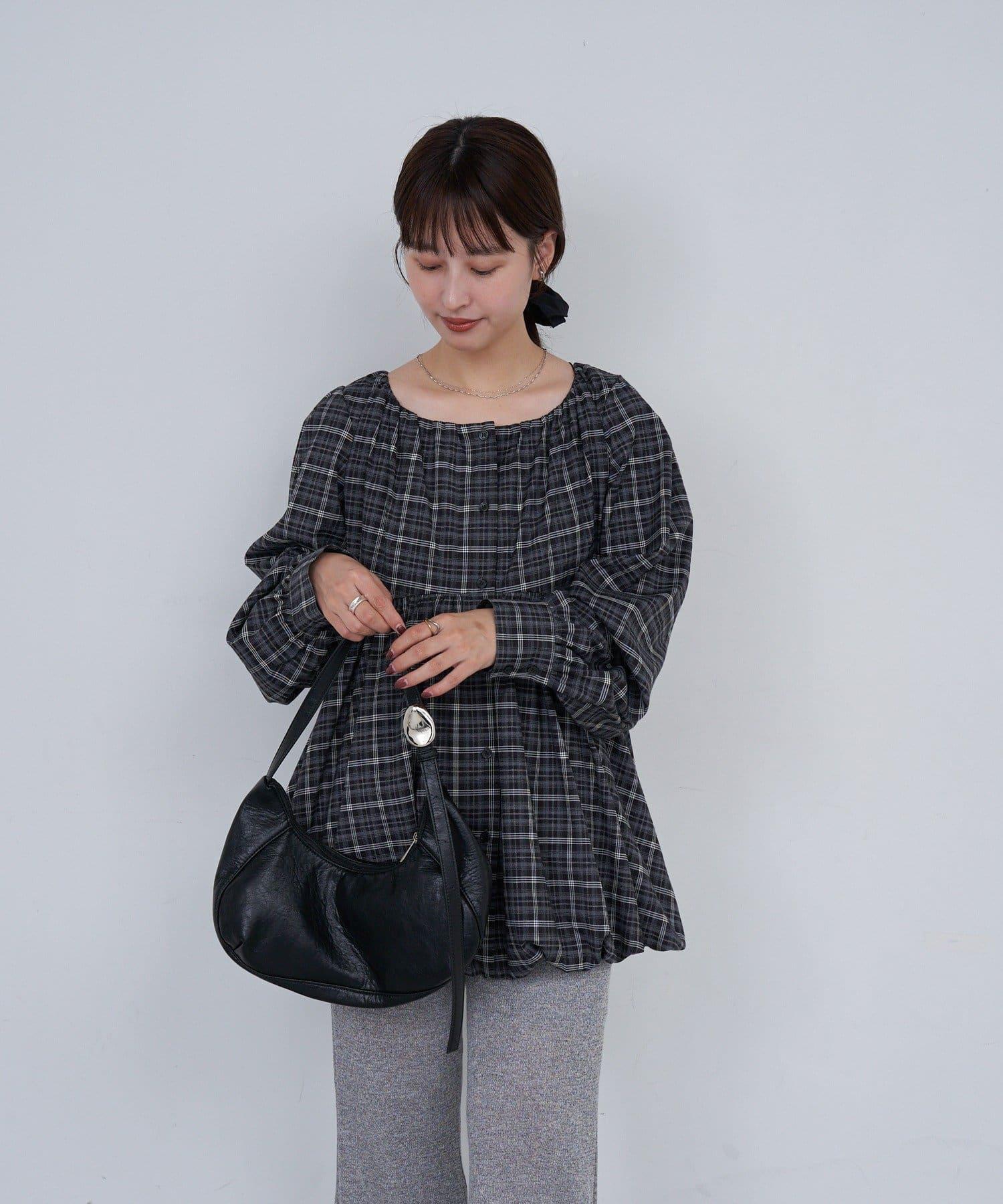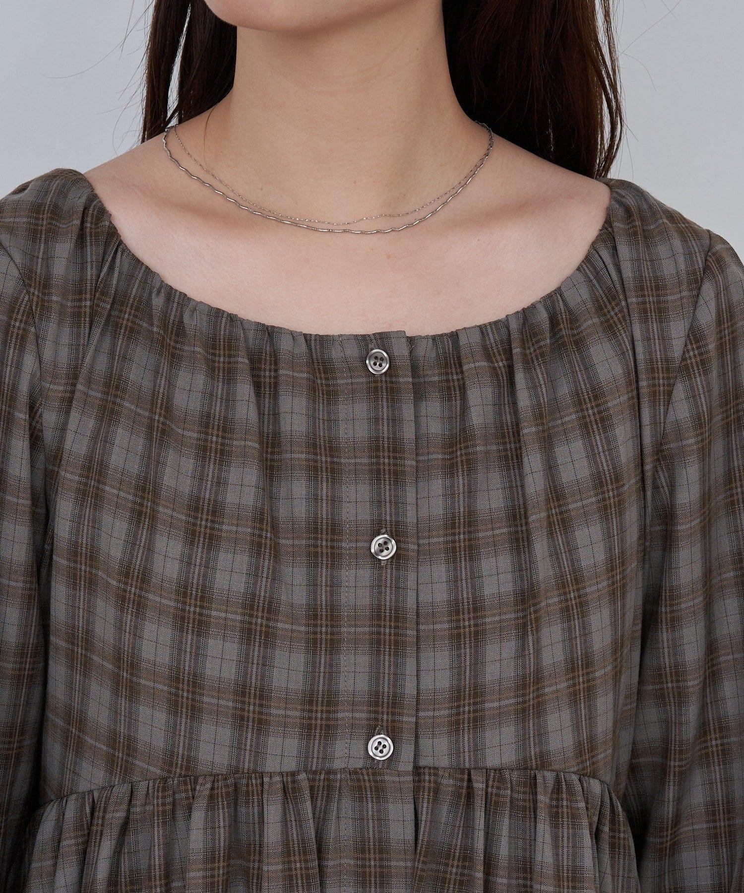 胸口下的接縫也有提升氣質的效果,棋盤格圖案給人一種優雅的印象,同時又增添了休閒的氣息。