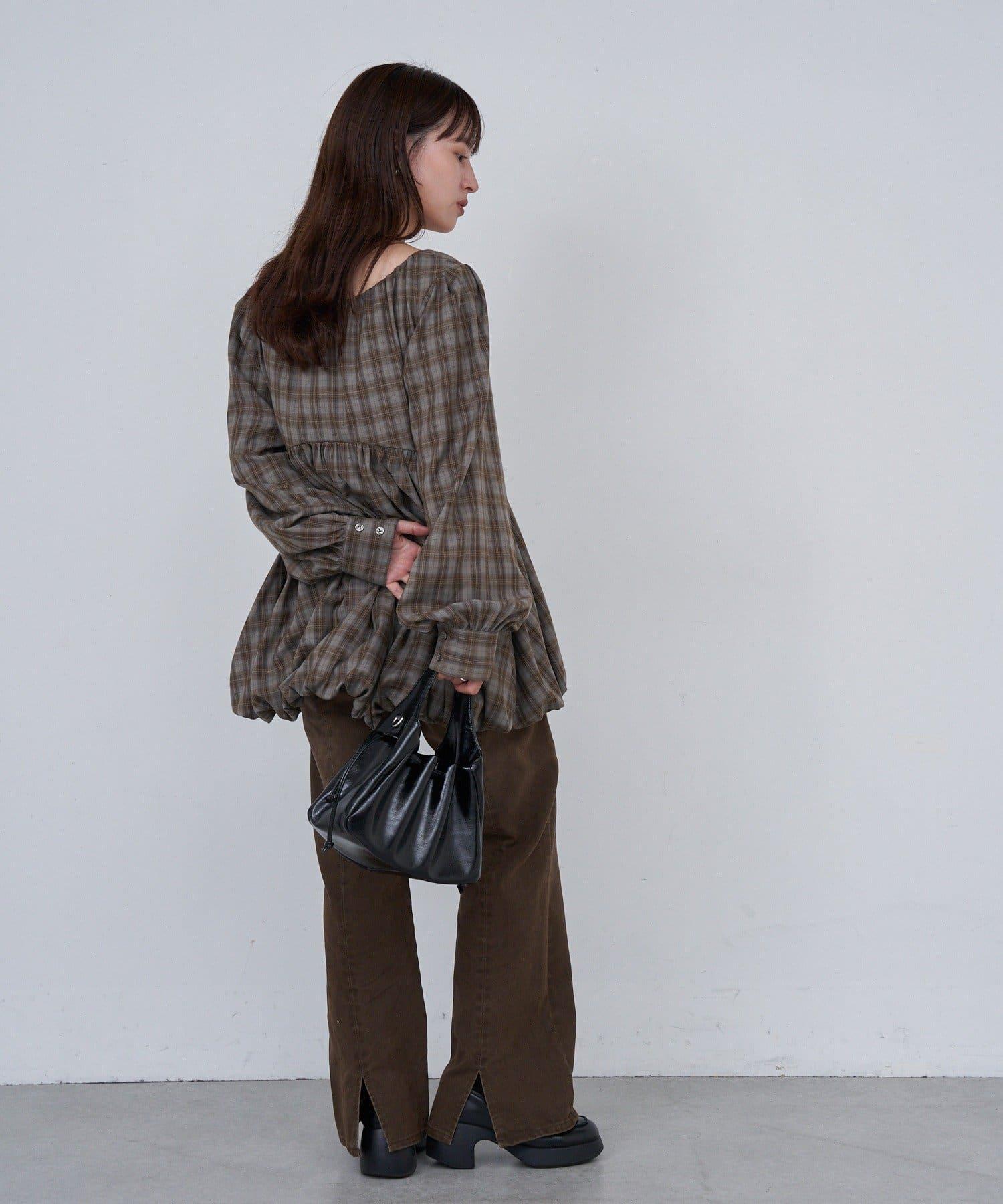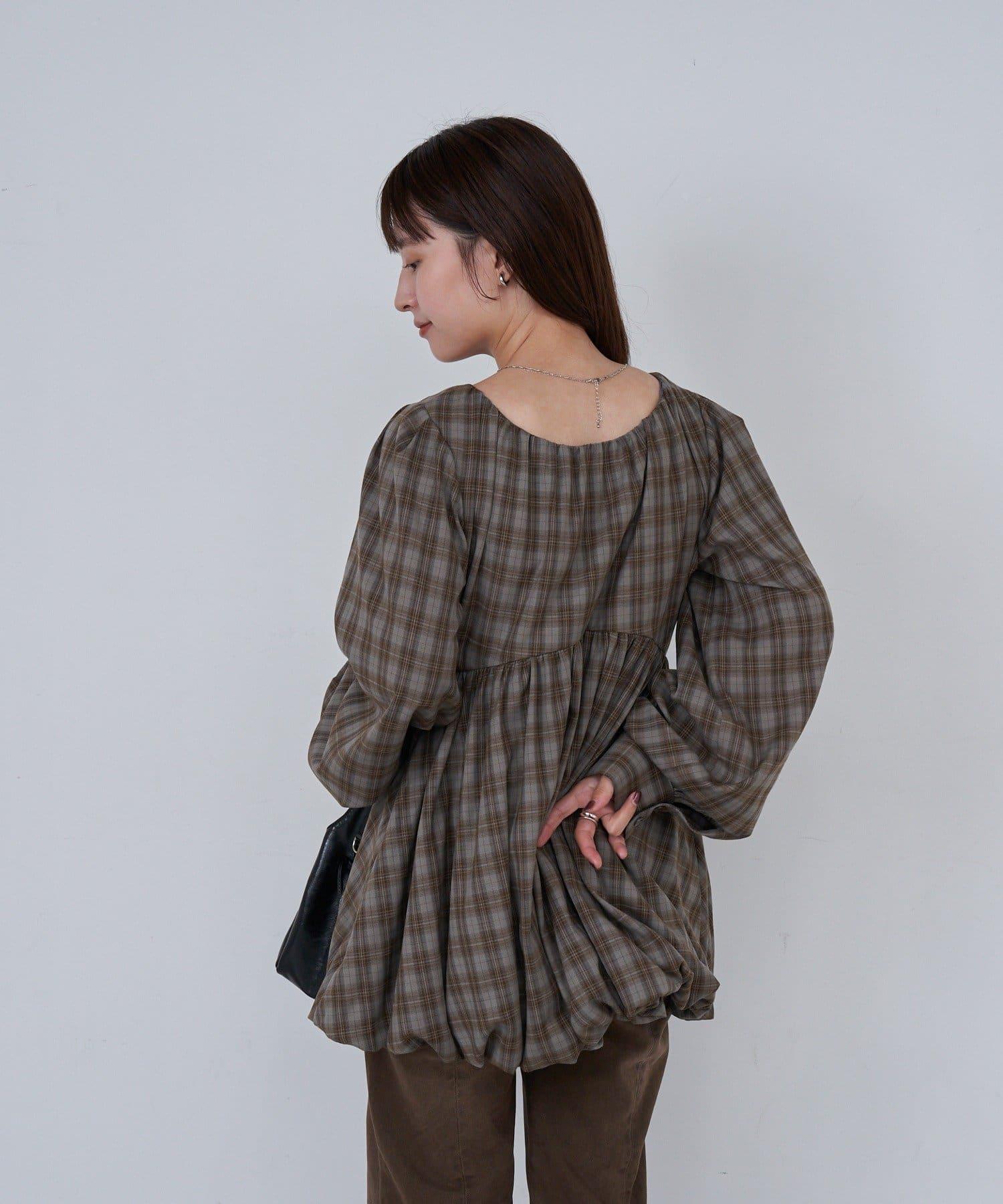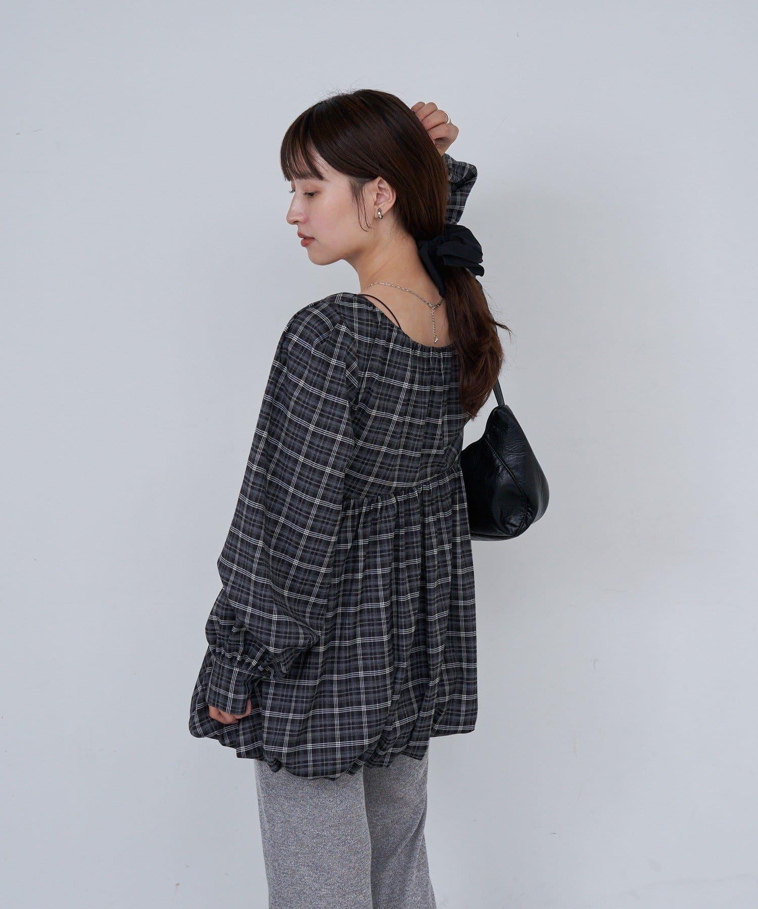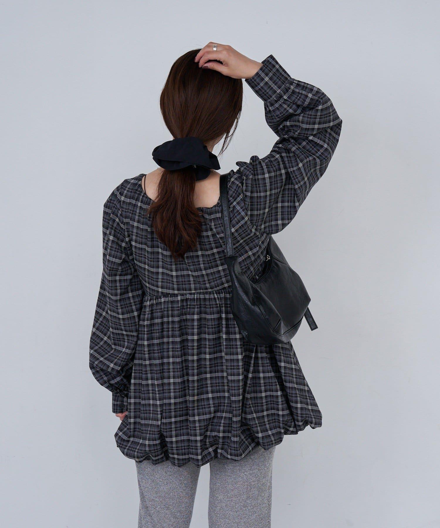 胸口下的接縫也有提升氣質的效果,棋盤格圖案給人一種優雅的印象,同時又增添了休閒的氣息。