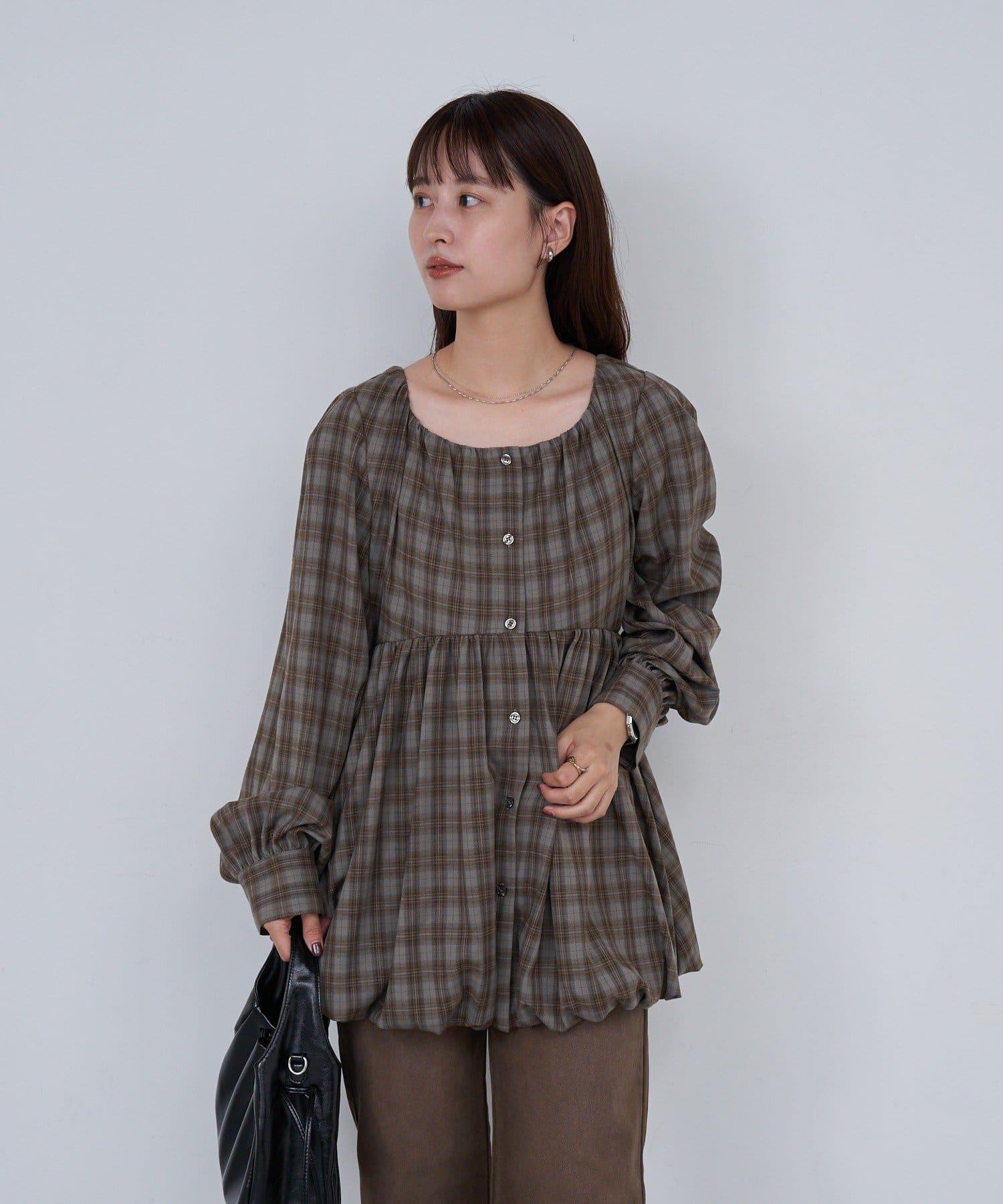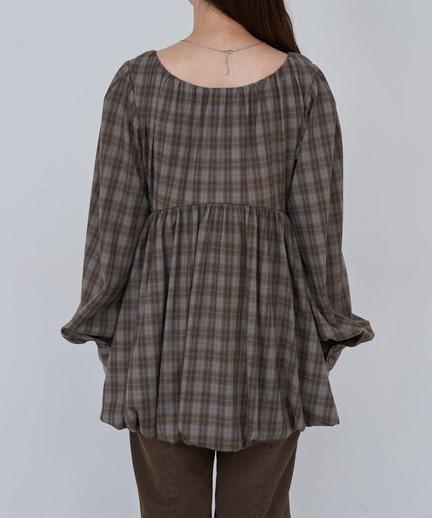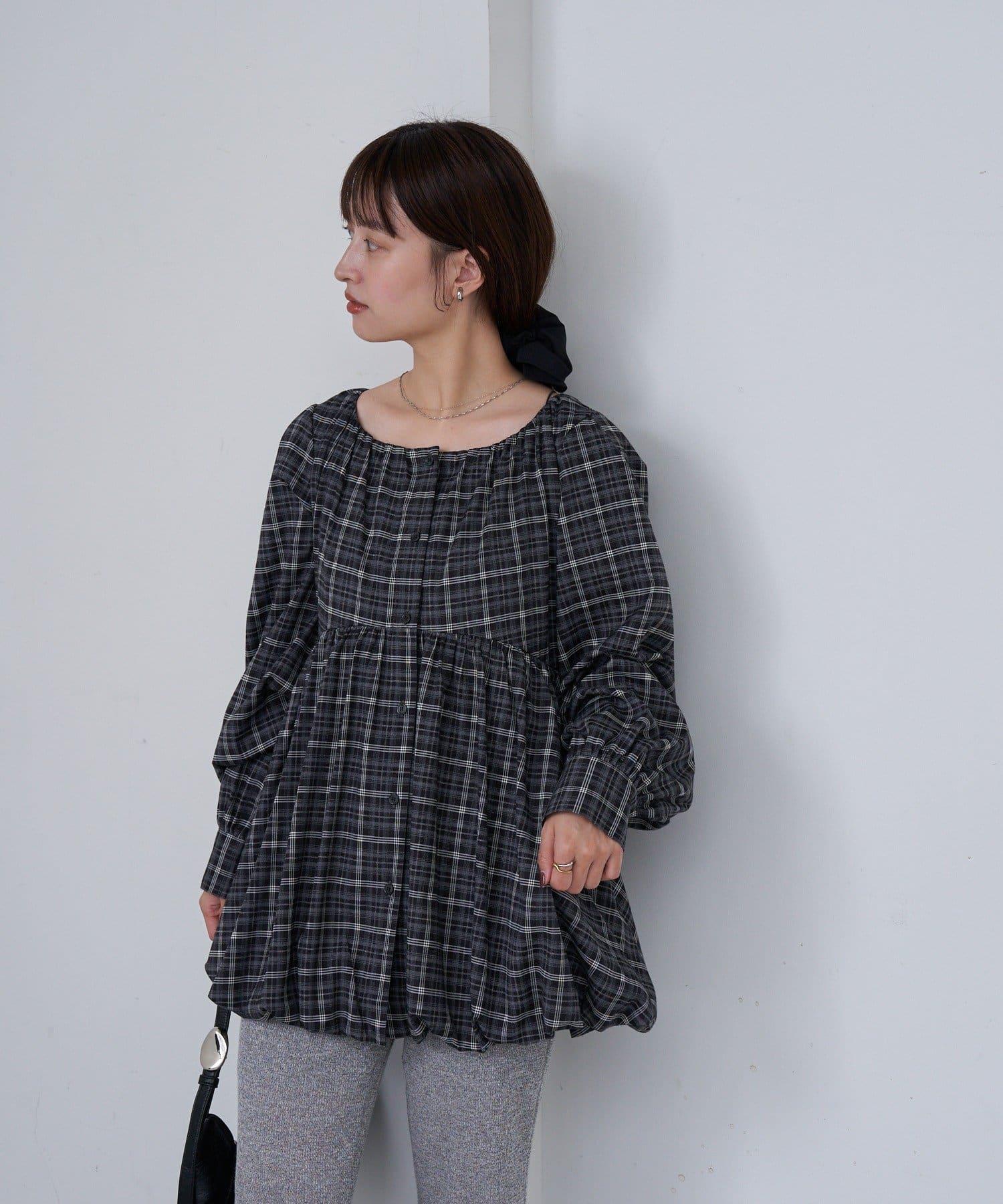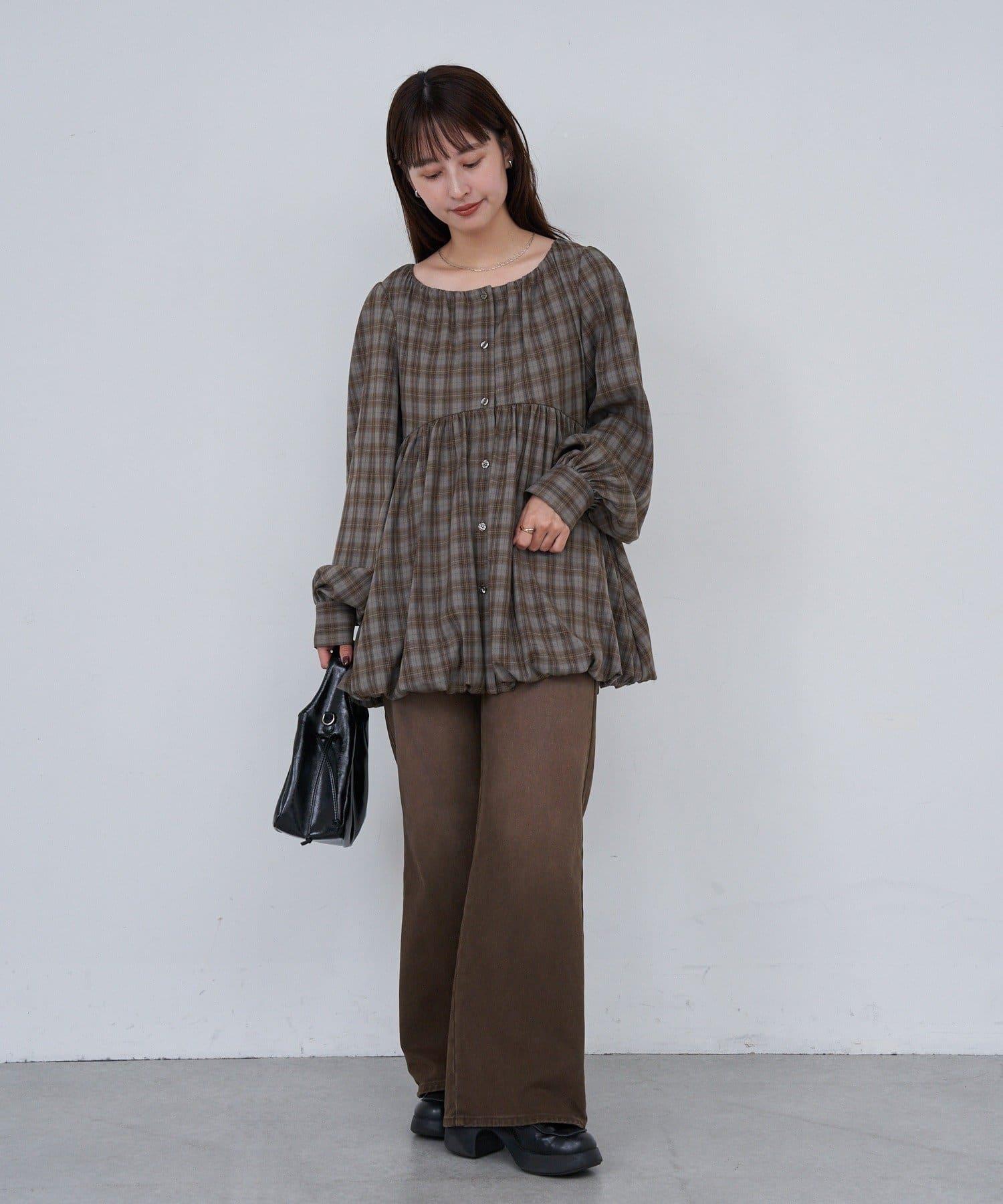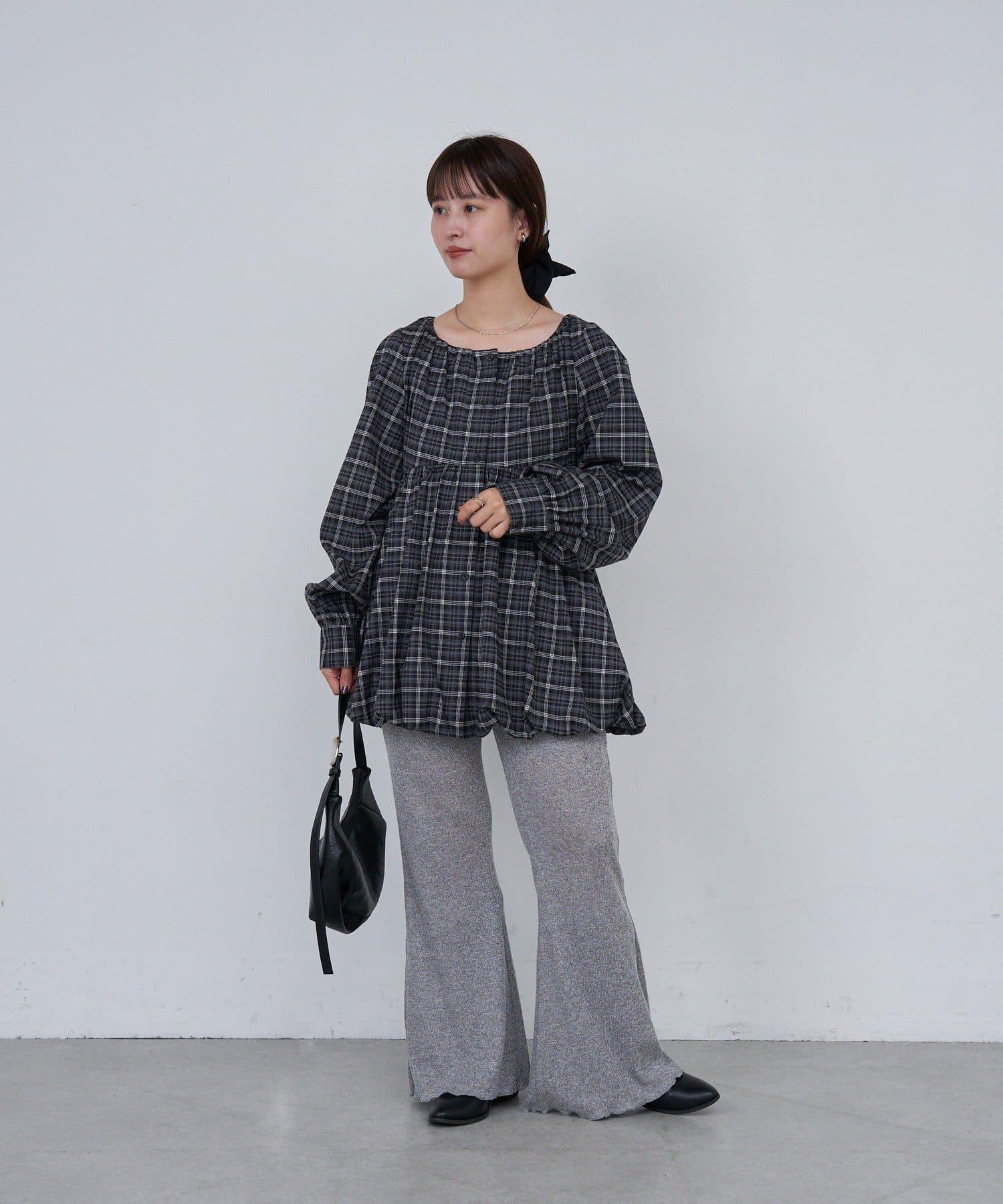 胸口下的接縫也有提升氣質的效果,棋盤格圖案給人一種優雅的印象,同時又增添了休閒的氣息。