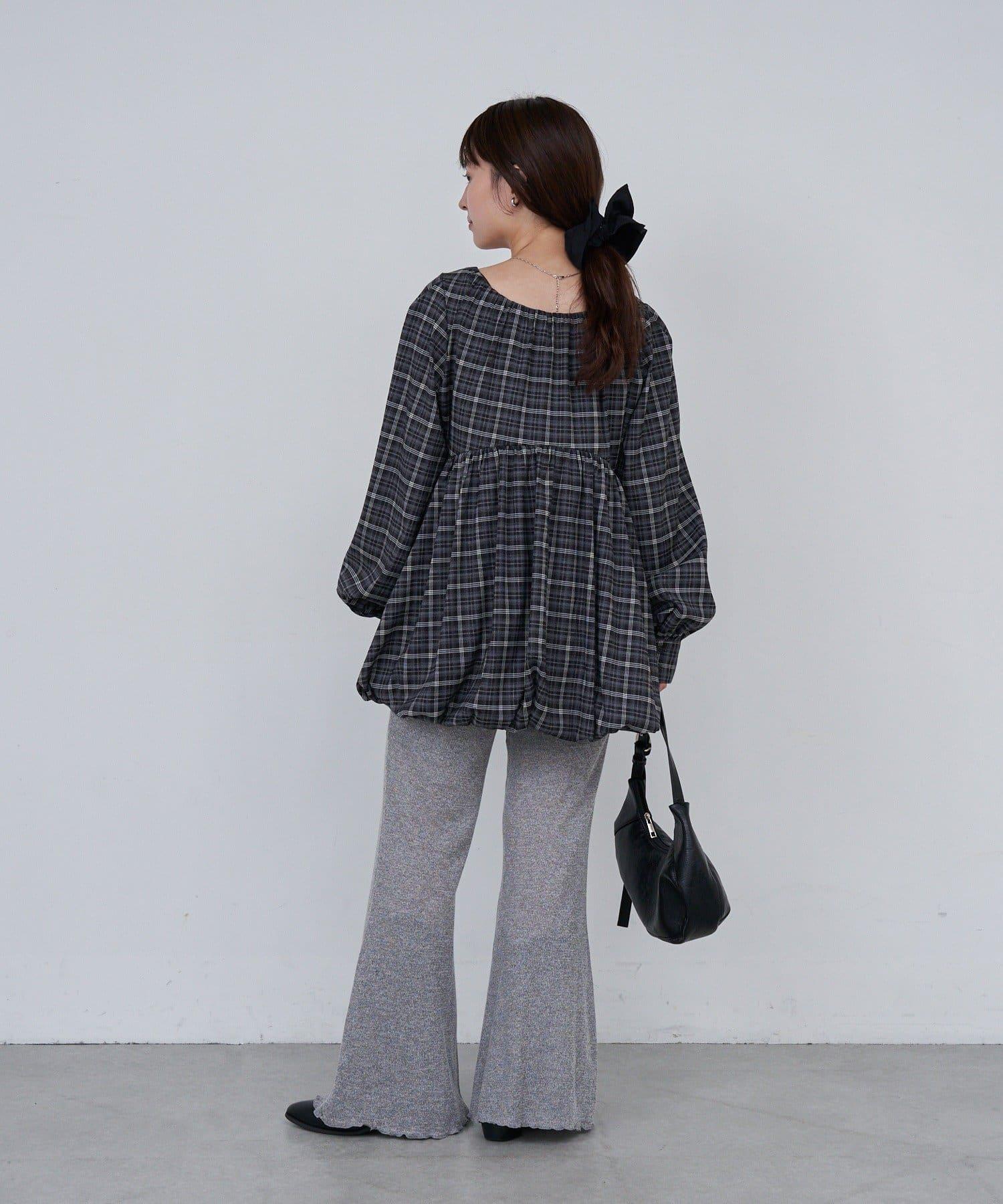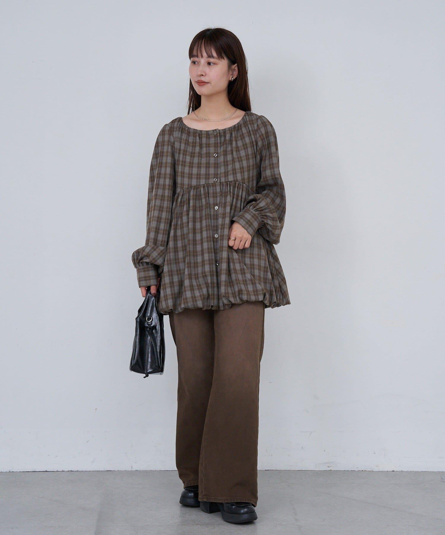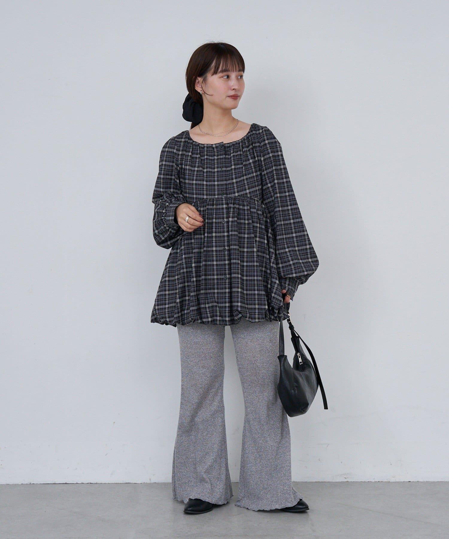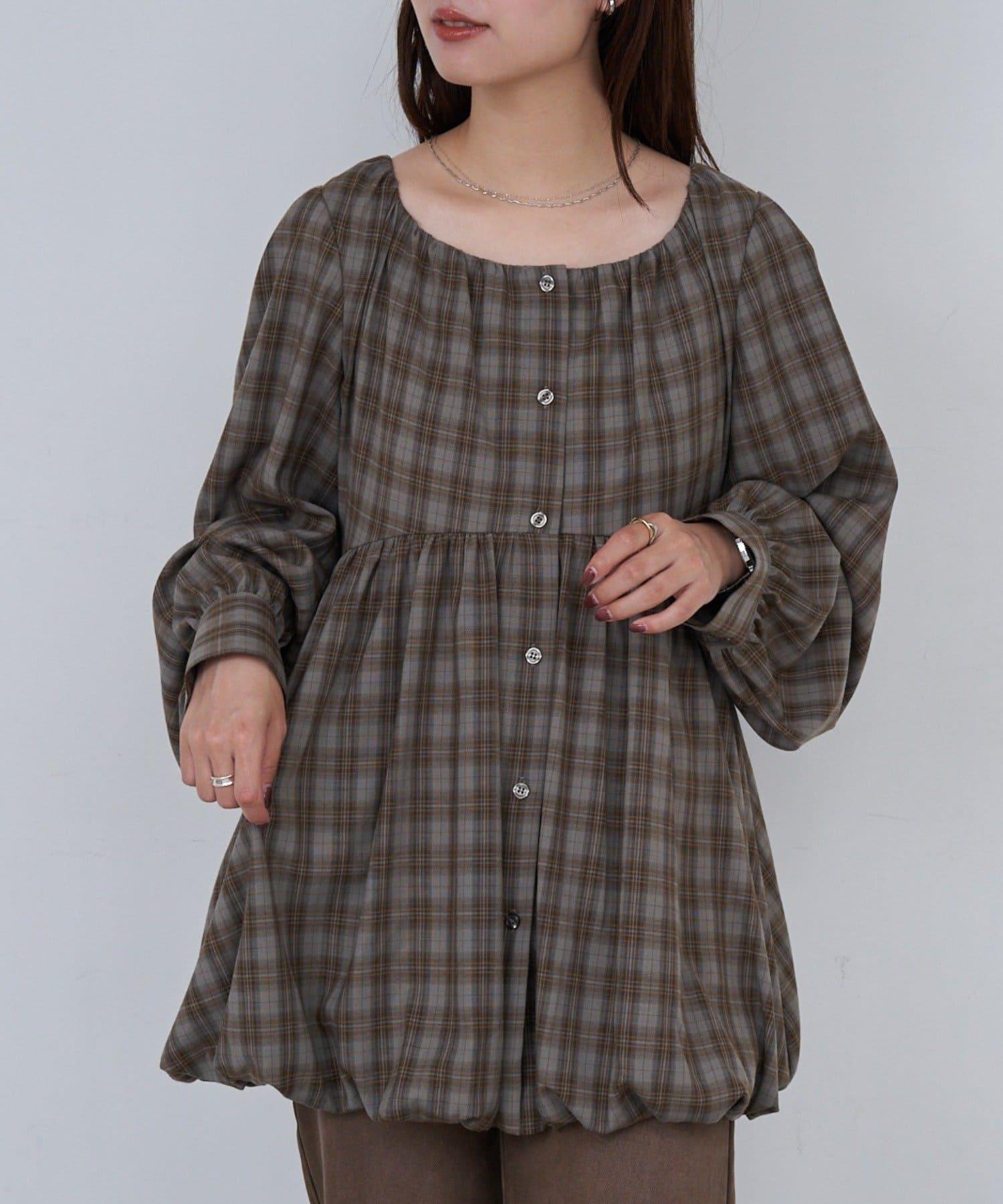 胸口下的接縫也有提升氣質的效果,棋盤格圖案給人一種優雅的印象,同時又增添了休閒的氣息。