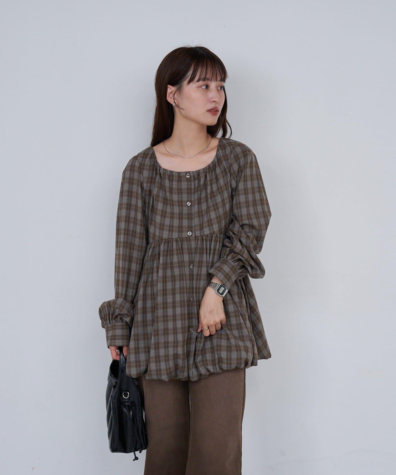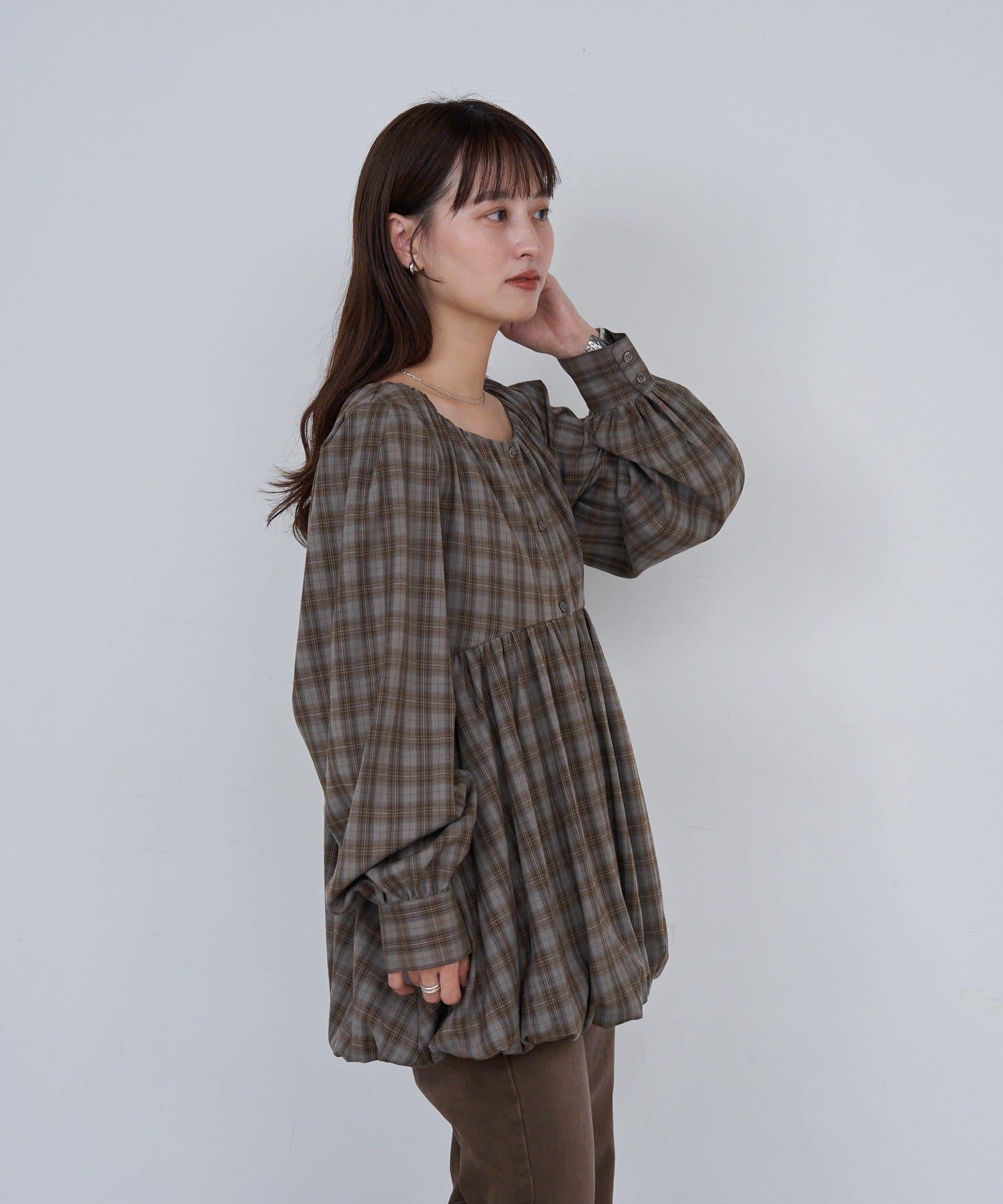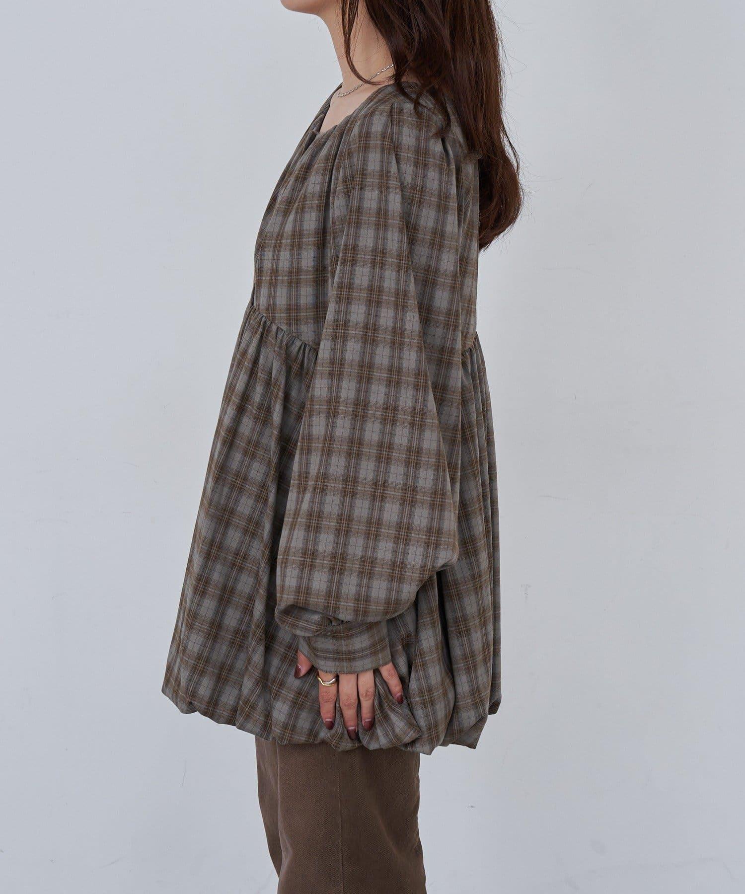 這款方形氣球長衫的輪廓柔和嫵媚。