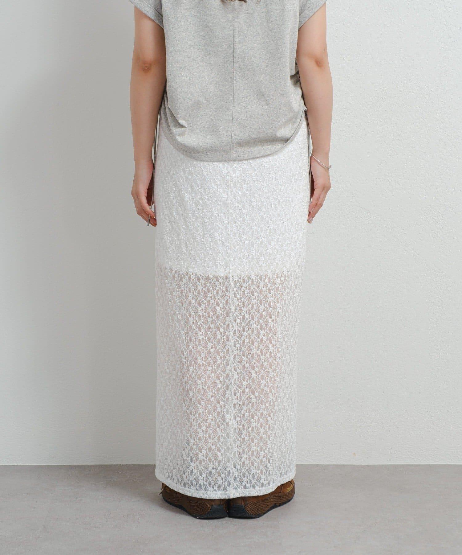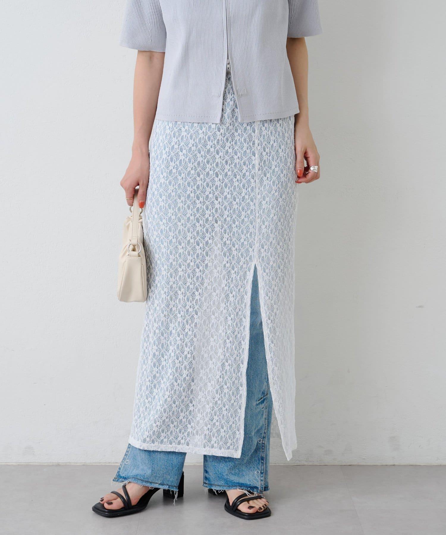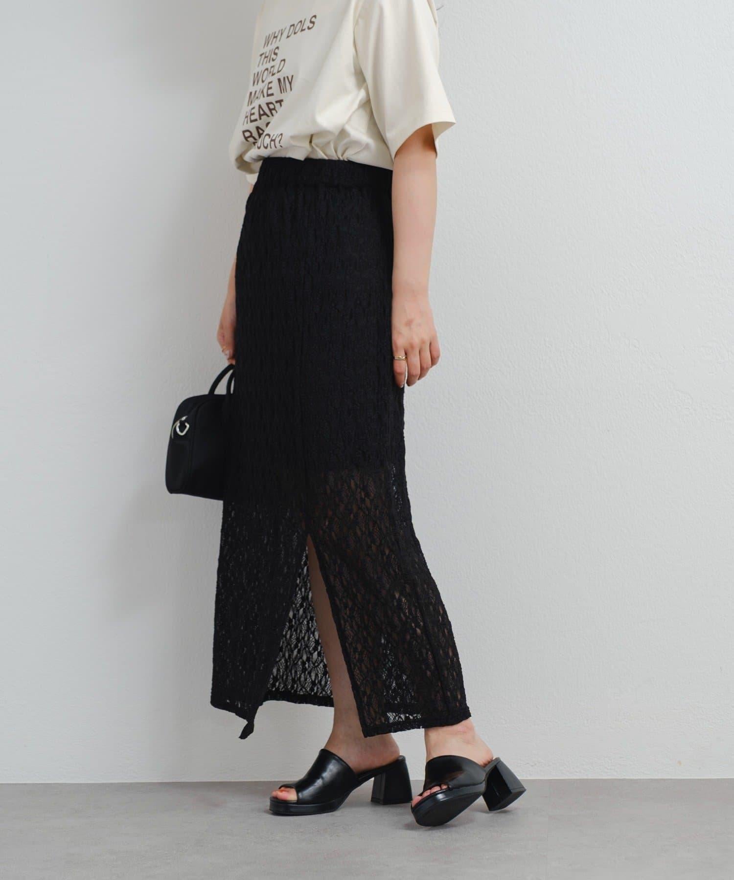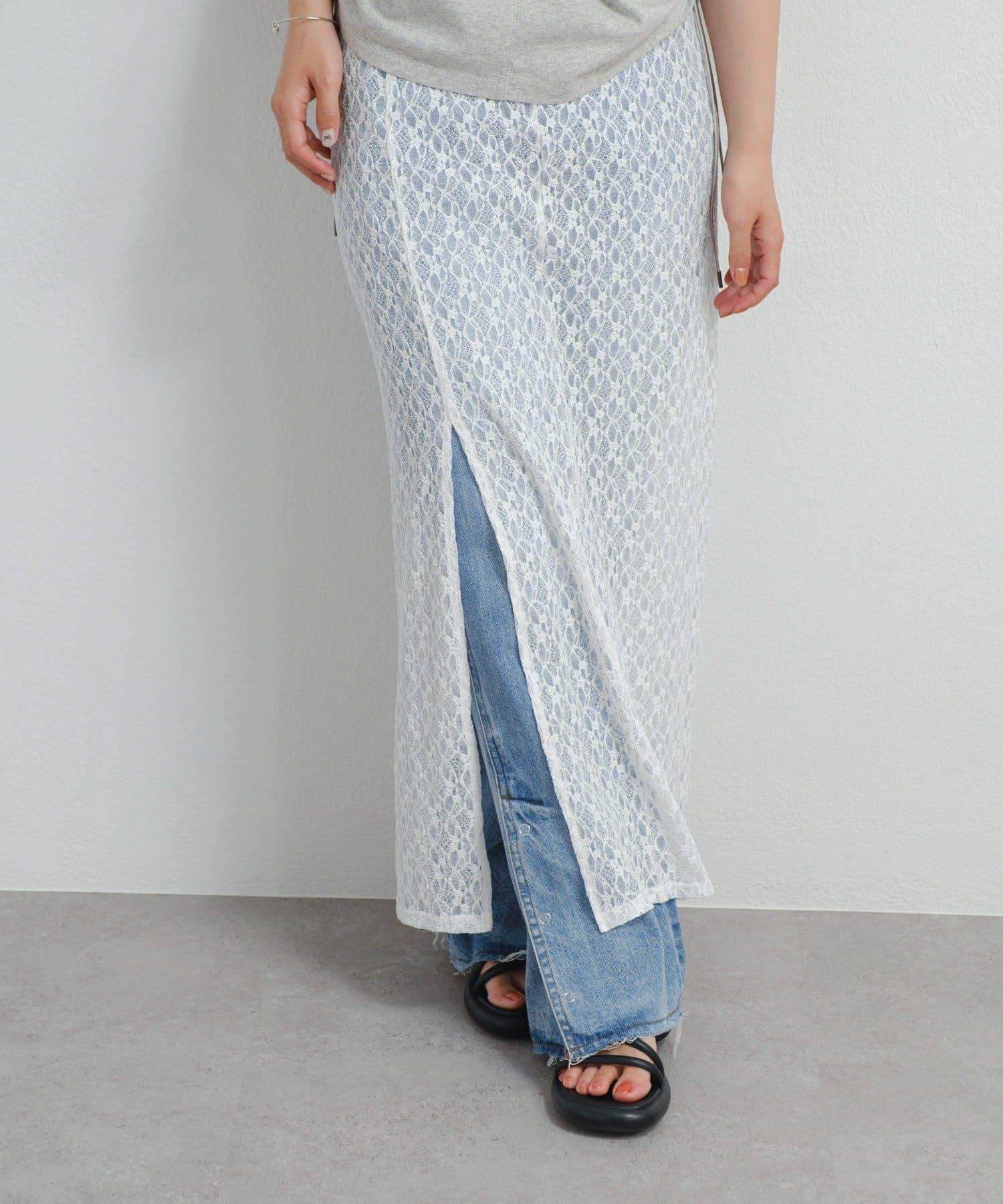 這款開衩長裙採用透明蕾絲面料,給人以清涼柔美的印象。