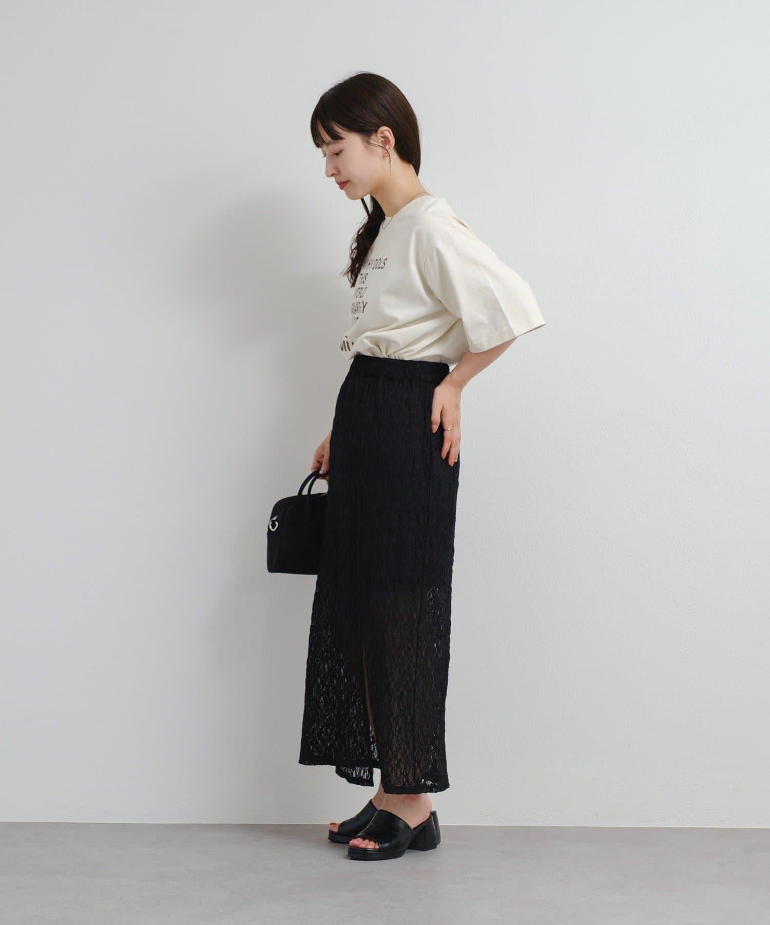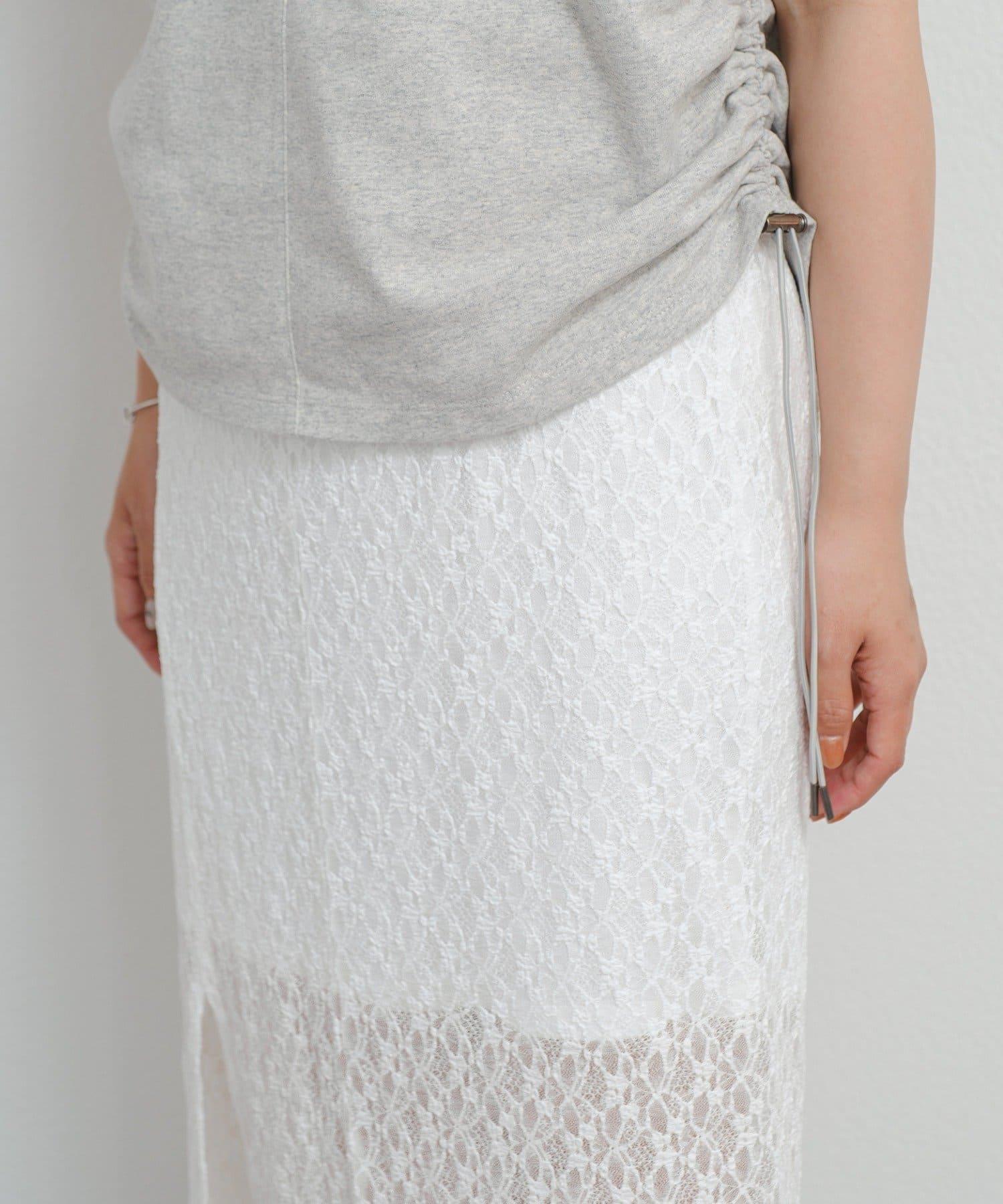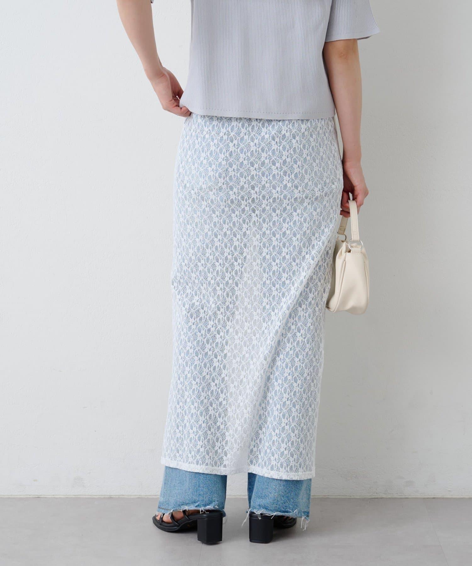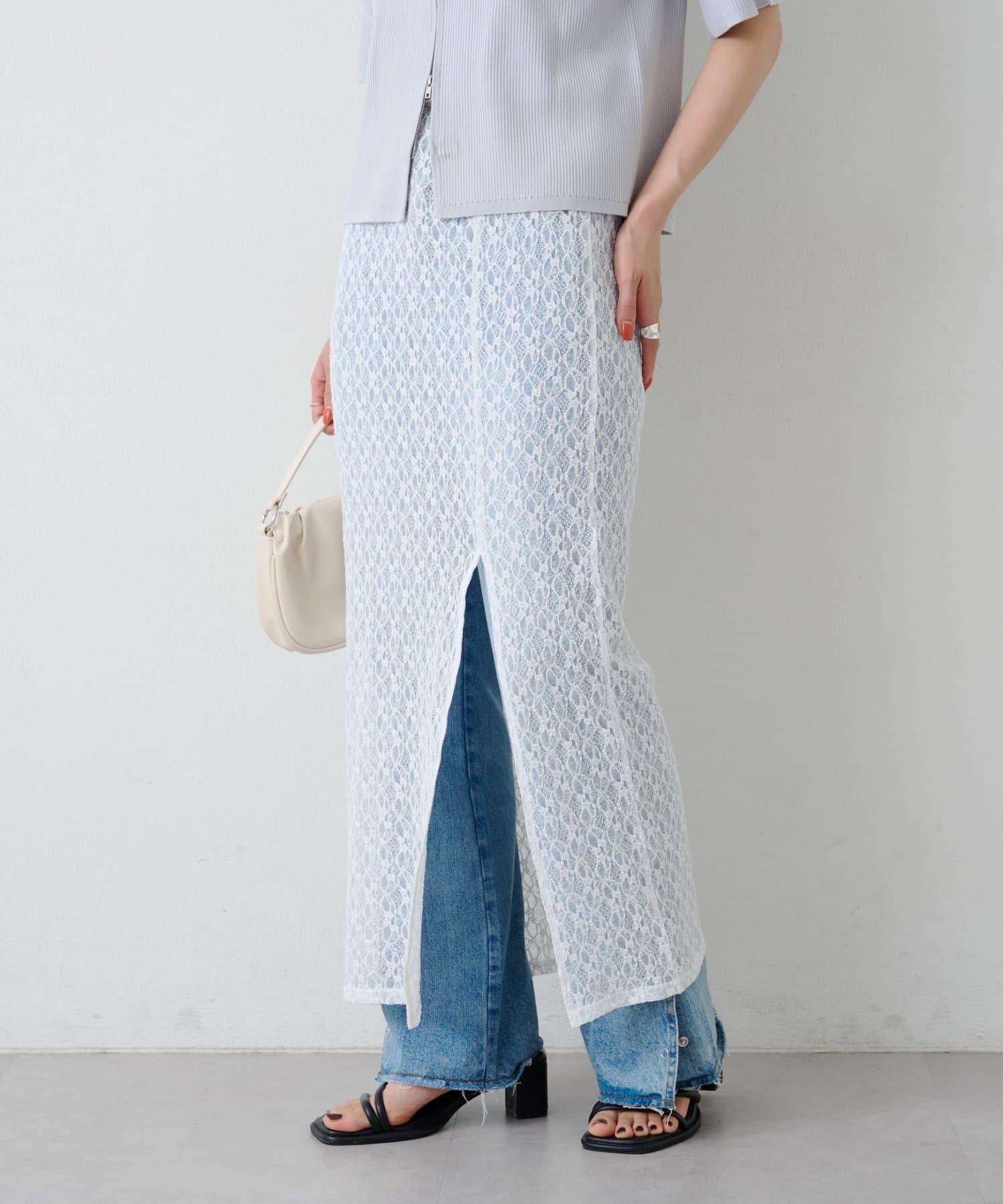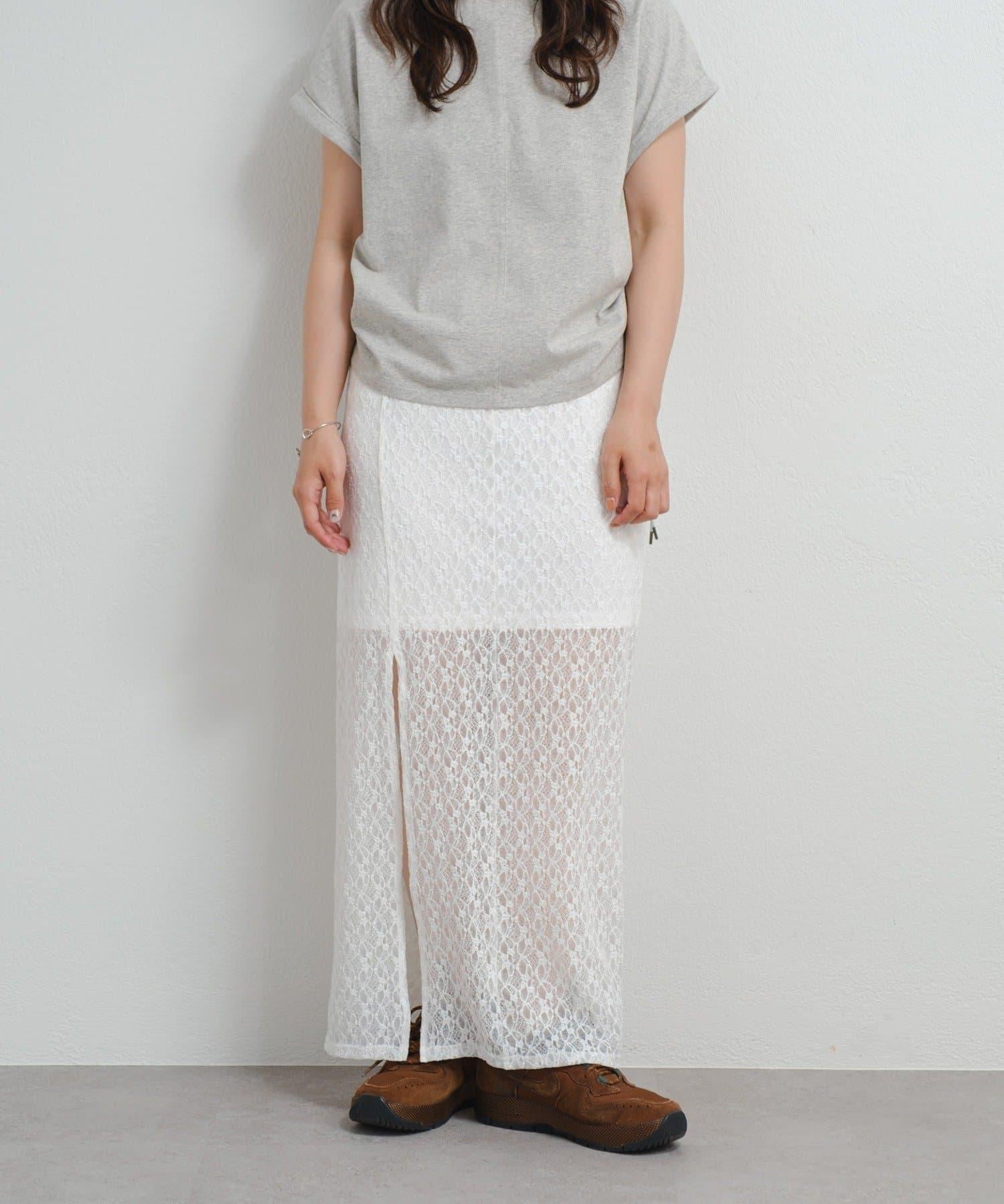 這款開衩長裙採用透明蕾絲面料,給人以清涼柔美的印象。