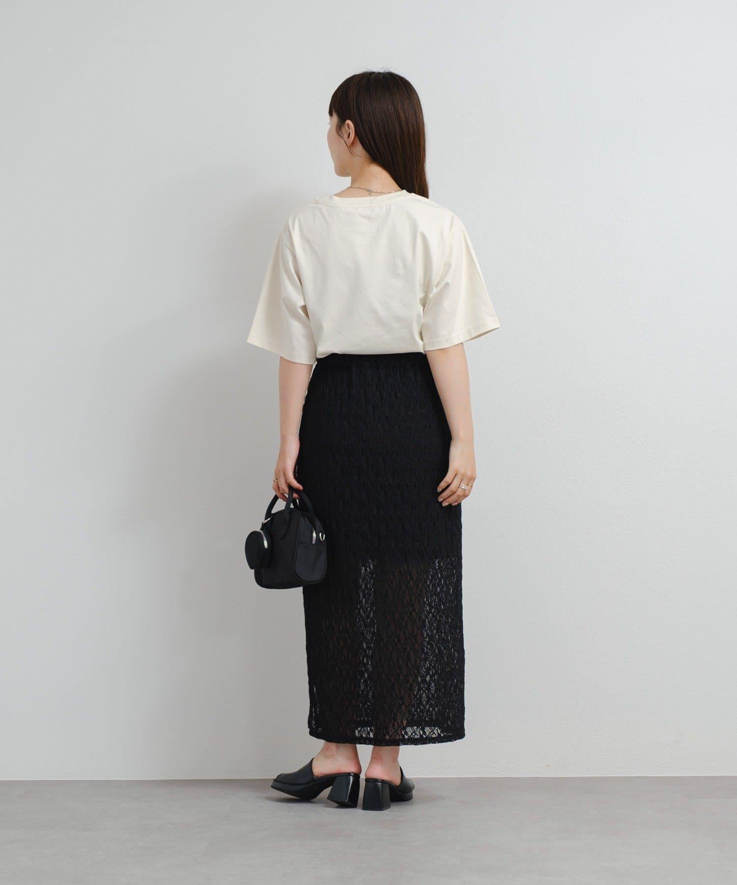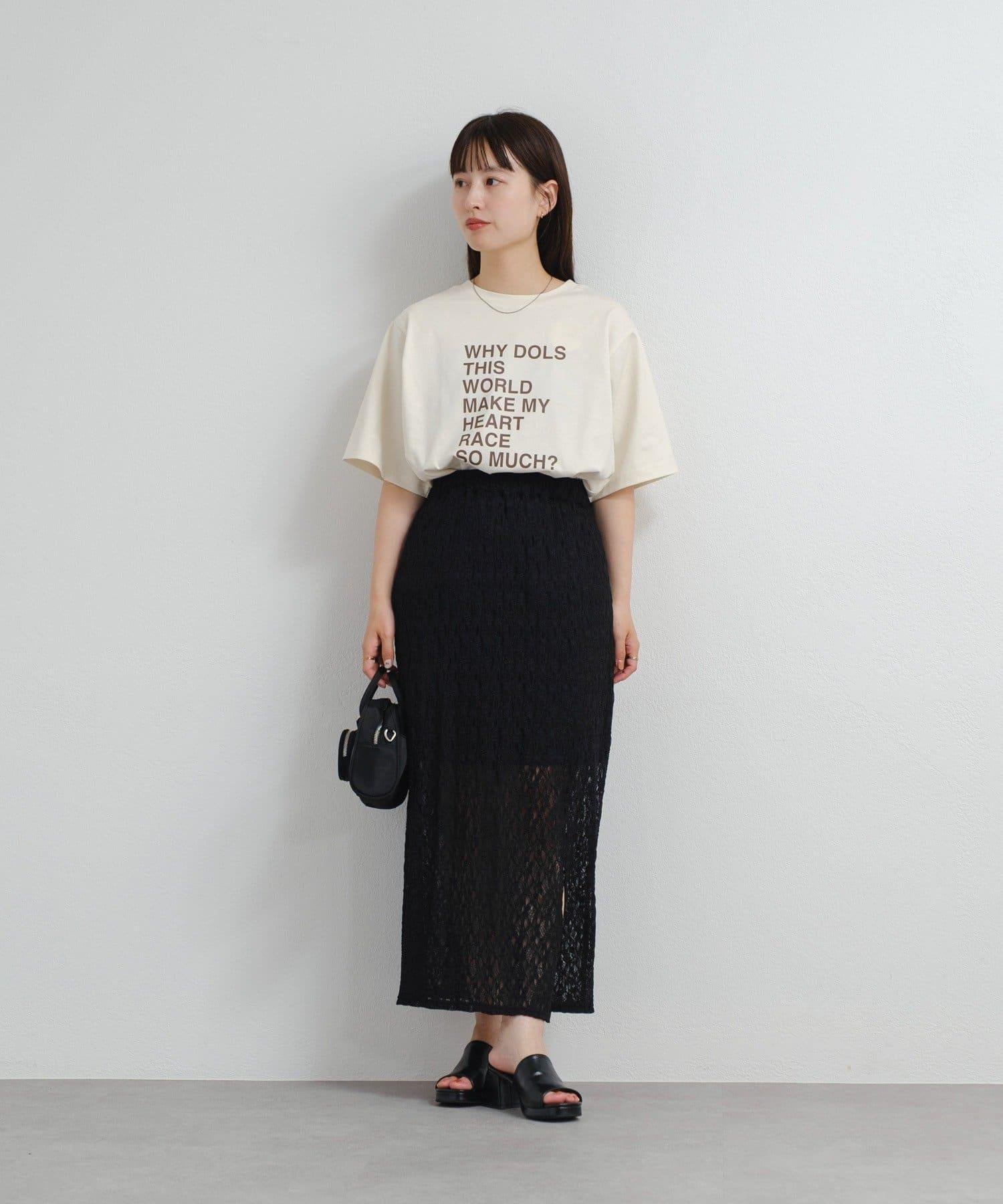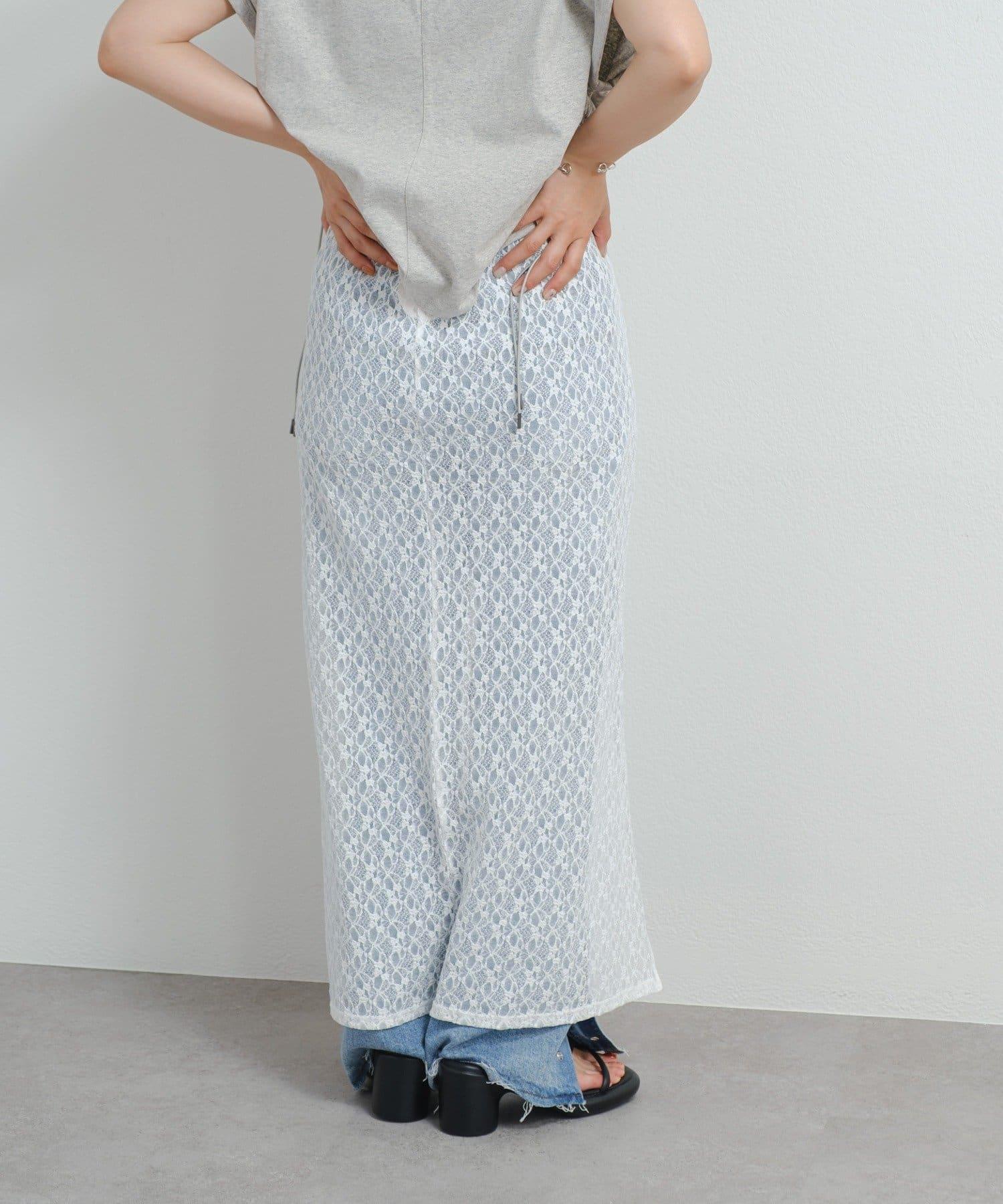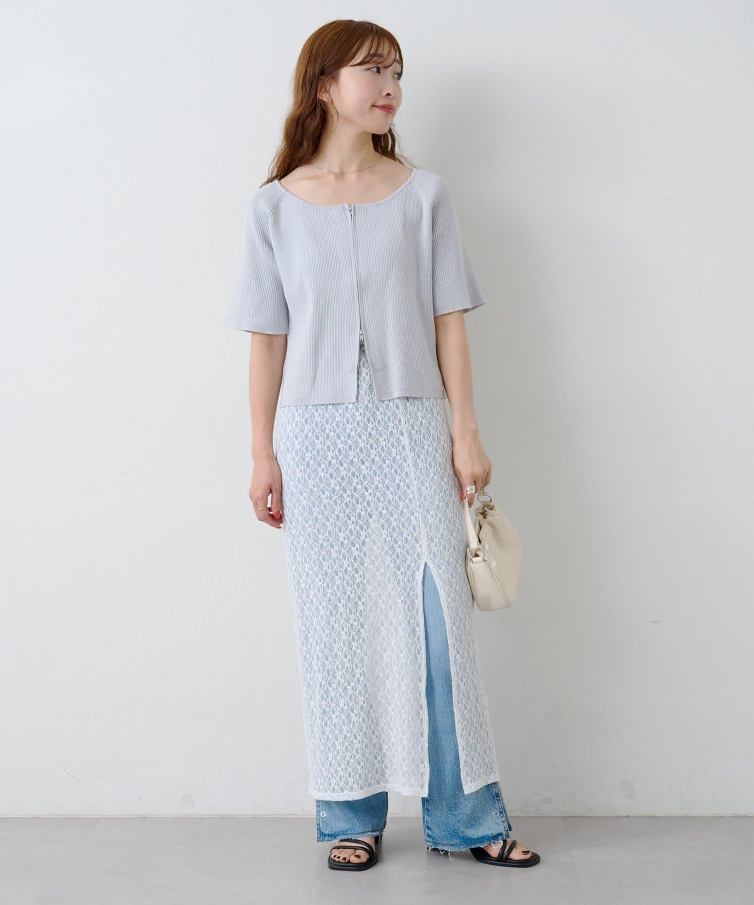這款開衩長裙採用透明蕾絲面料,給人以清涼柔美的印象。
