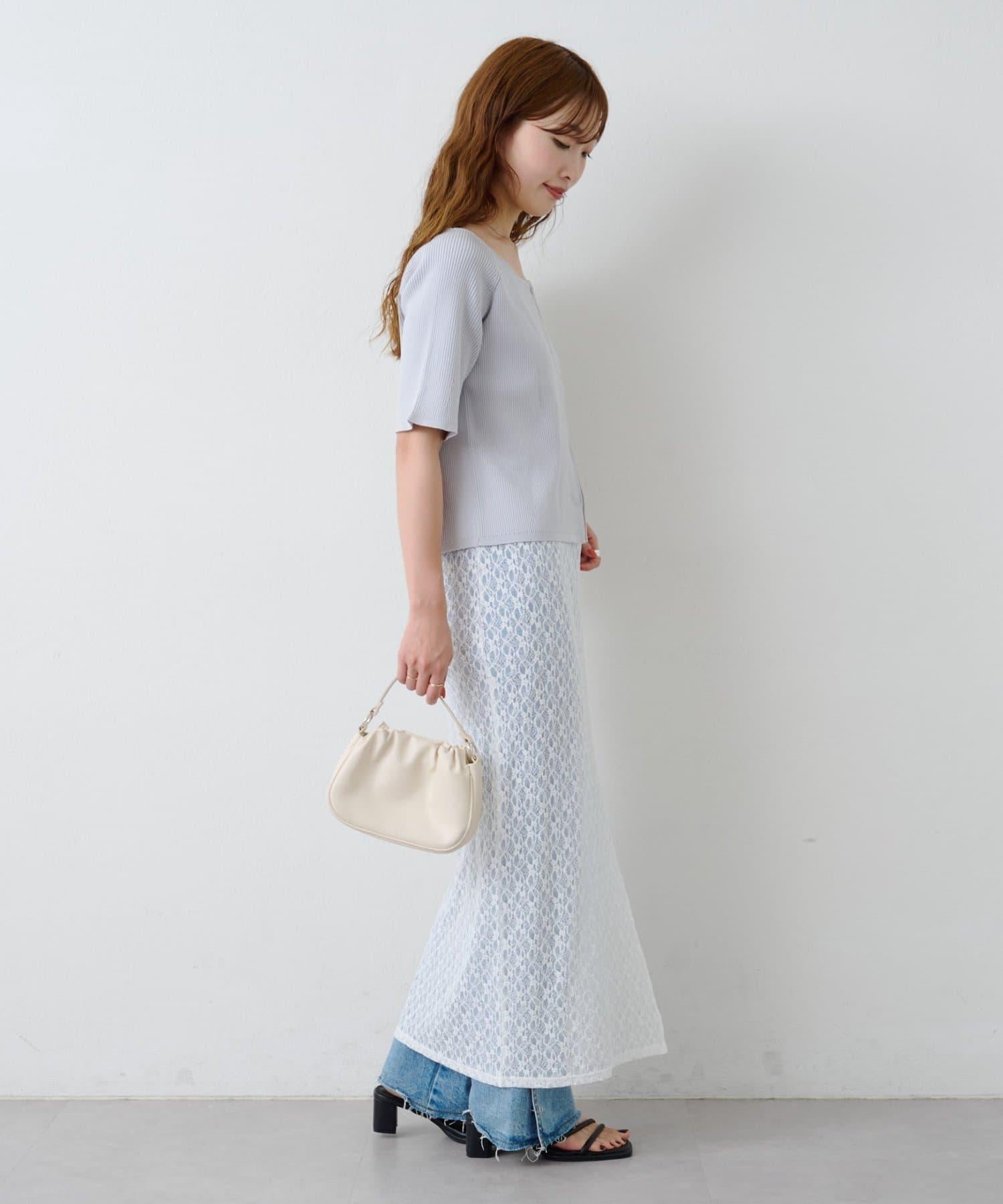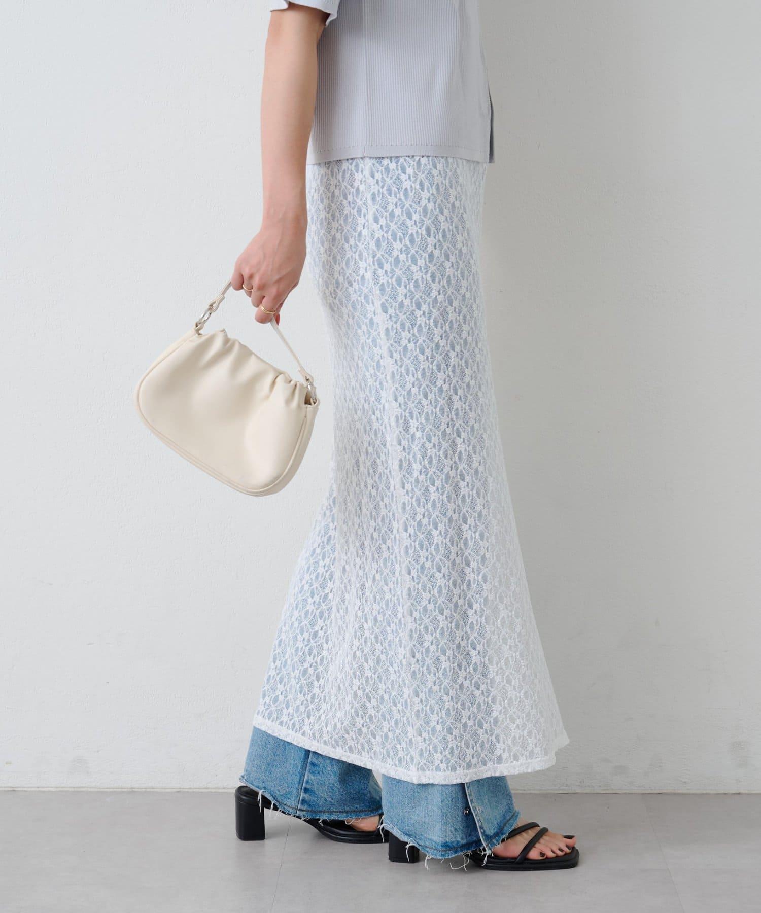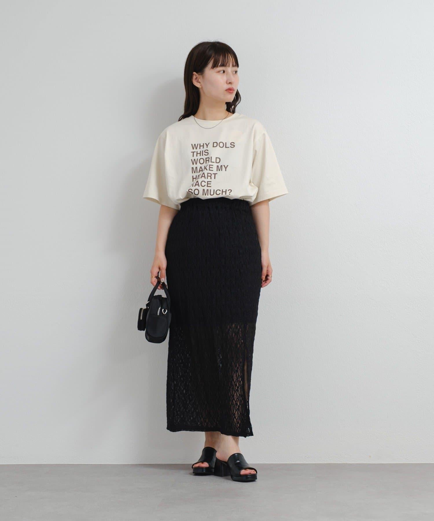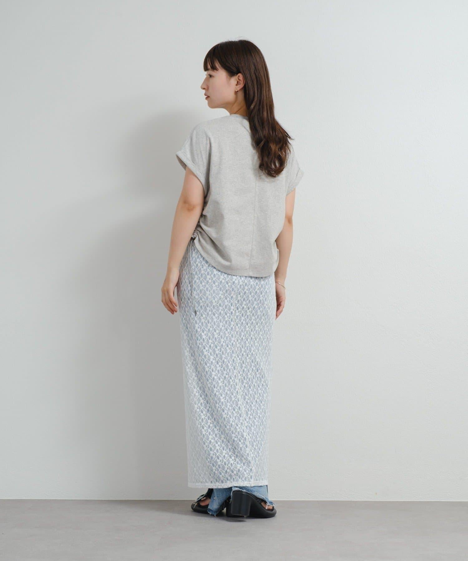 這款開衩長裙採用透明蕾絲面料,給人以清涼柔美的印象。