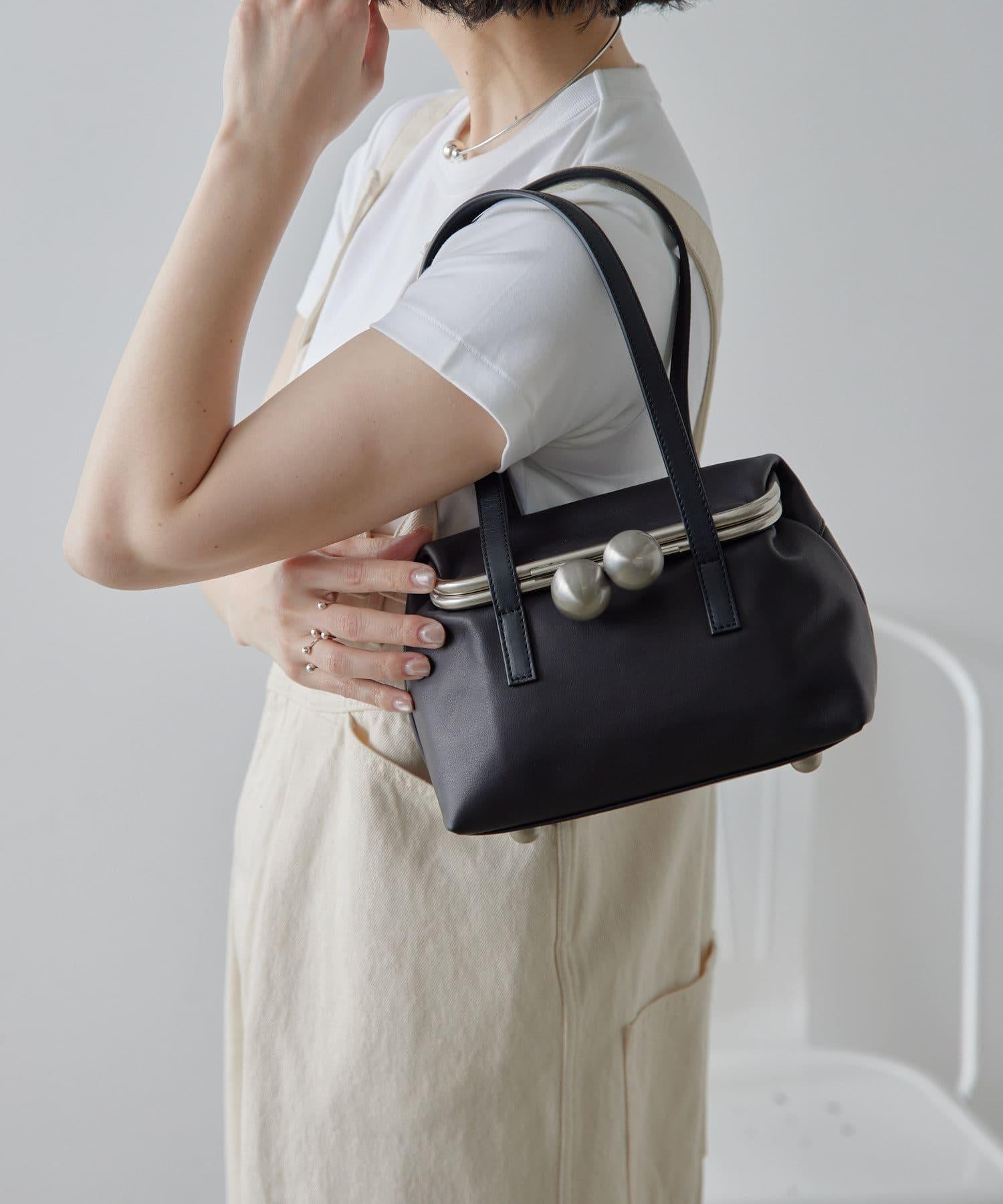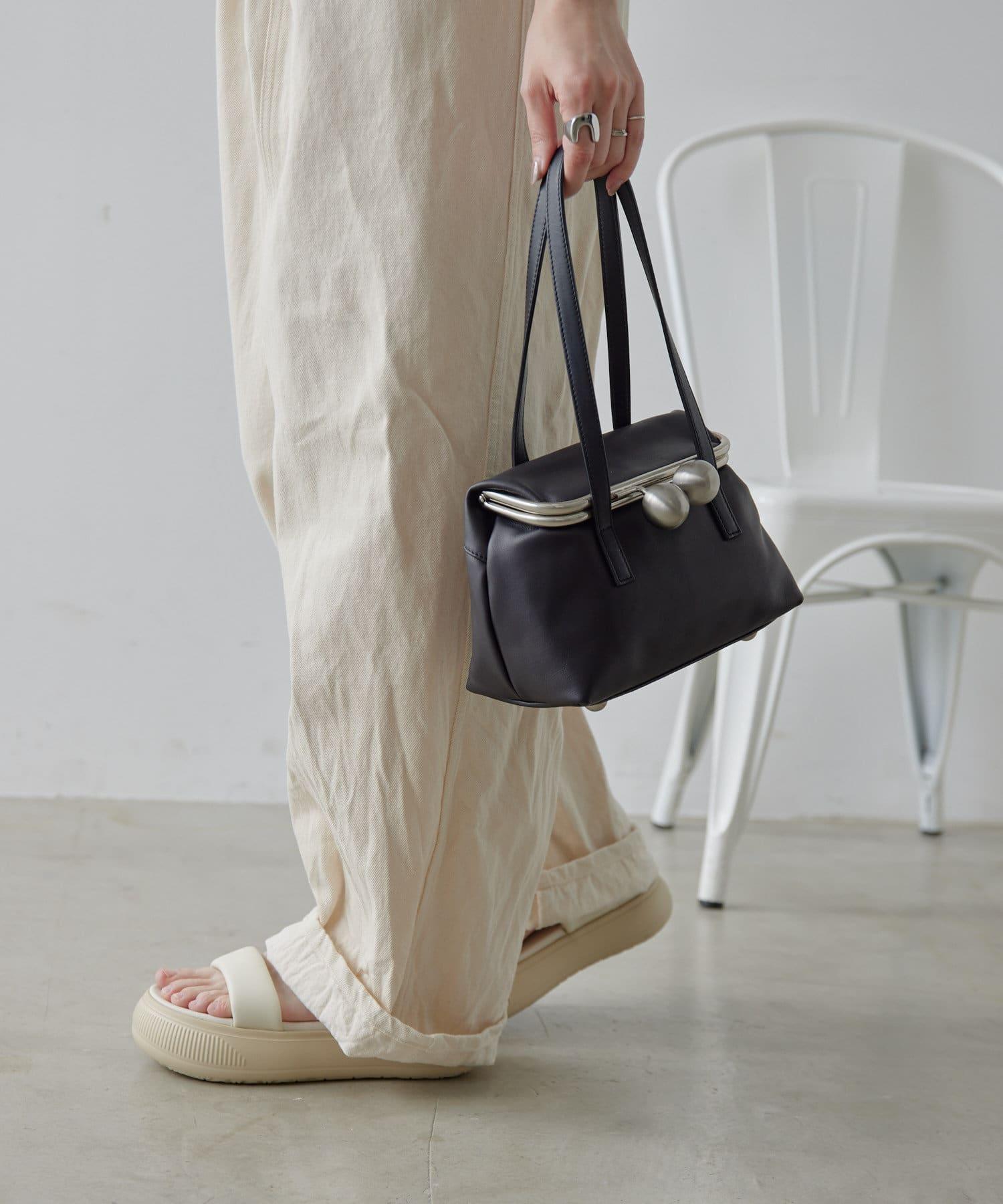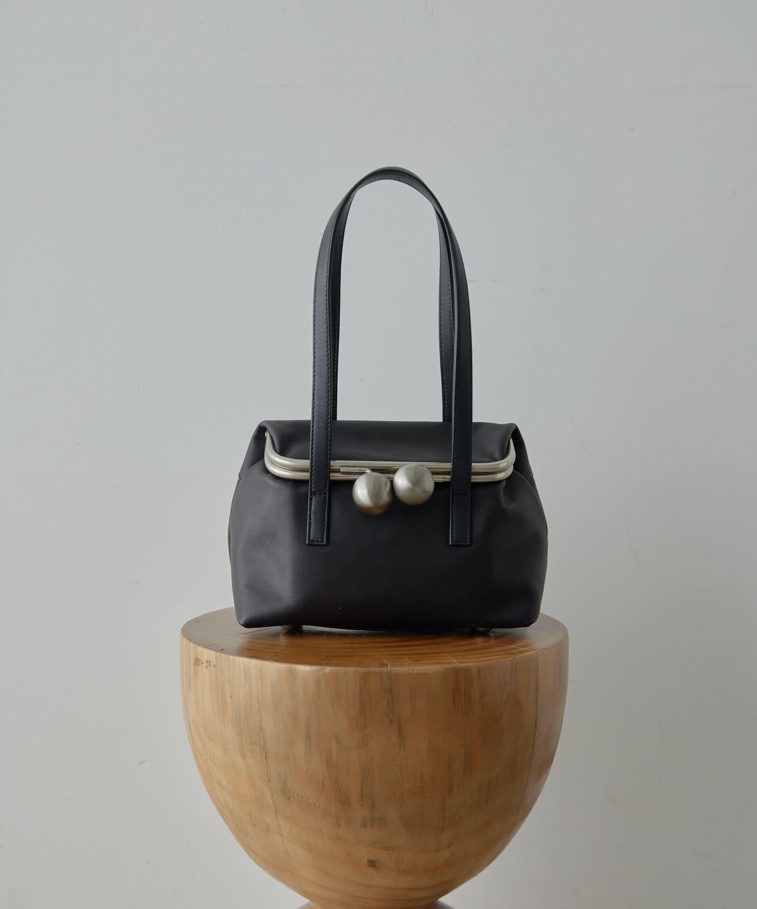 這款手提包外形方正,採用了 kawa-kawa 標誌性的 "大搭扣"。