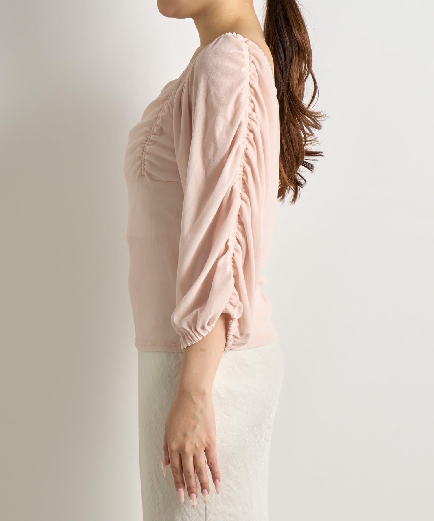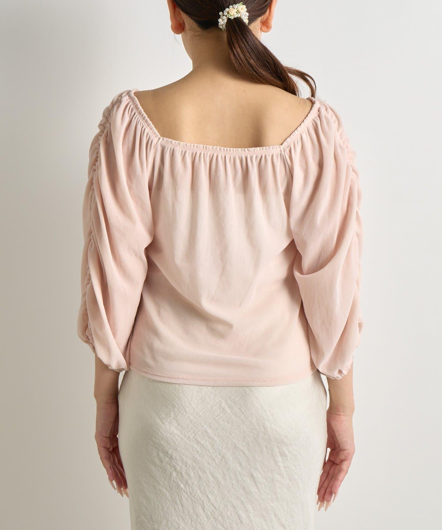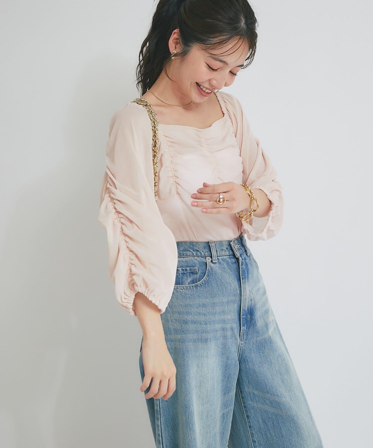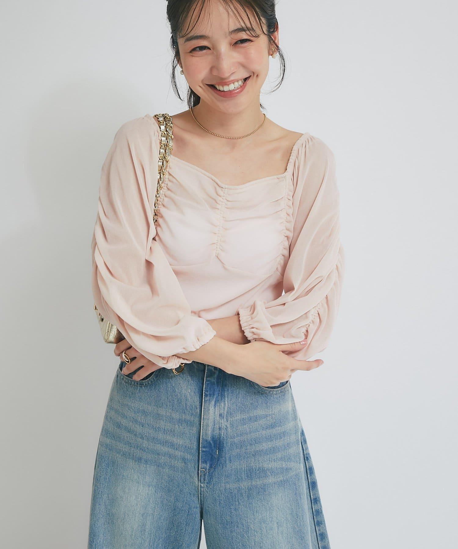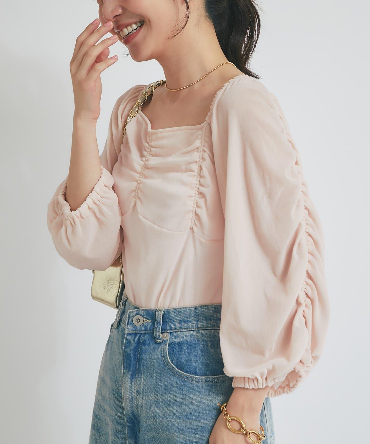 【KAZUMI監修】絨面荷葉邊聚攏袖T恤