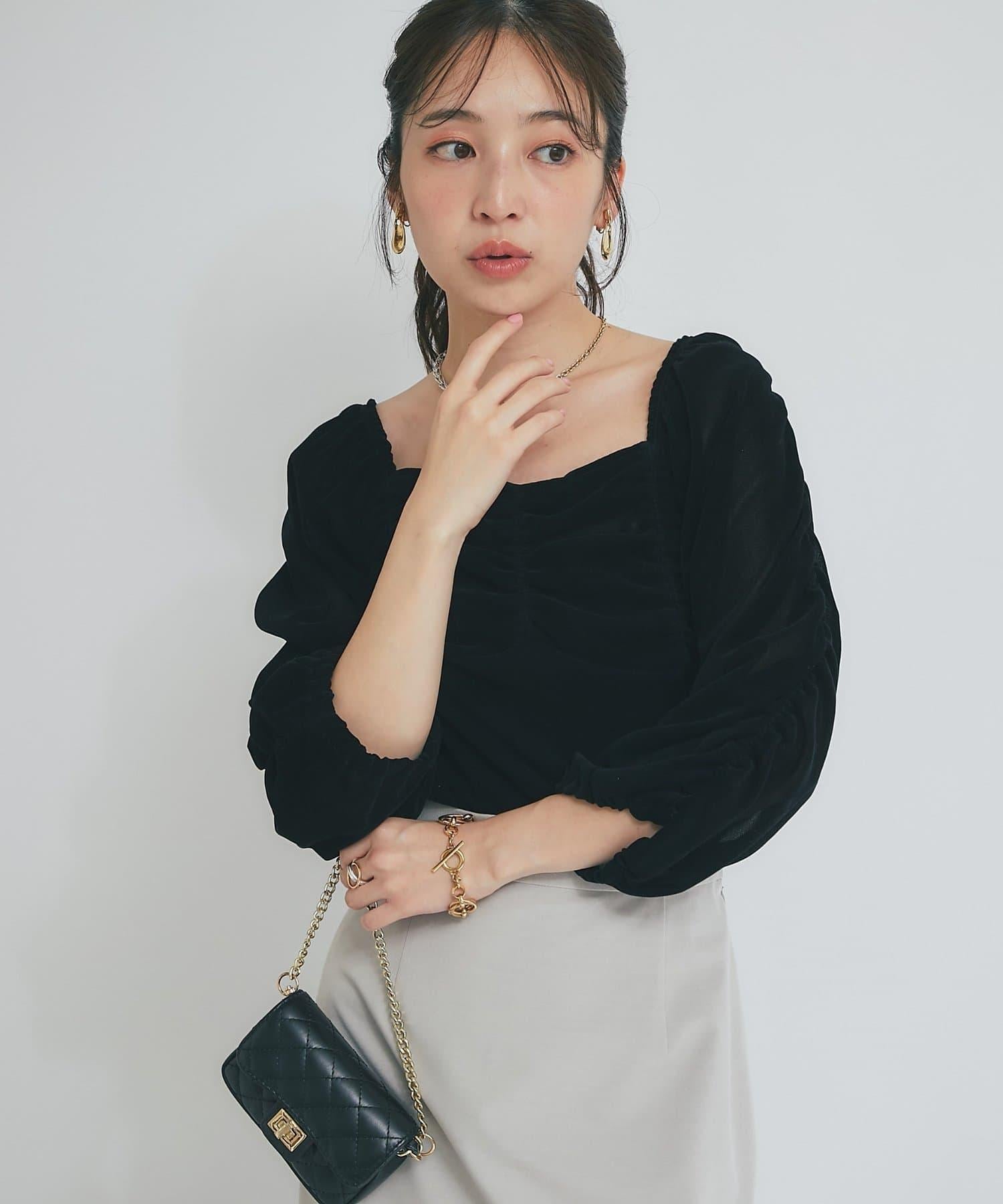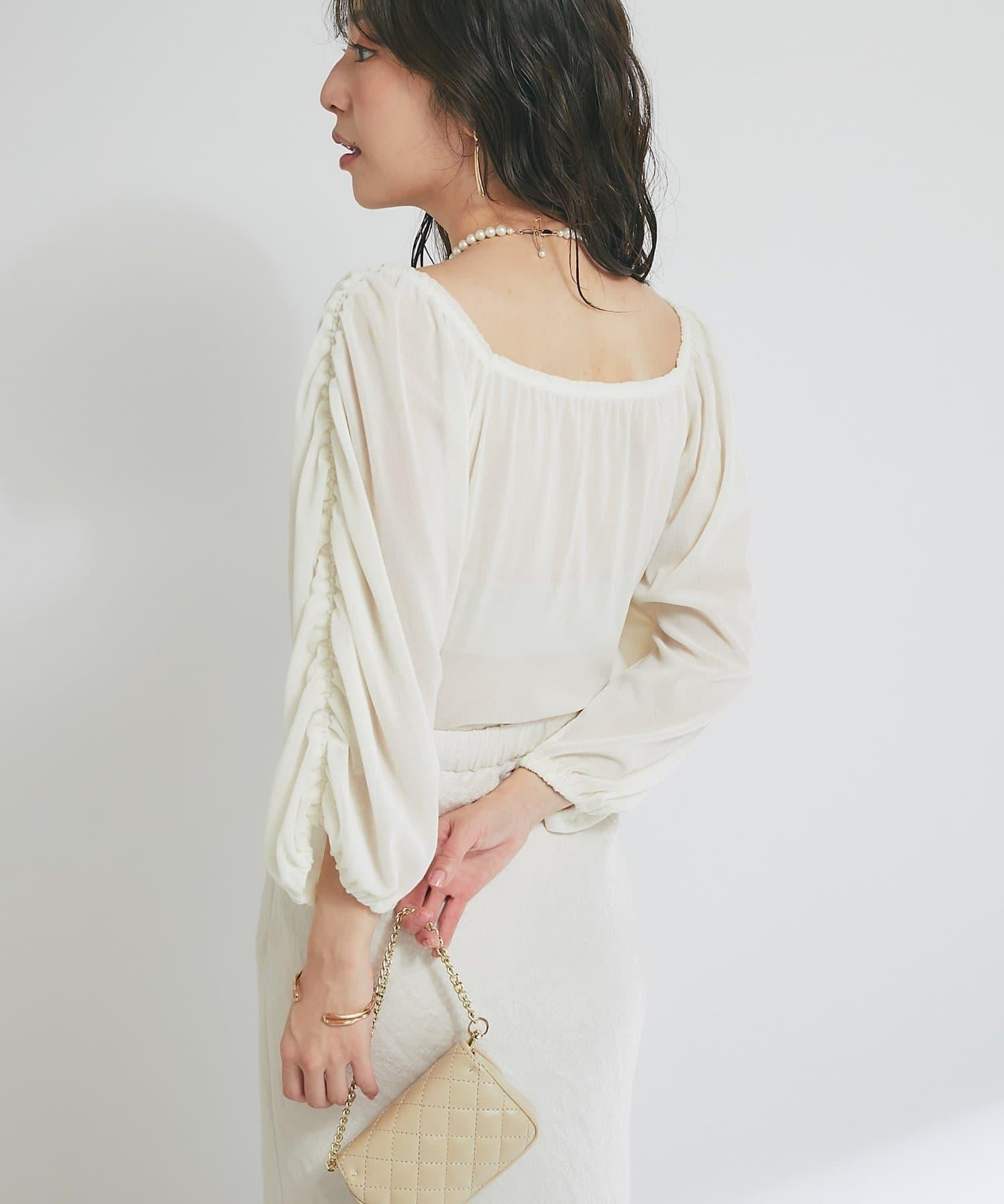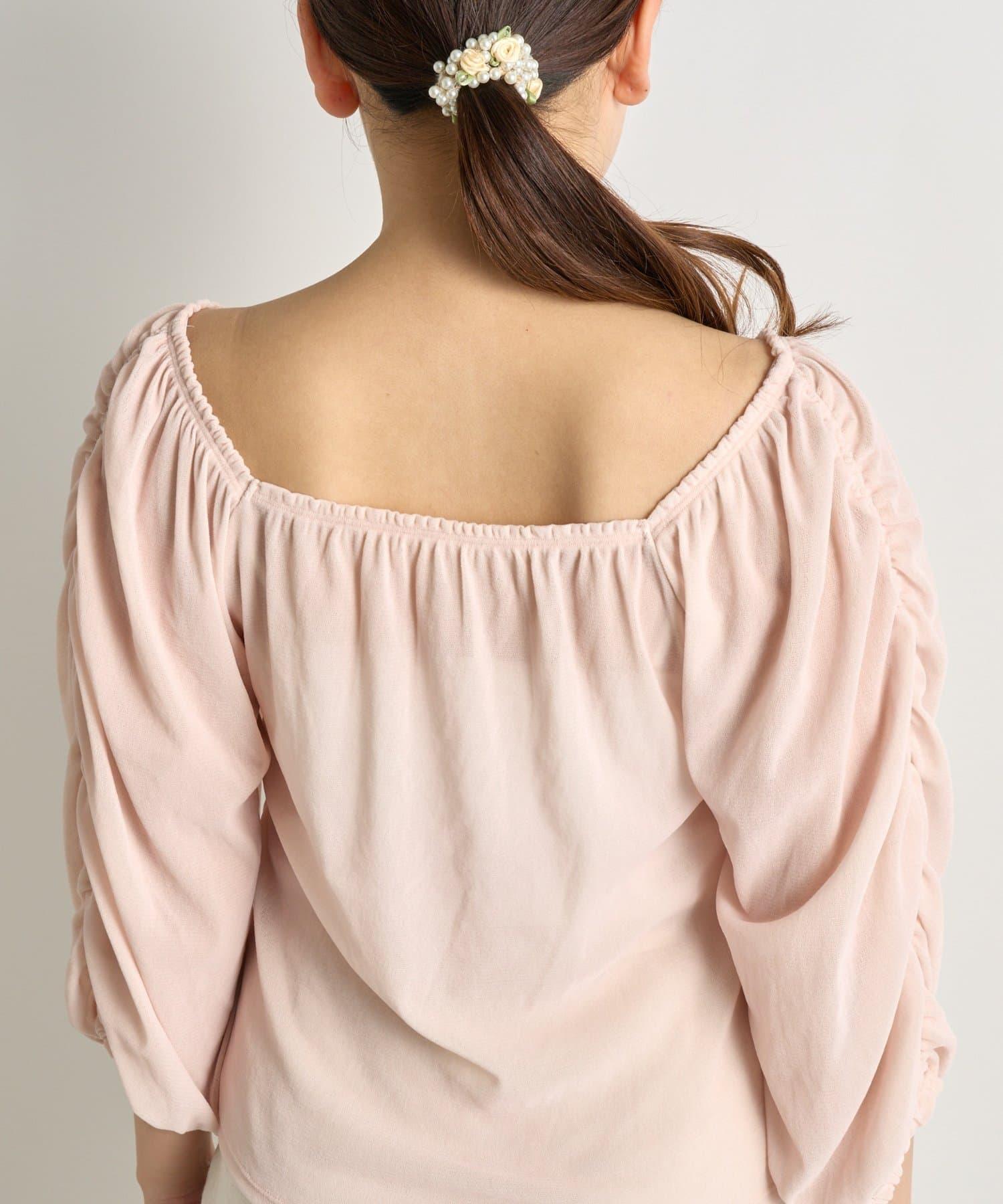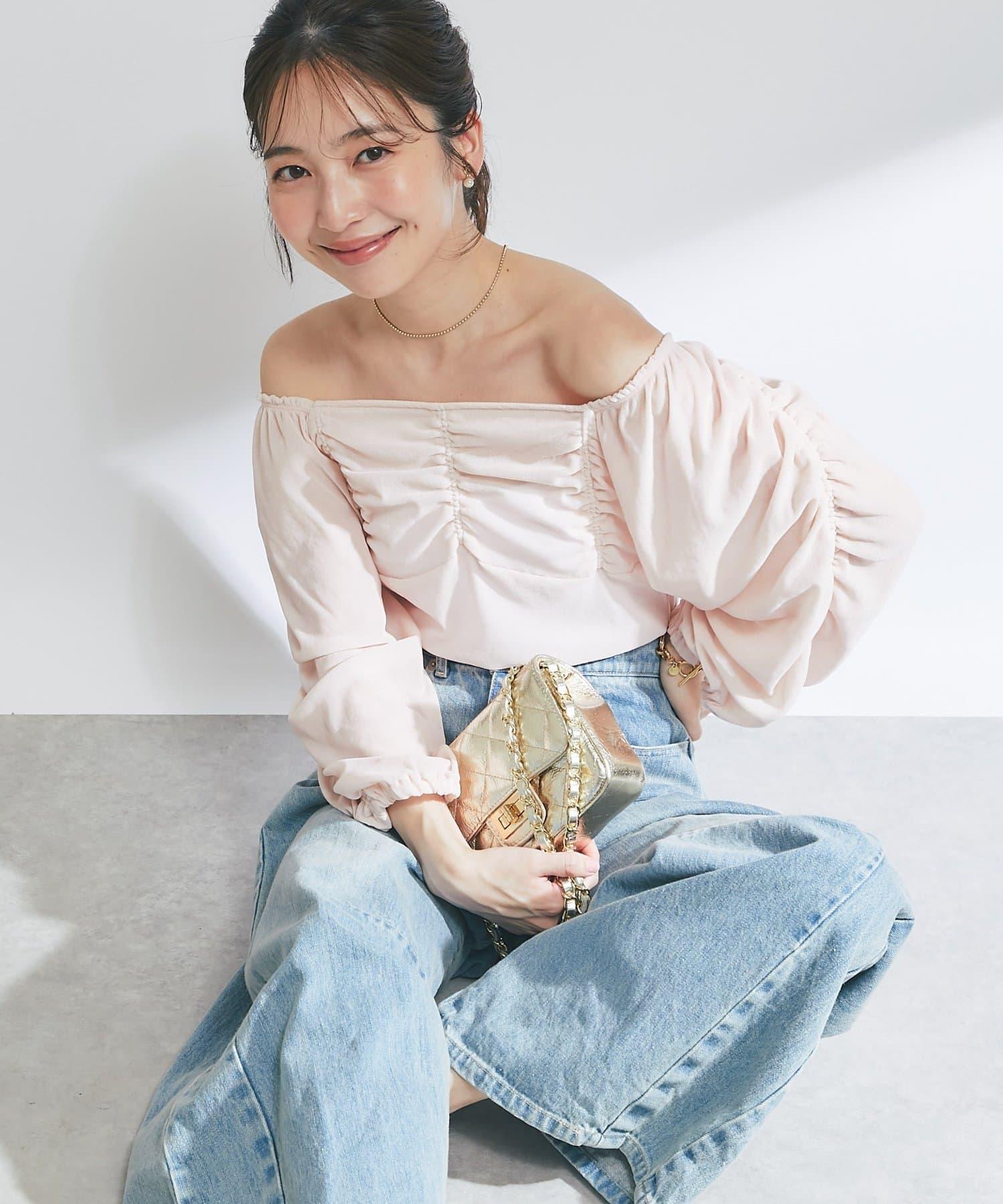 【KAZUMI監修】絨面荷葉邊聚攏袖T恤