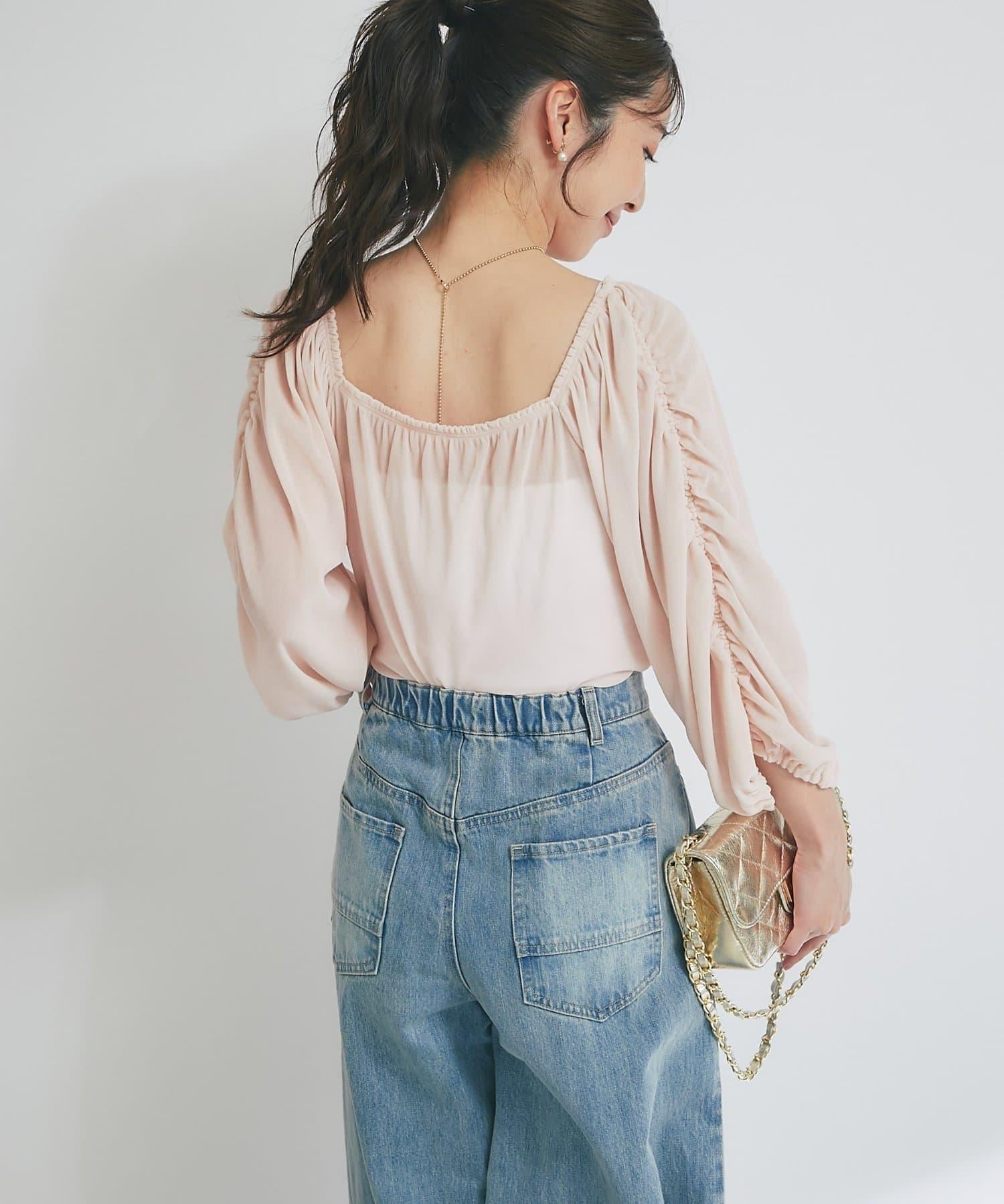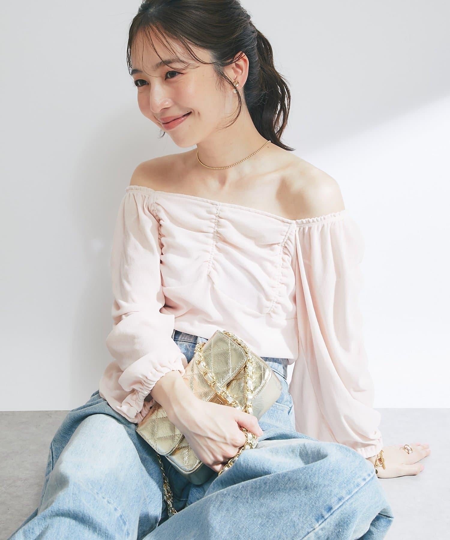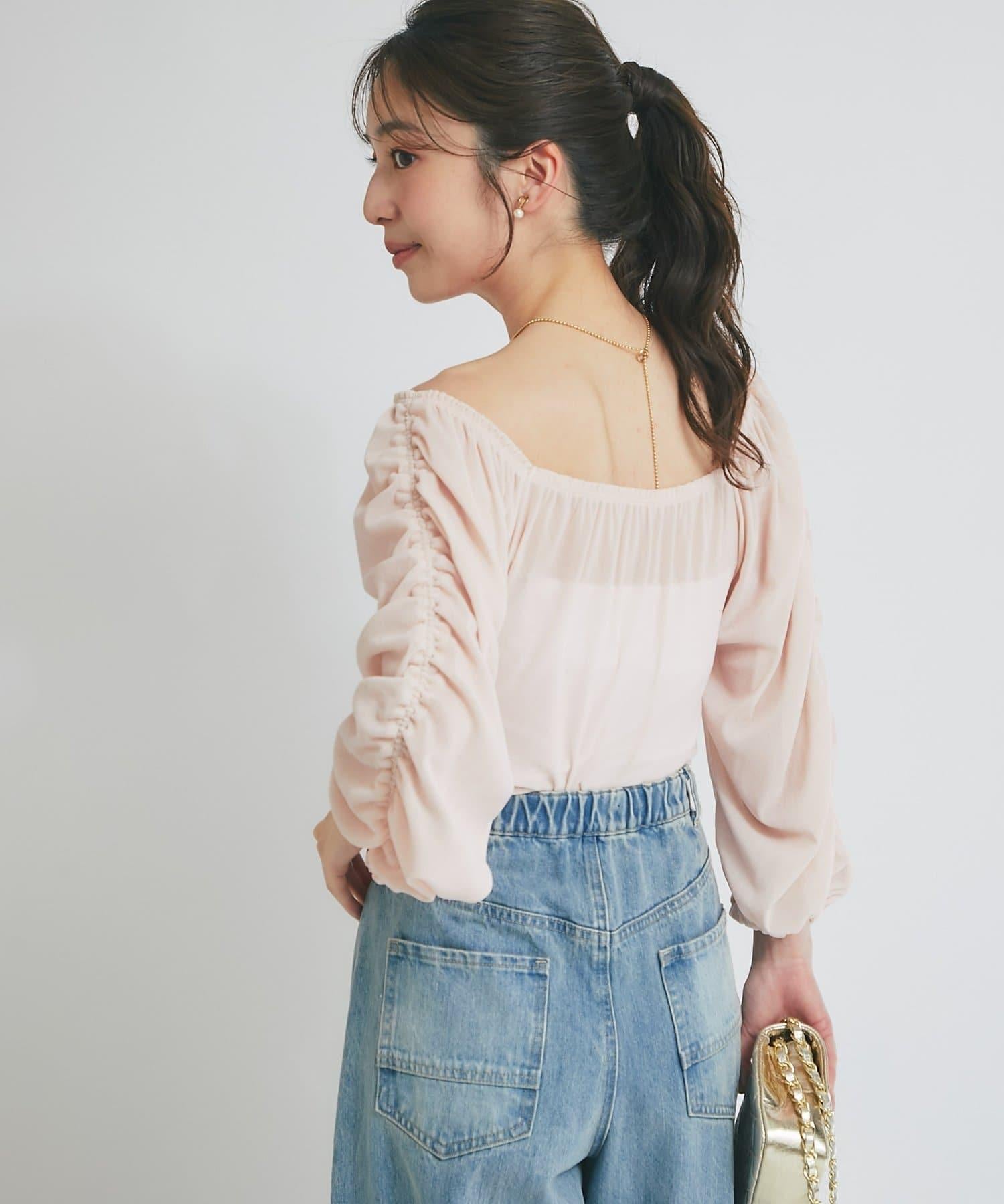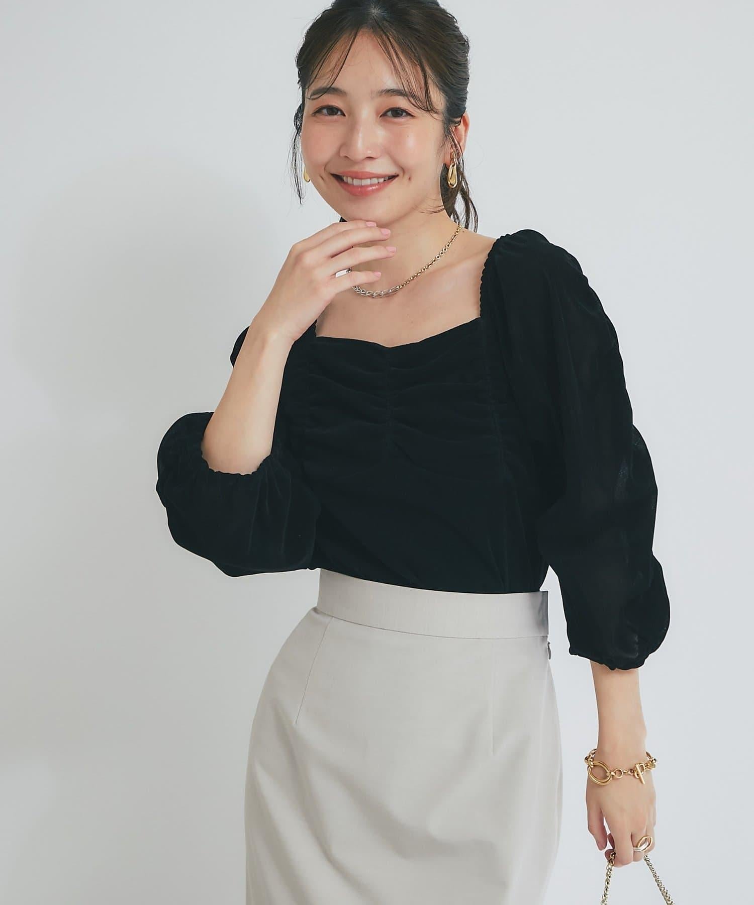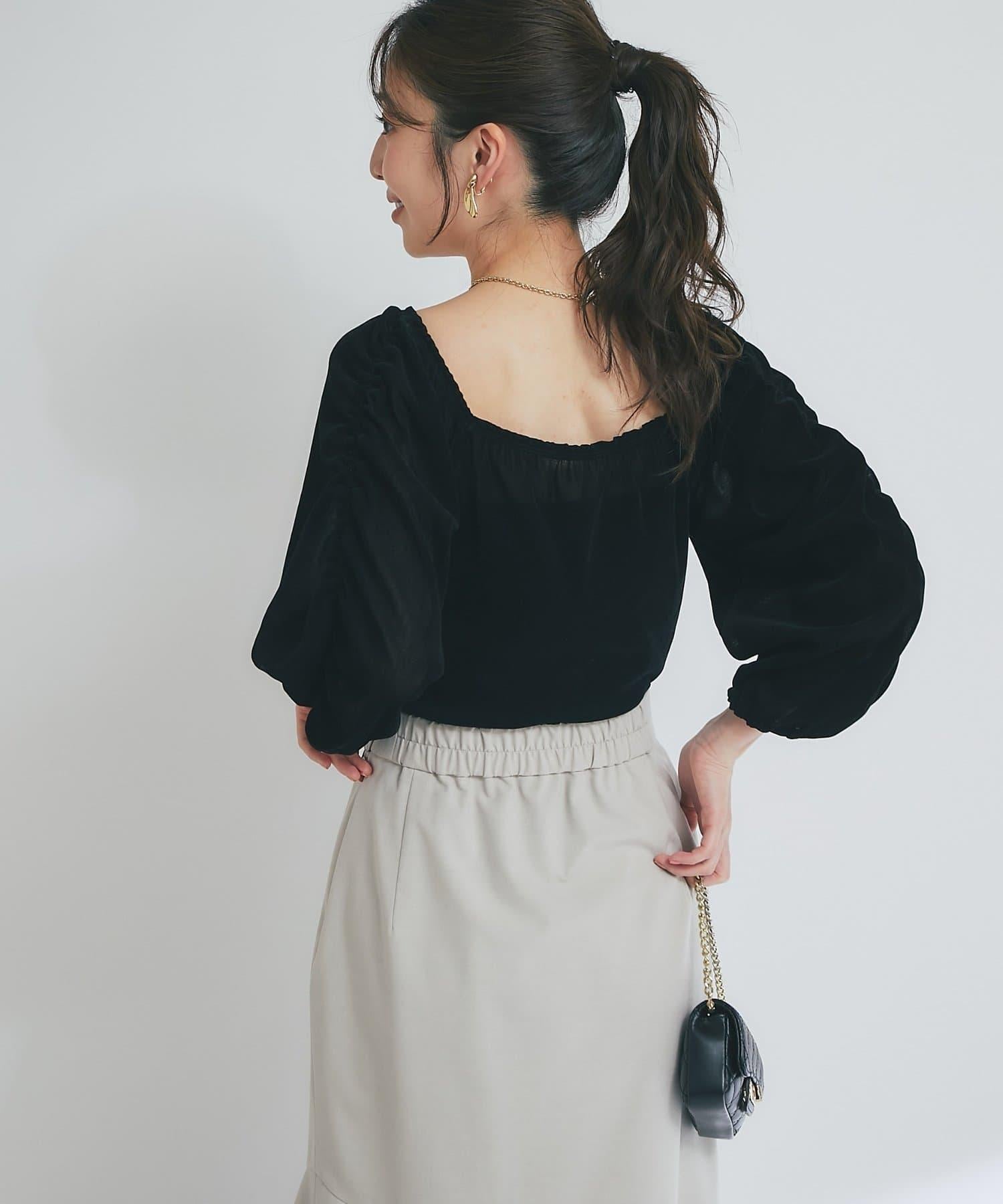 【KAZUMI監修】絨面荷葉邊聚攏袖T恤