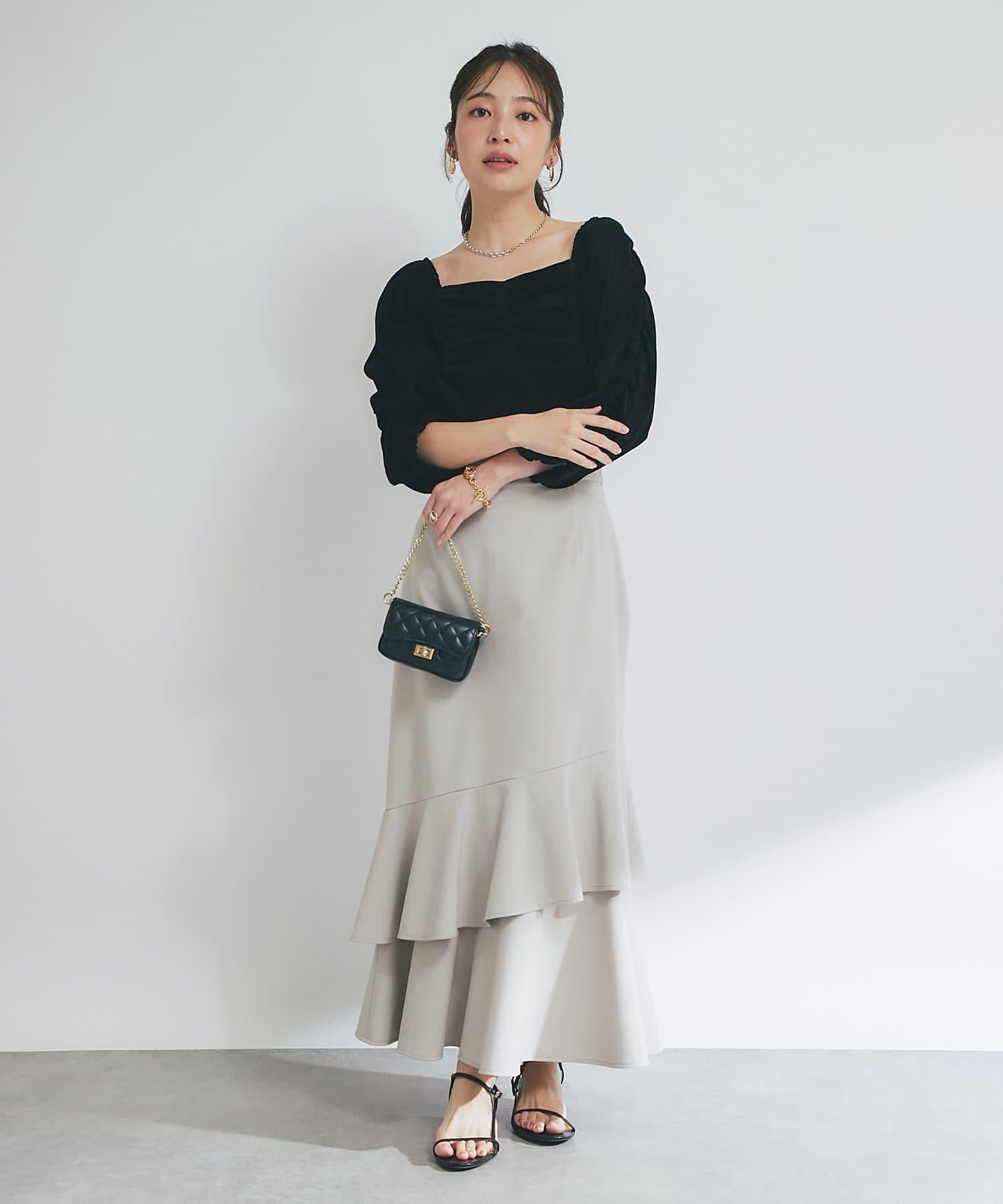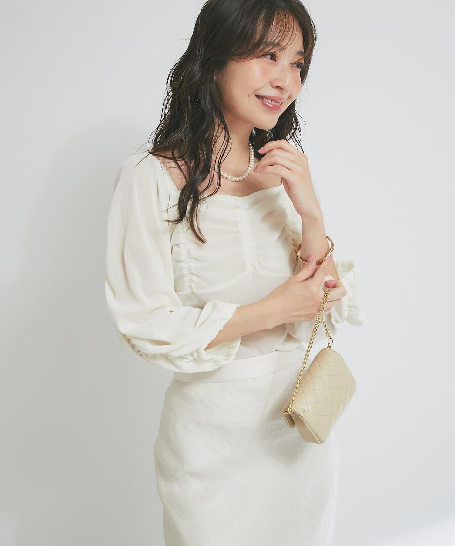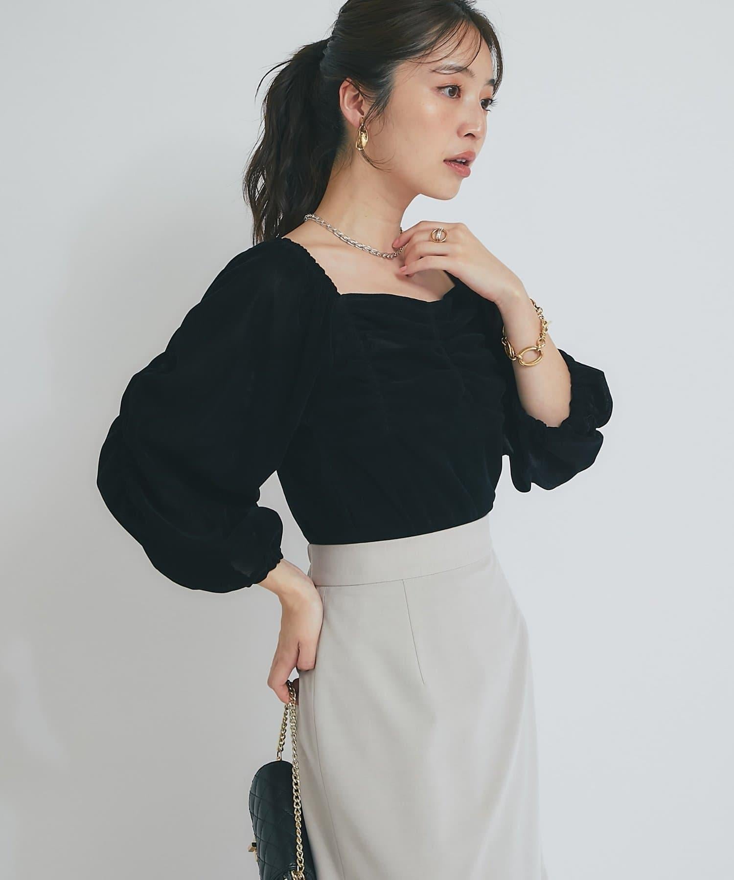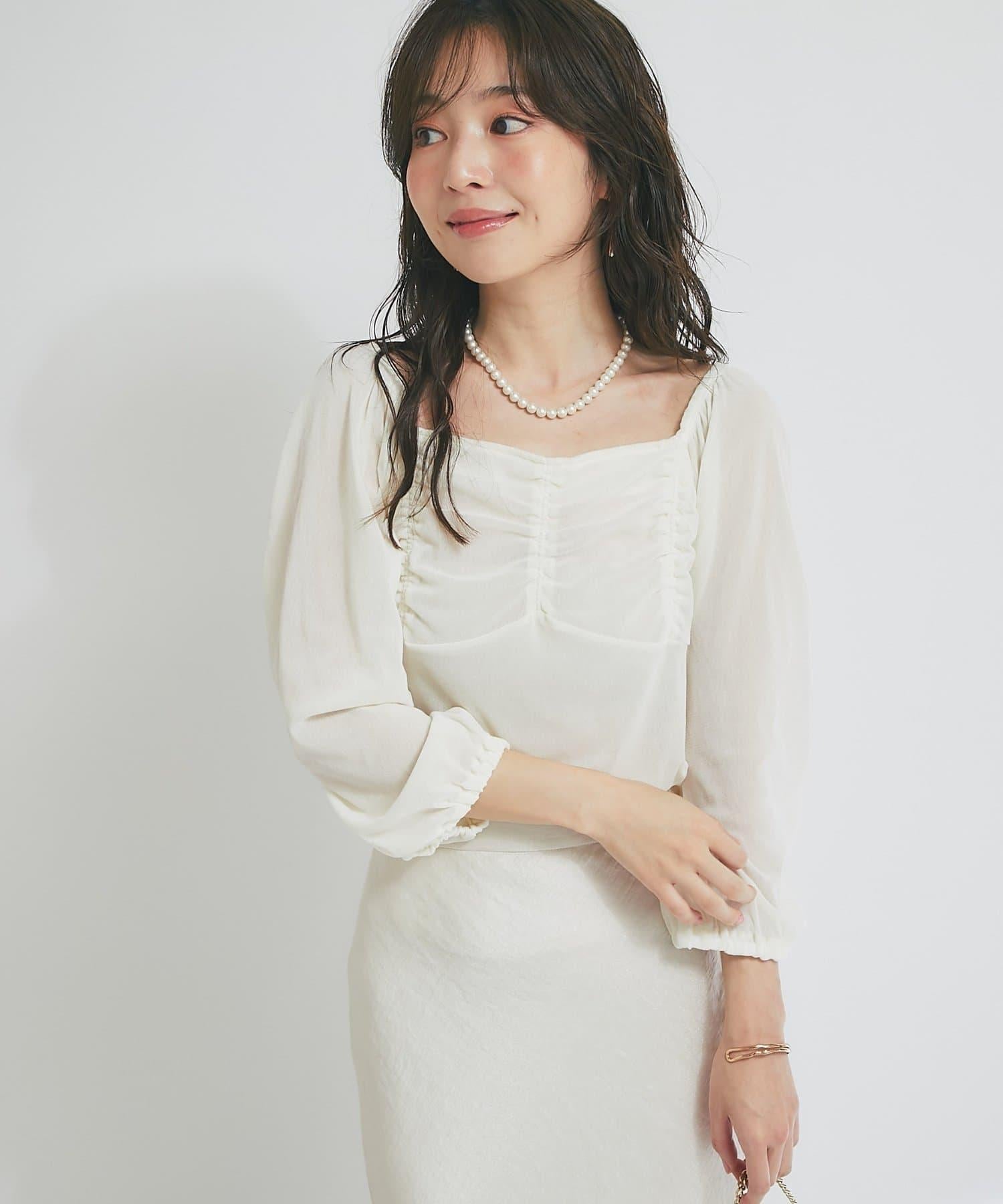方形領口與飾邊細節給人以乾淨利落的印象,提升女性魅力。