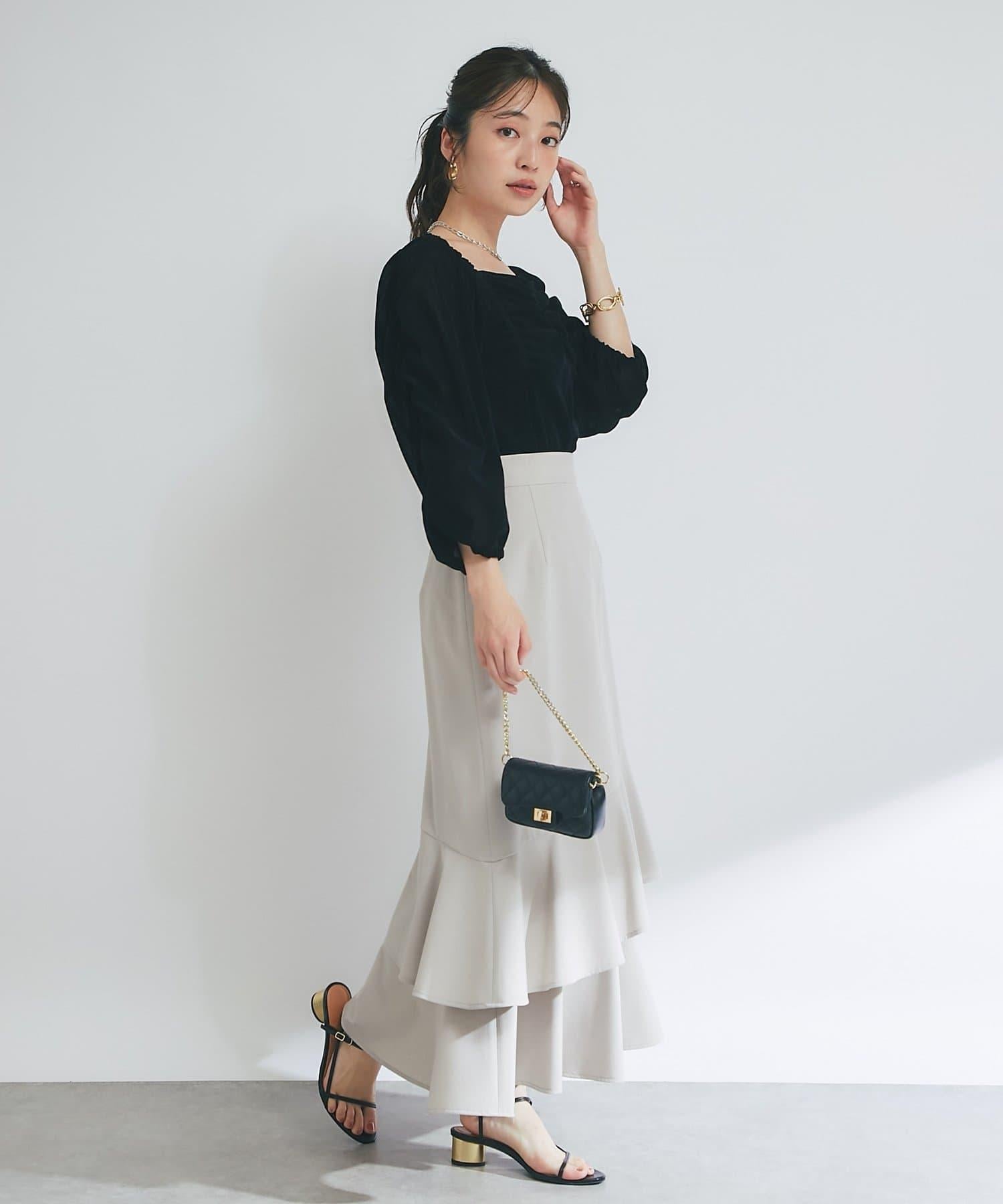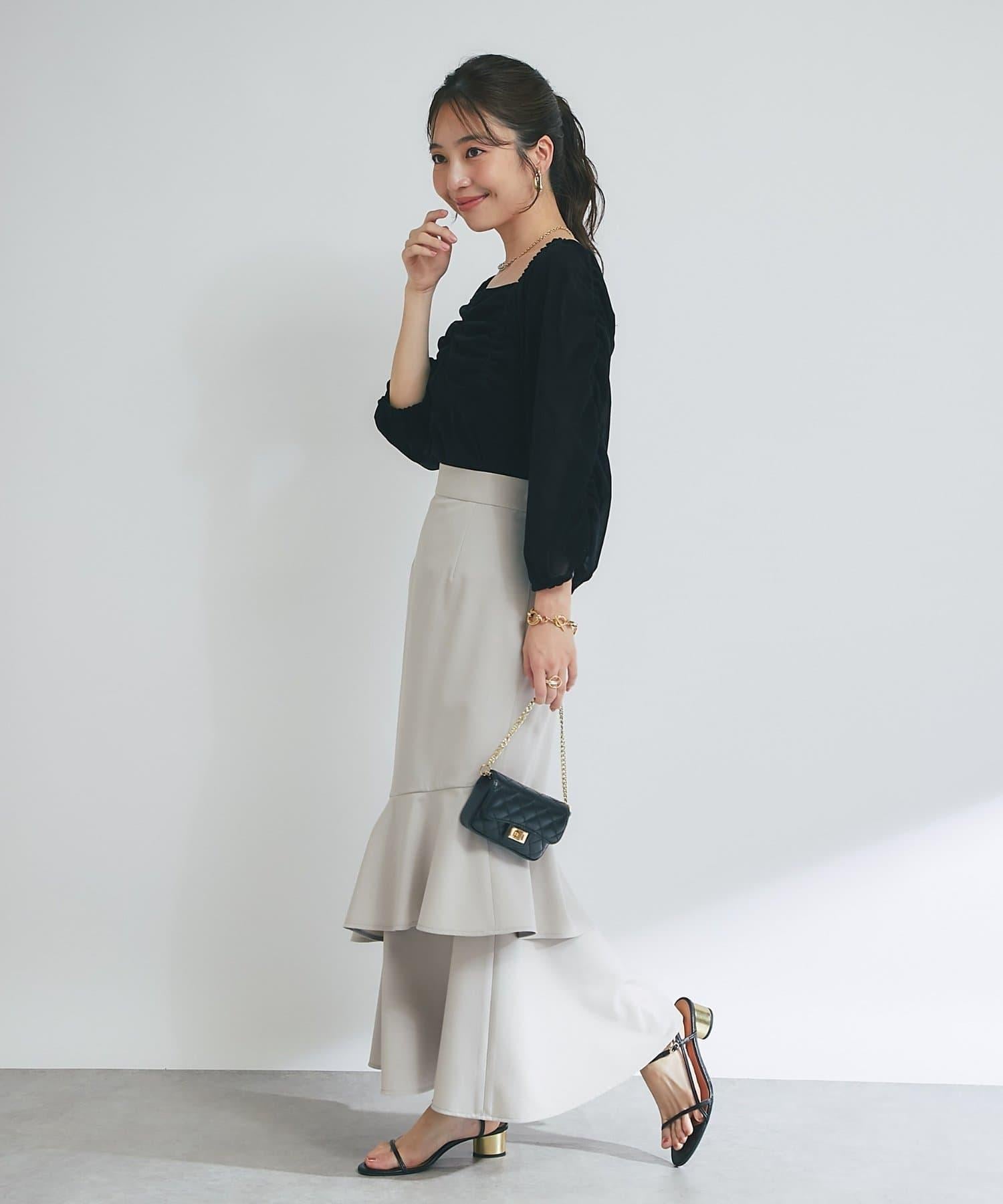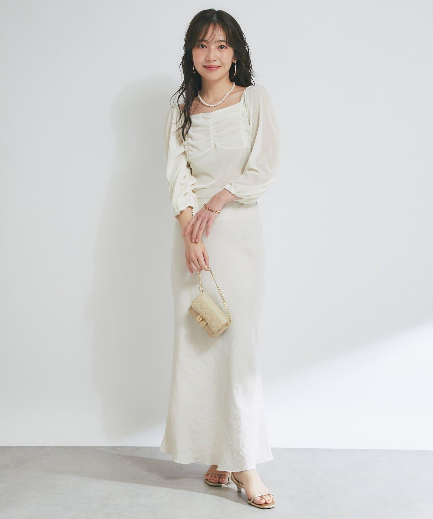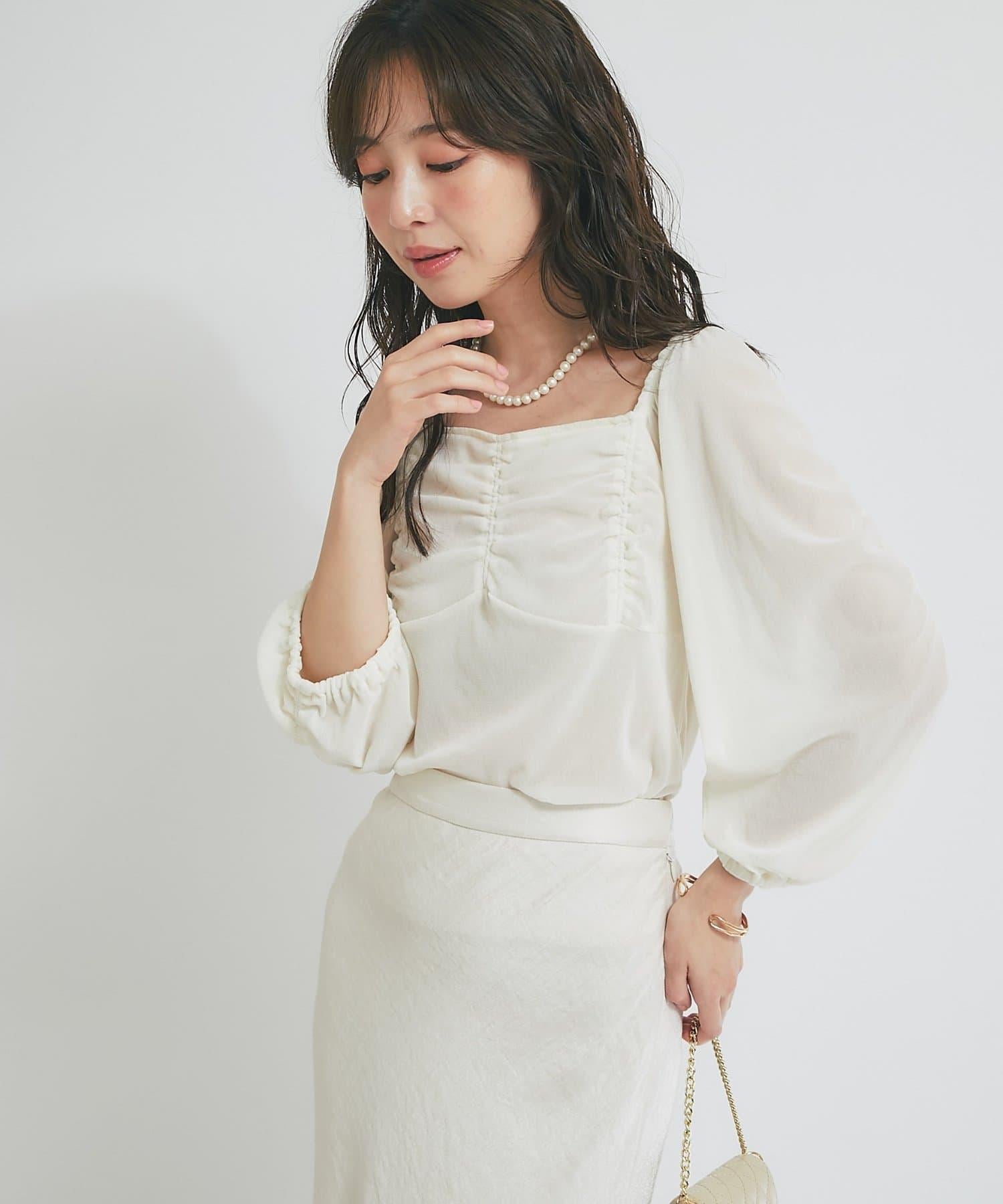 方形領口與飾邊細節給人以乾淨利落的印象,提升女性魅力。