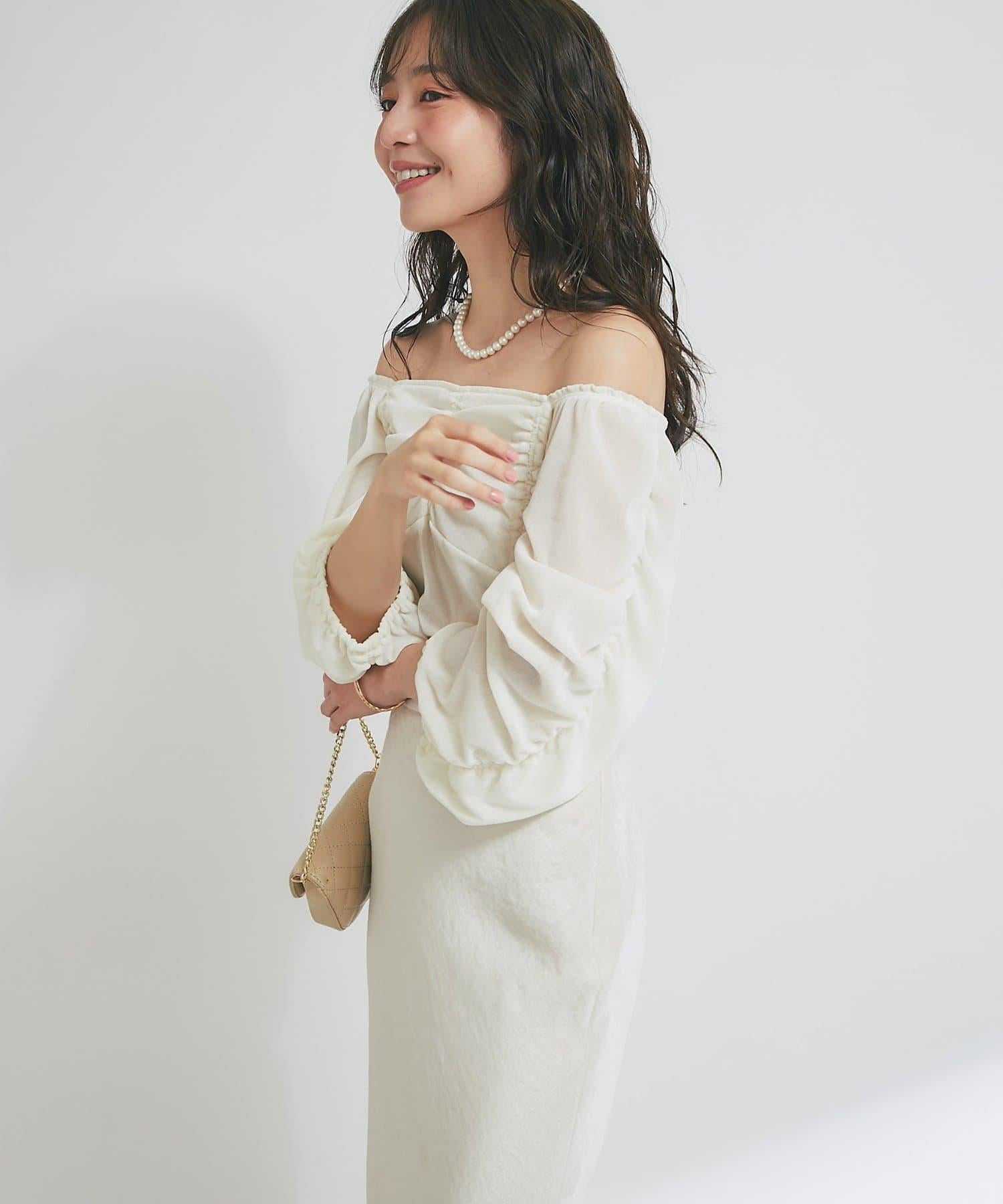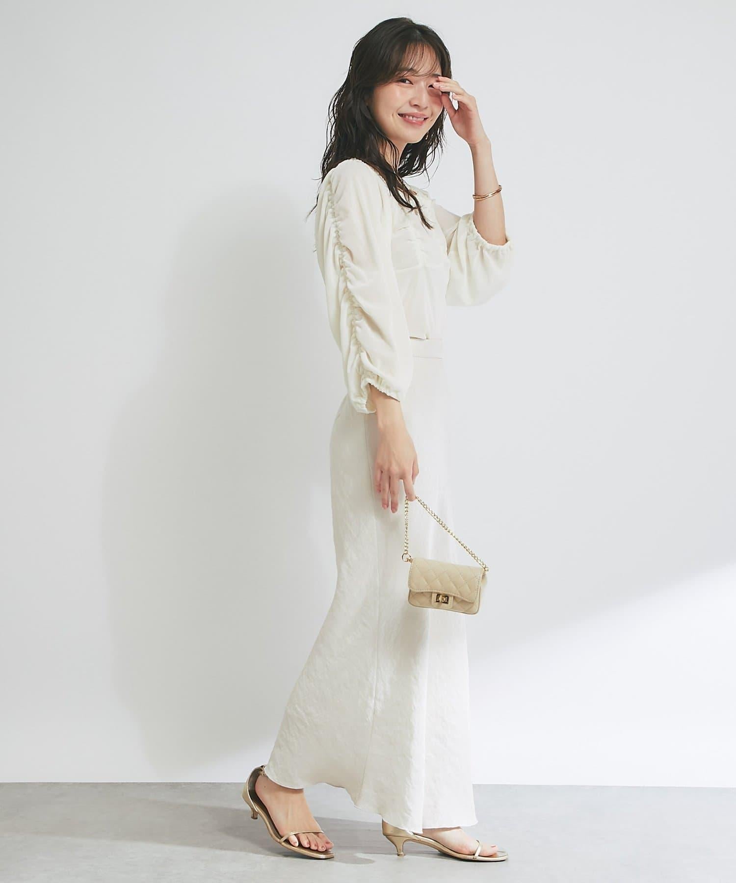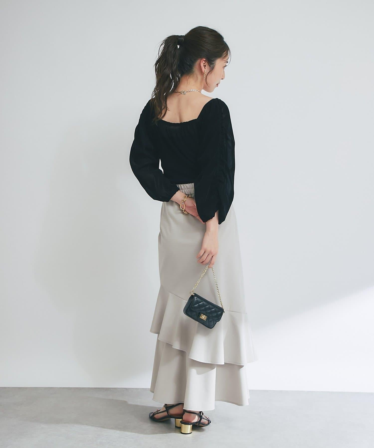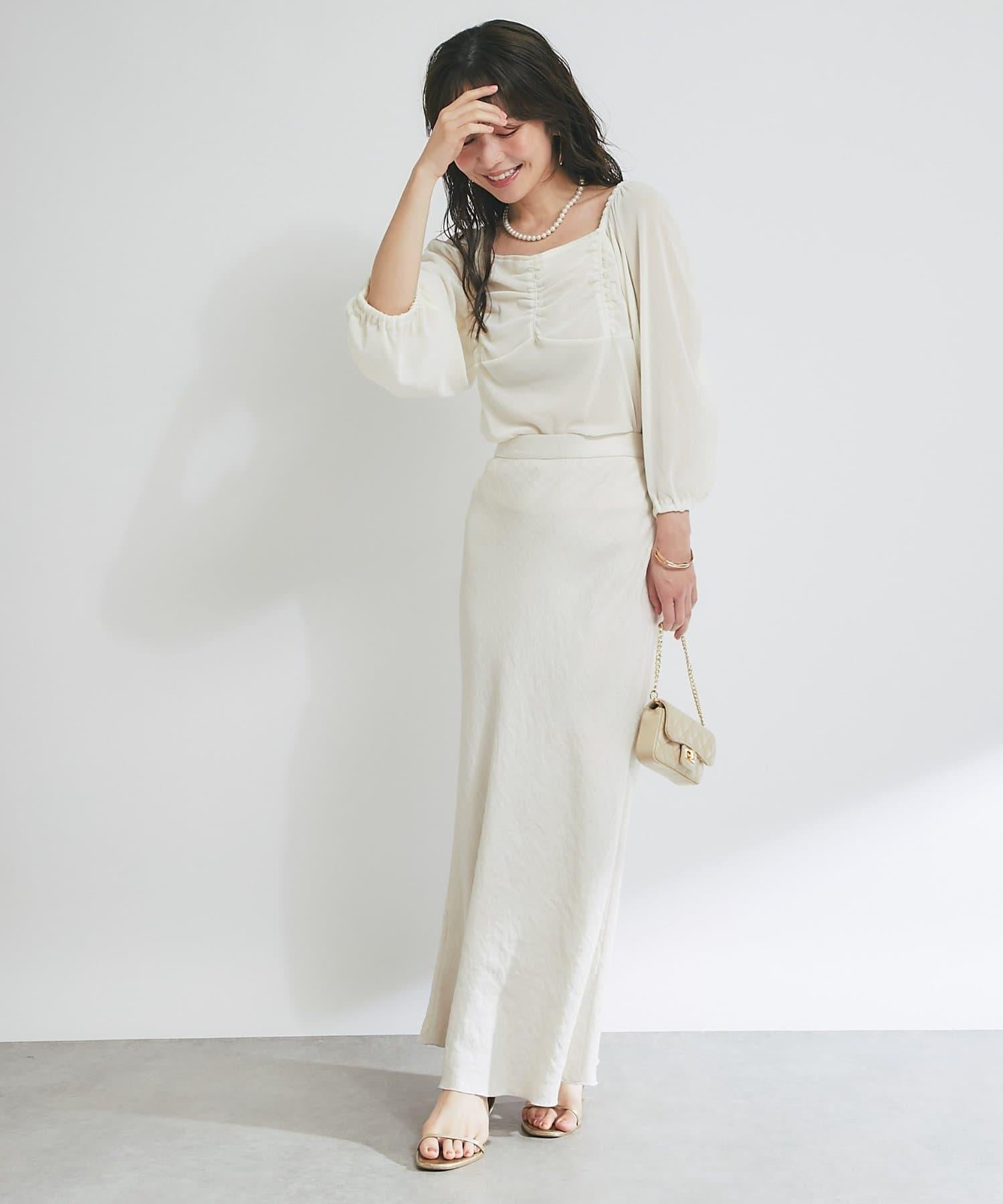 方形領口與飾邊細節給人以乾淨利落的印象,提升女性魅力。