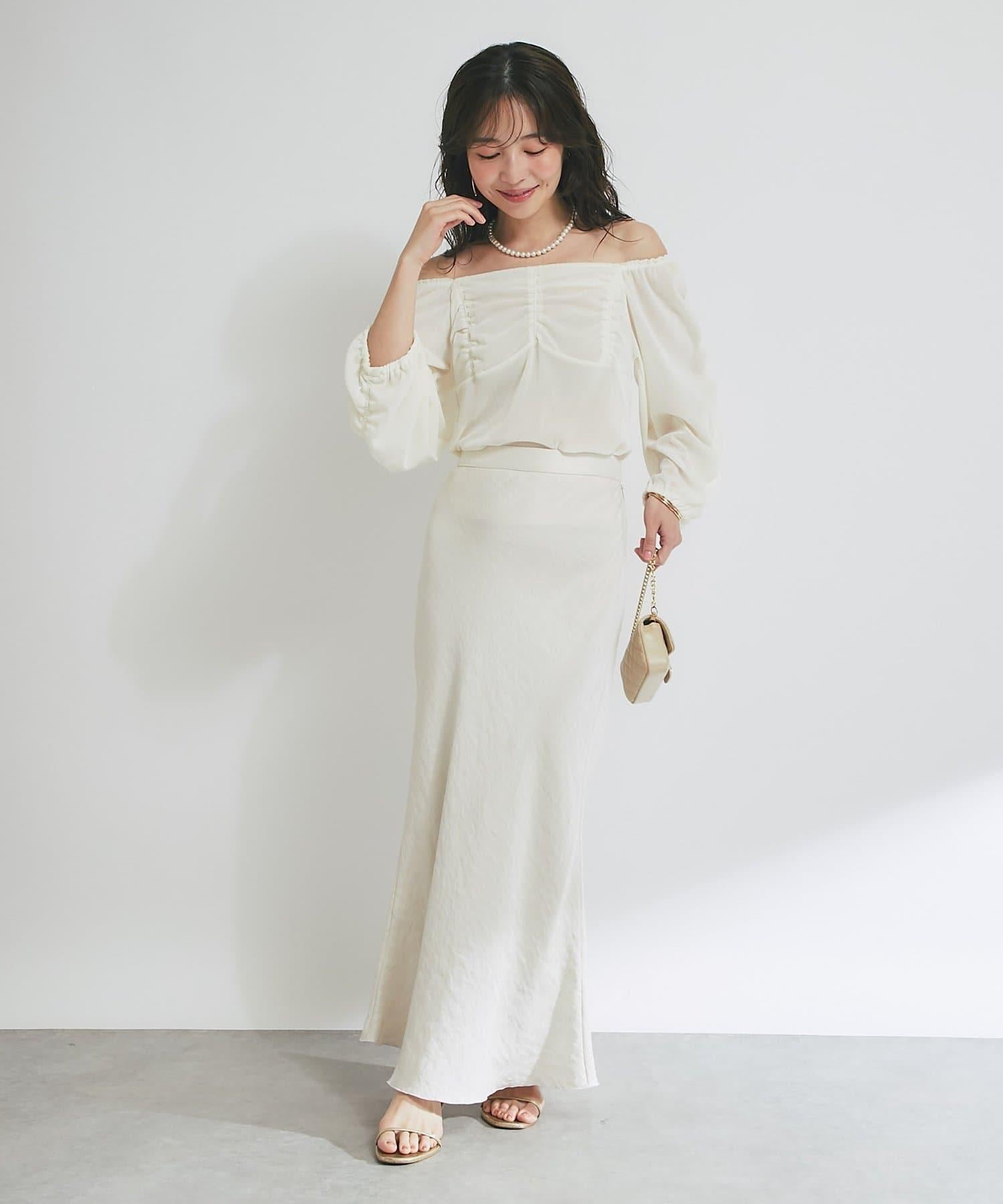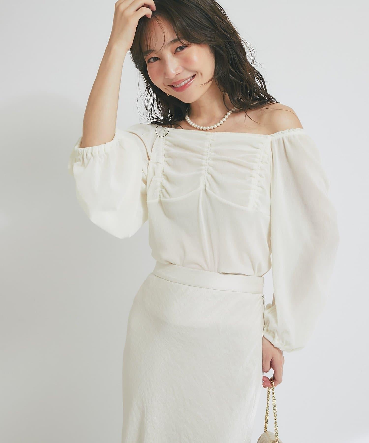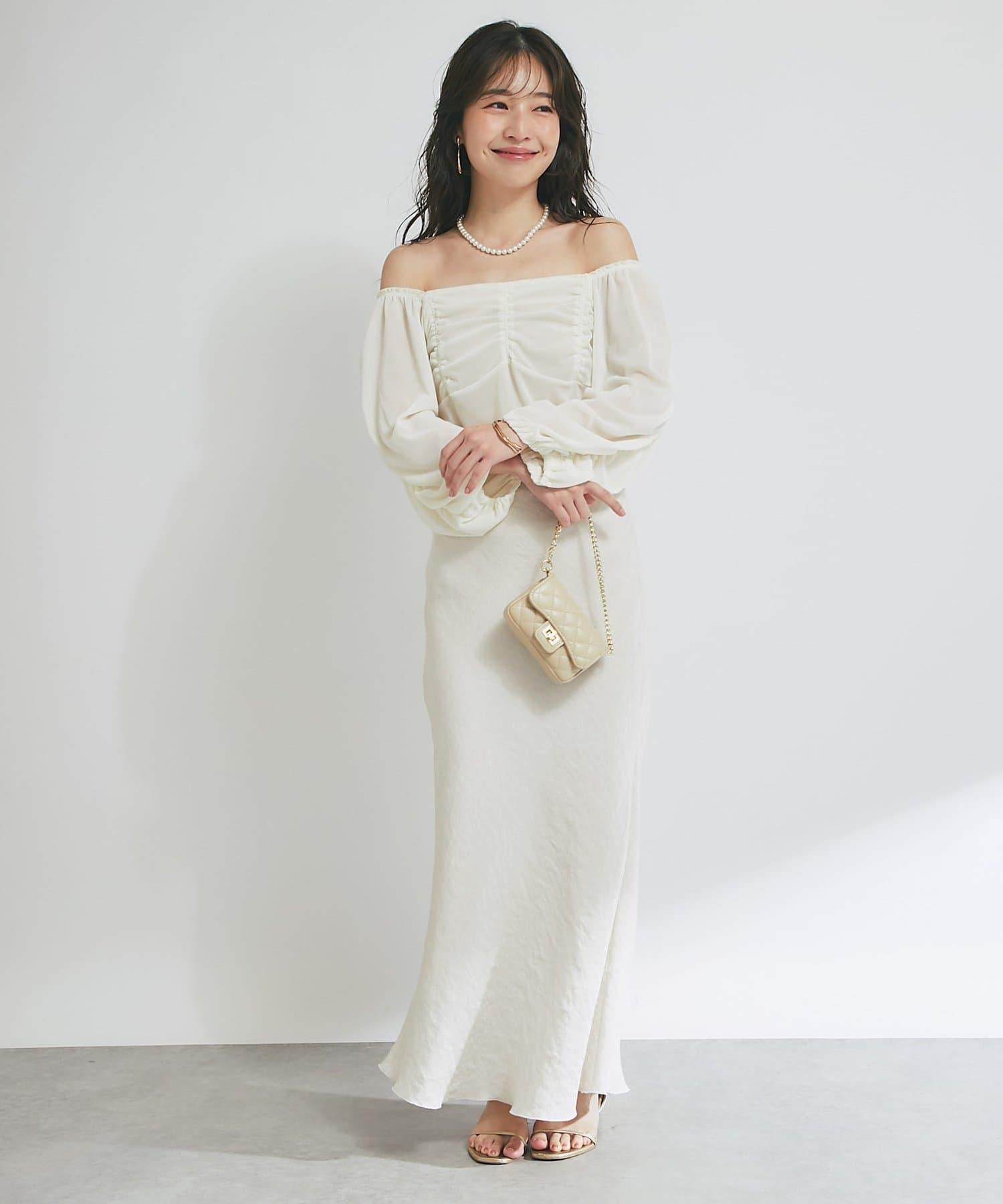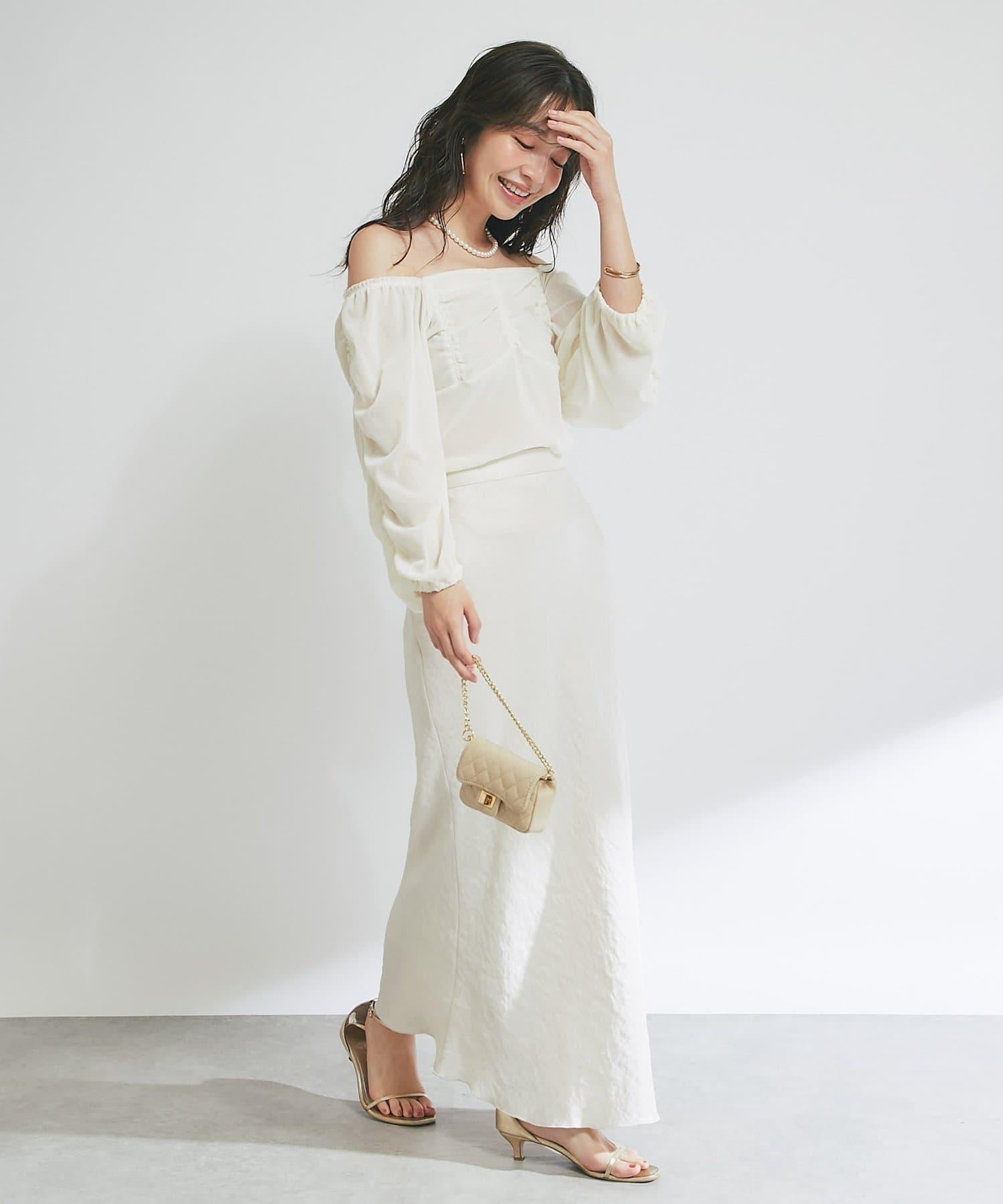 方形領口與飾邊細節給人以乾淨利落的印象,提升女性魅力。