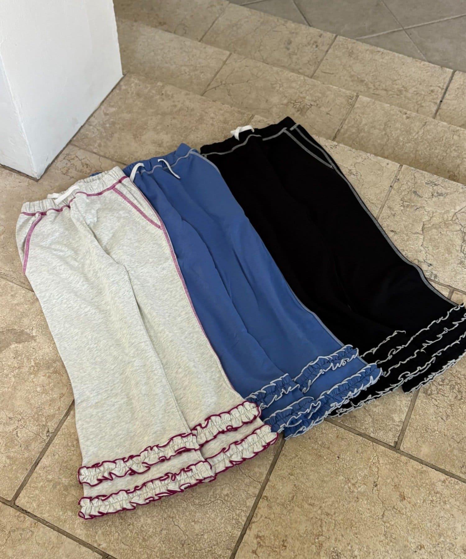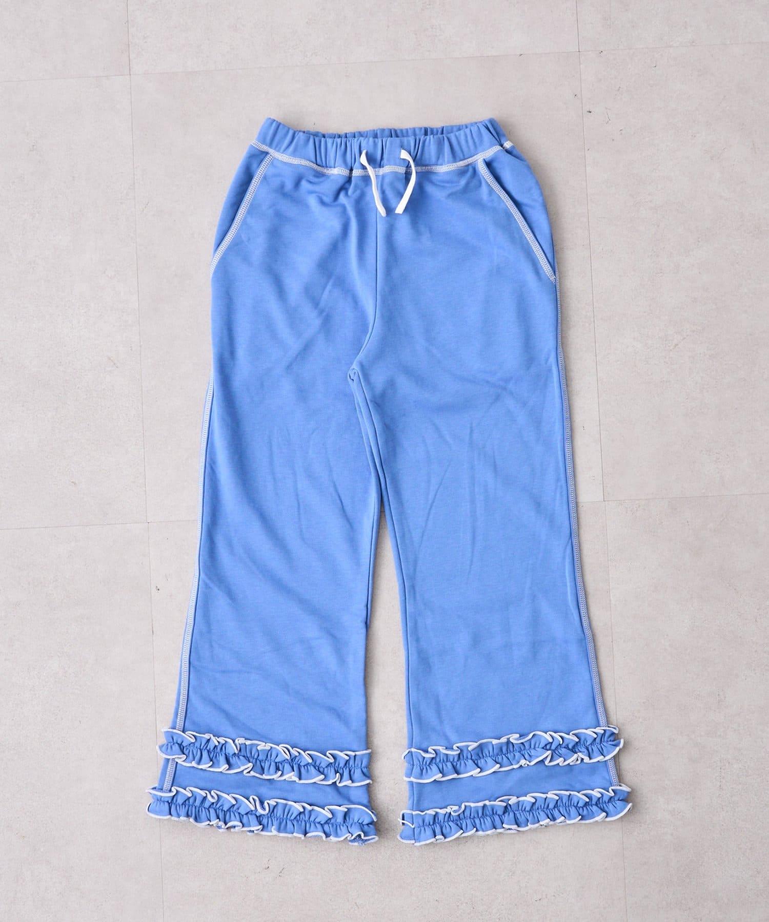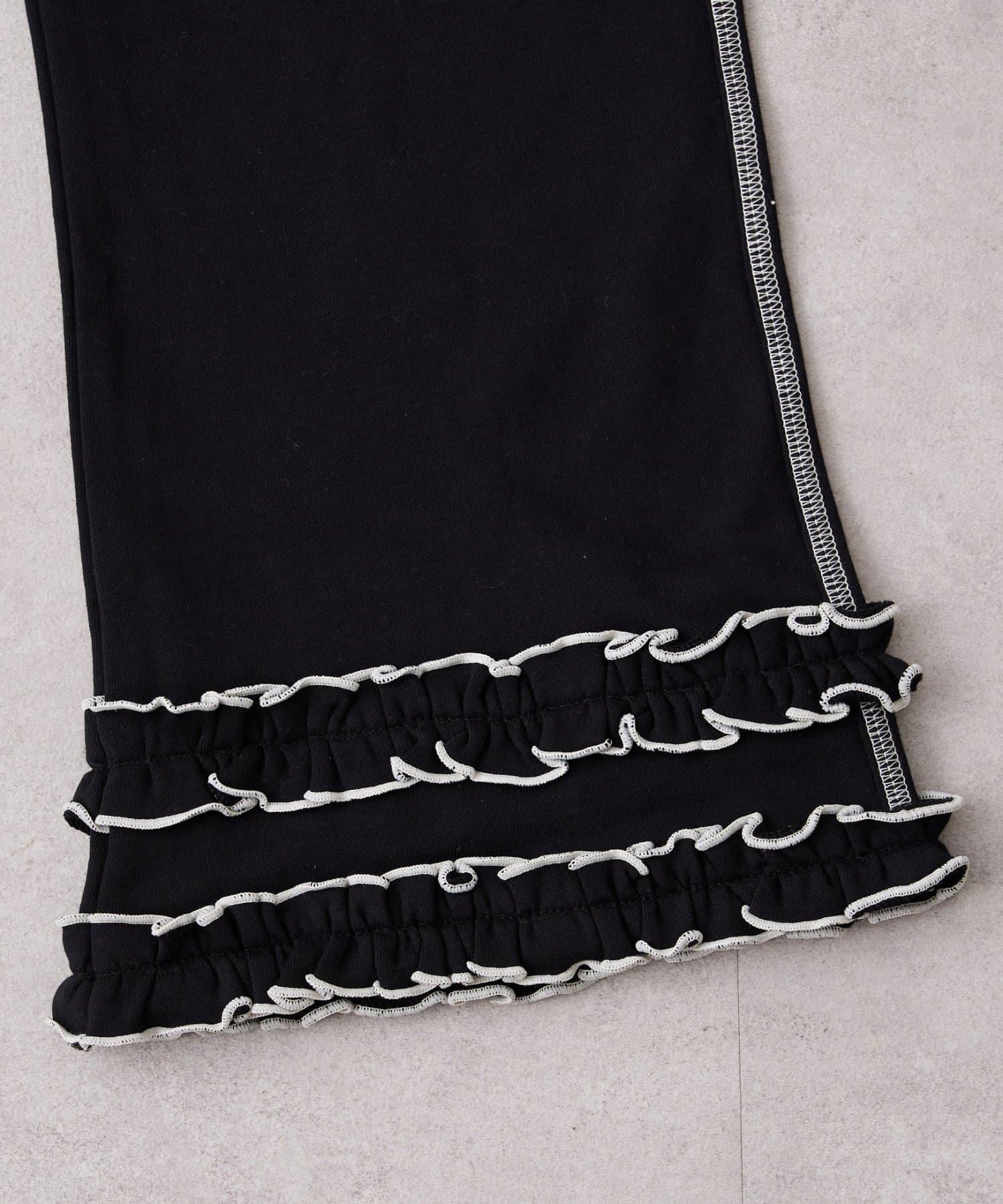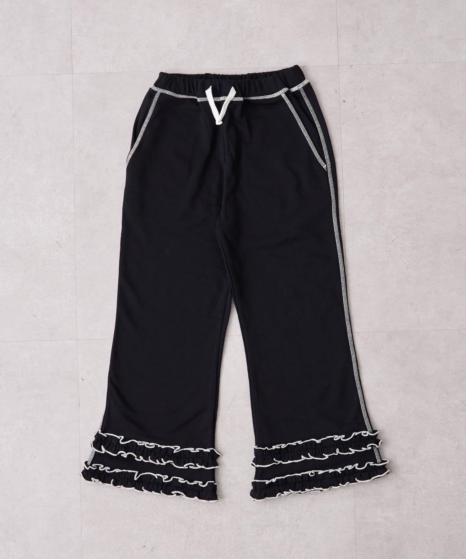 【KIDS】下襬荷葉邊拼色縫線衛褲