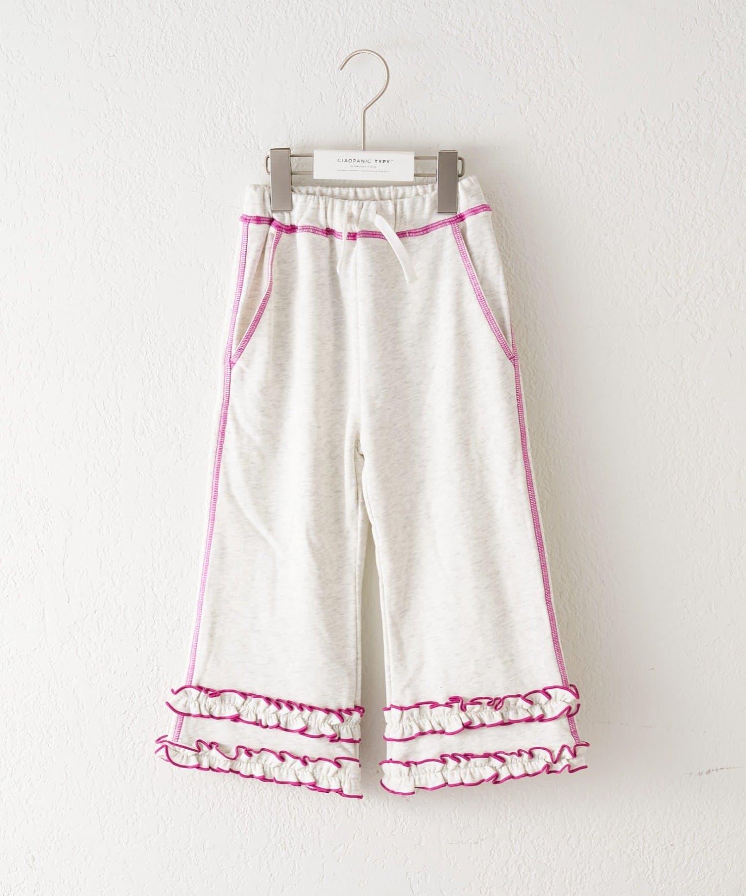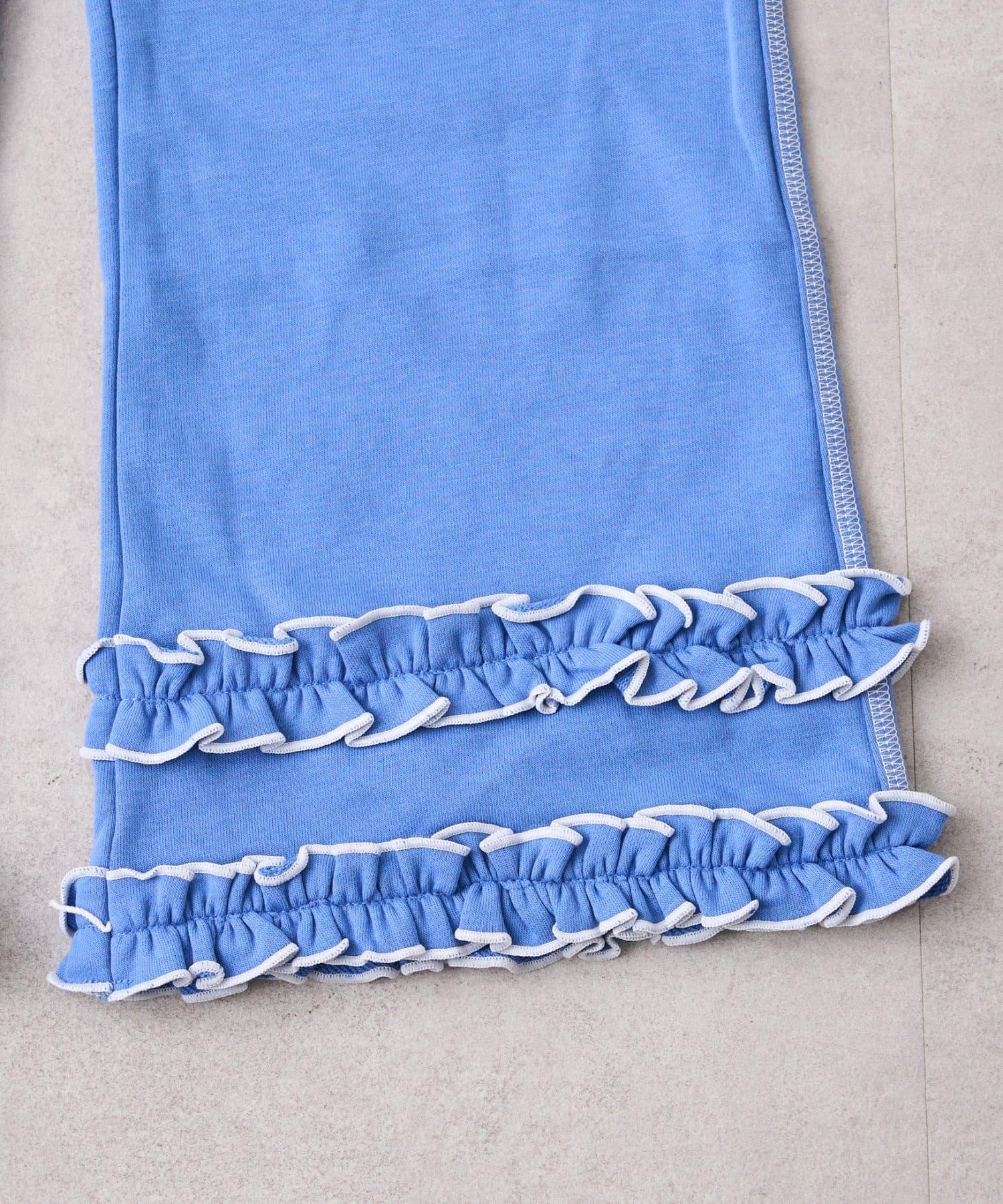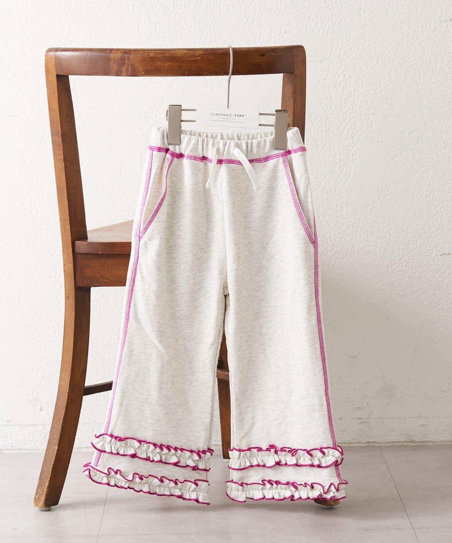 【KIDS】下襬荷葉邊拼色縫線衛褲
