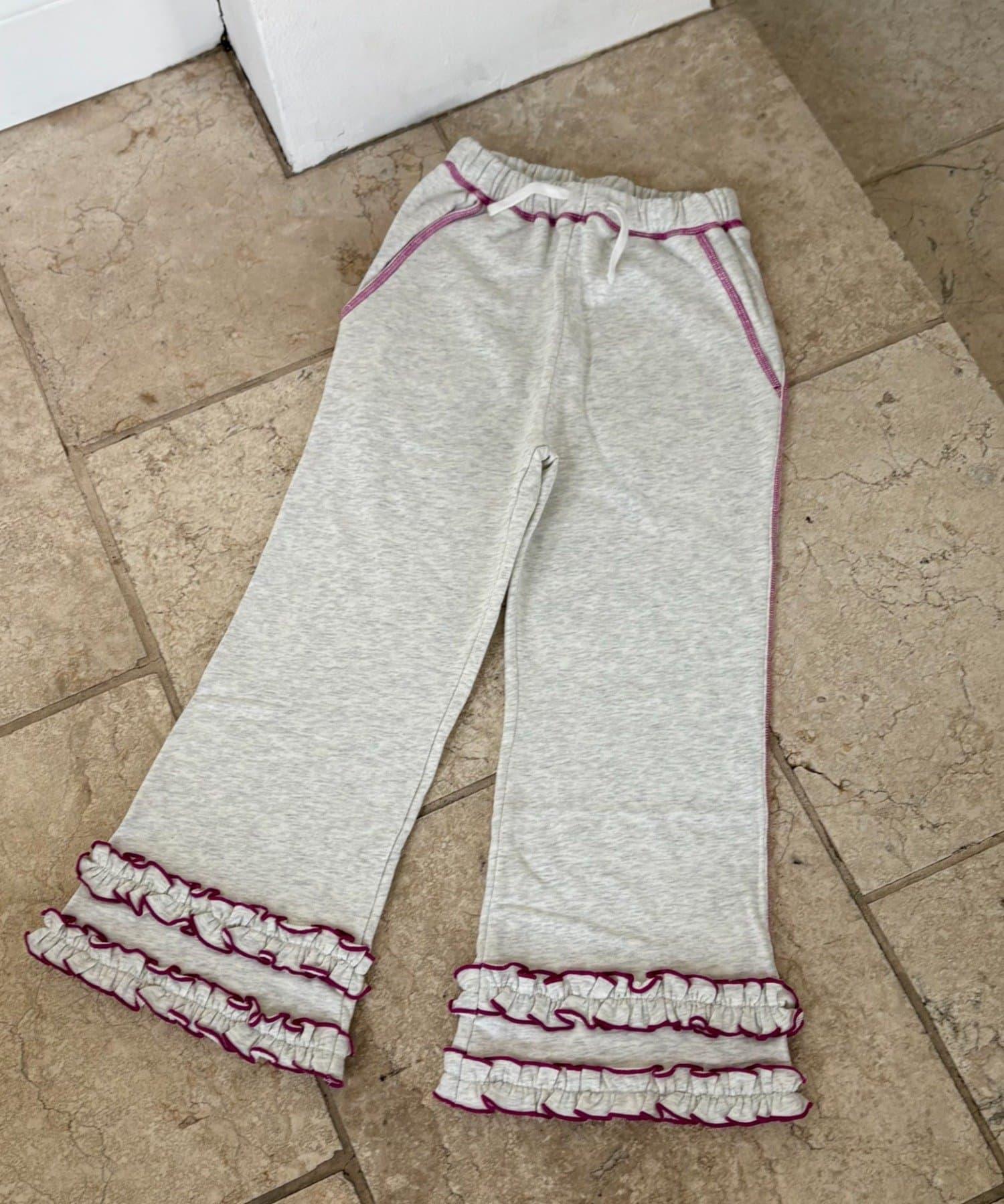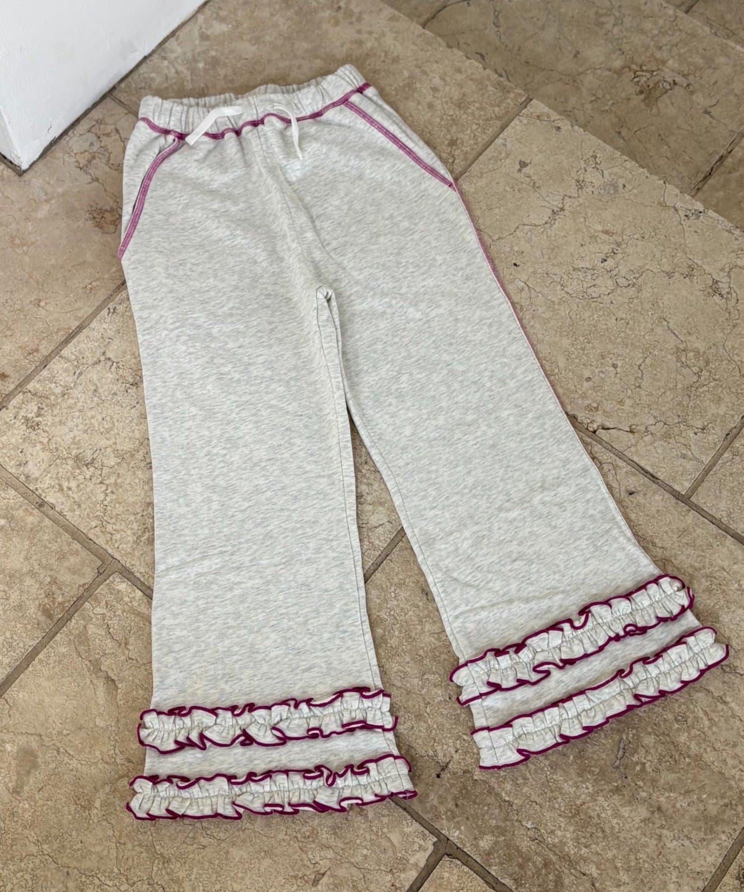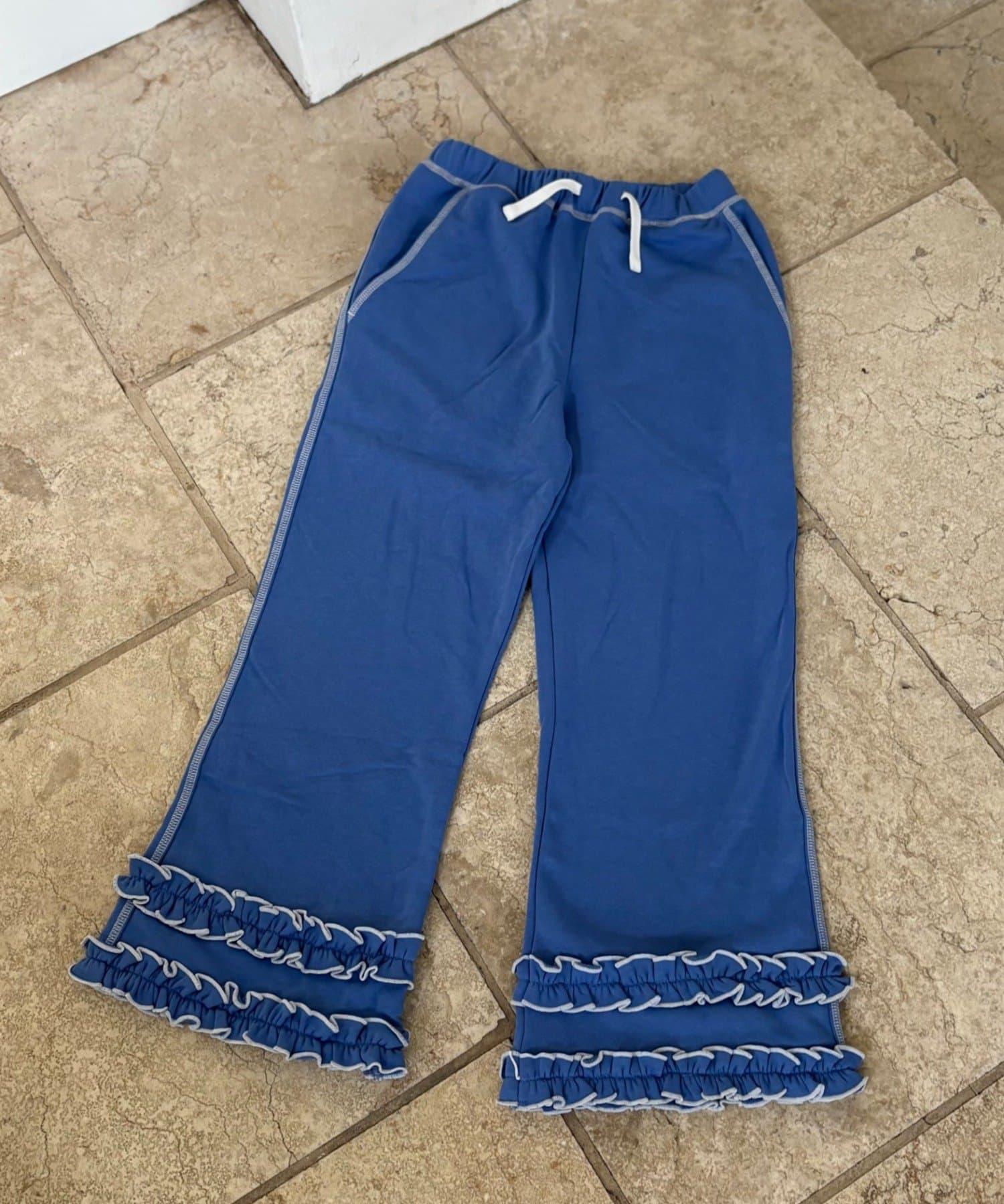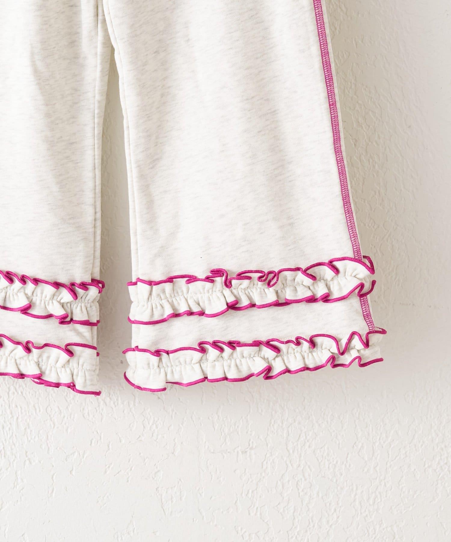【KIDS】下襬荷葉邊拼色縫線衛褲