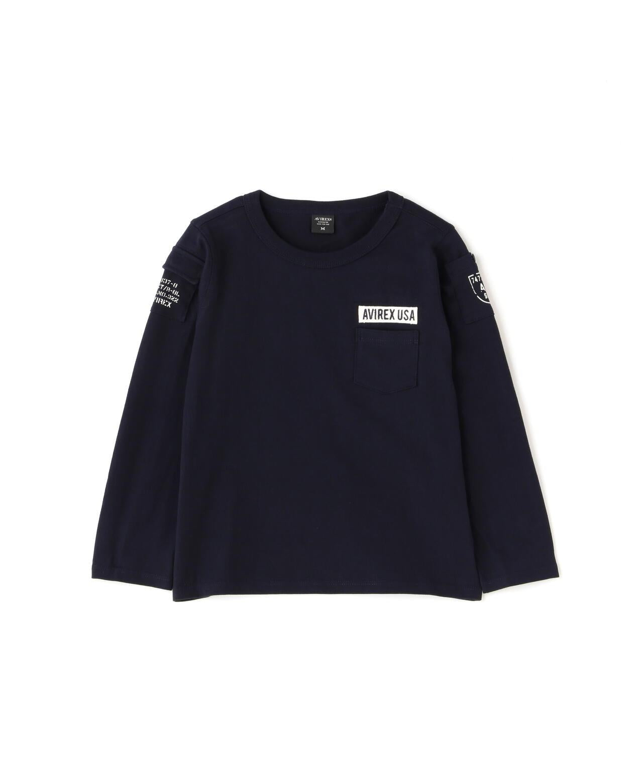 FATIGUE CREW NECK LONGSLEEVE T-SHIRT (KIDS) <產品詳情>--長期暢銷的 AVIREX 裁剪縫製款現已推出兒童款,是一款親子可搭配的趣味單品。這款單品充滿軍事元素,兩袖口袋的設計靈感來自疲勞褲 [AVIREX] 1975 年,AVIREX 作為美國空軍的承包商成立,通過提供飛行夾克,品牌知名度大幅提升。Avirex 源自軍方,以功能性設計所散發出的獨特美感為基礎。其獨特的外觀曾出現在以下電影中