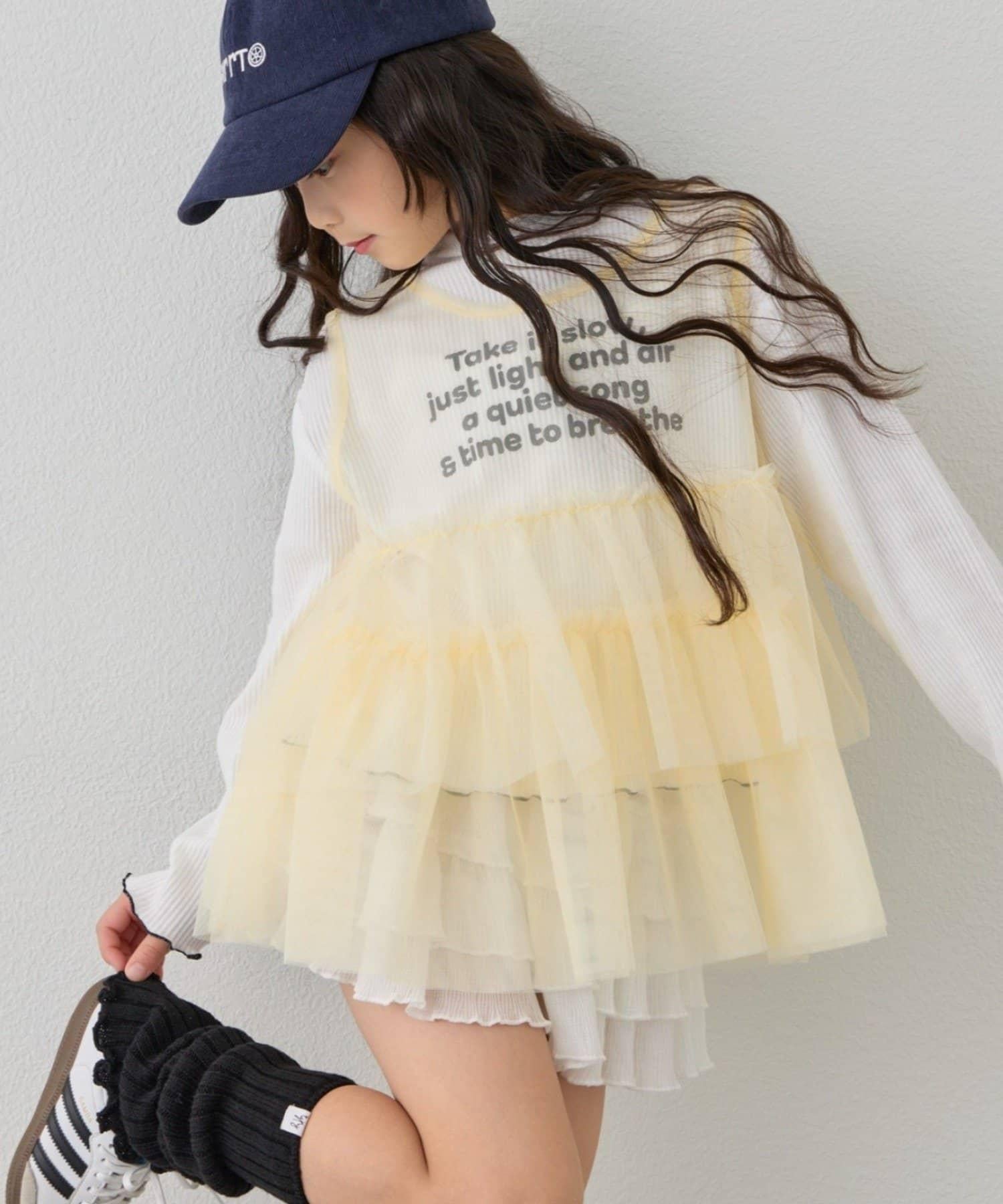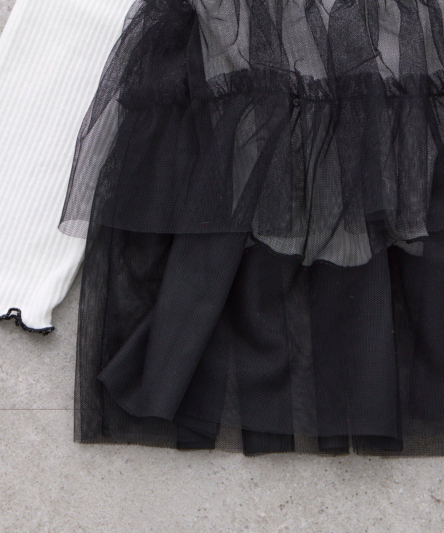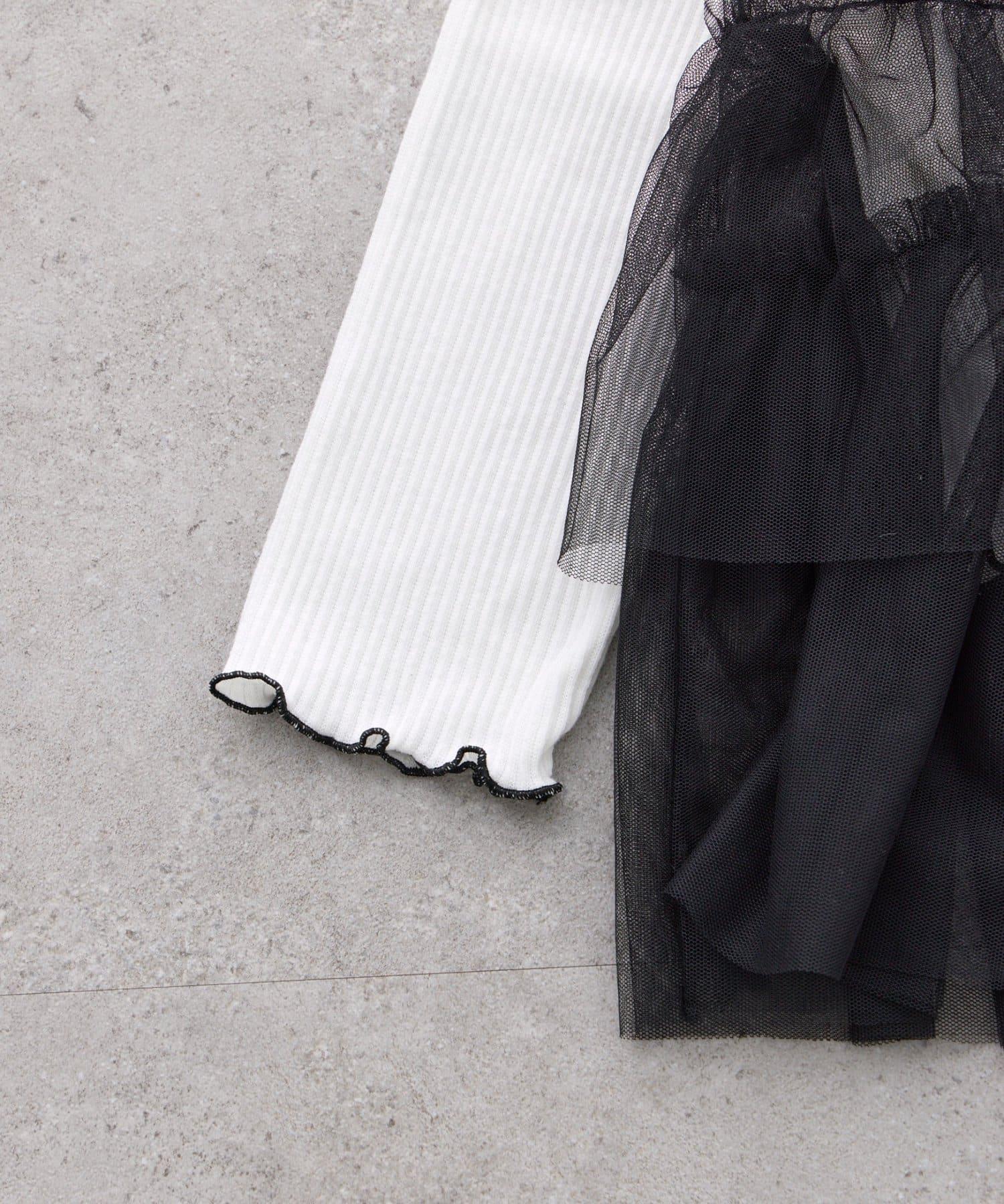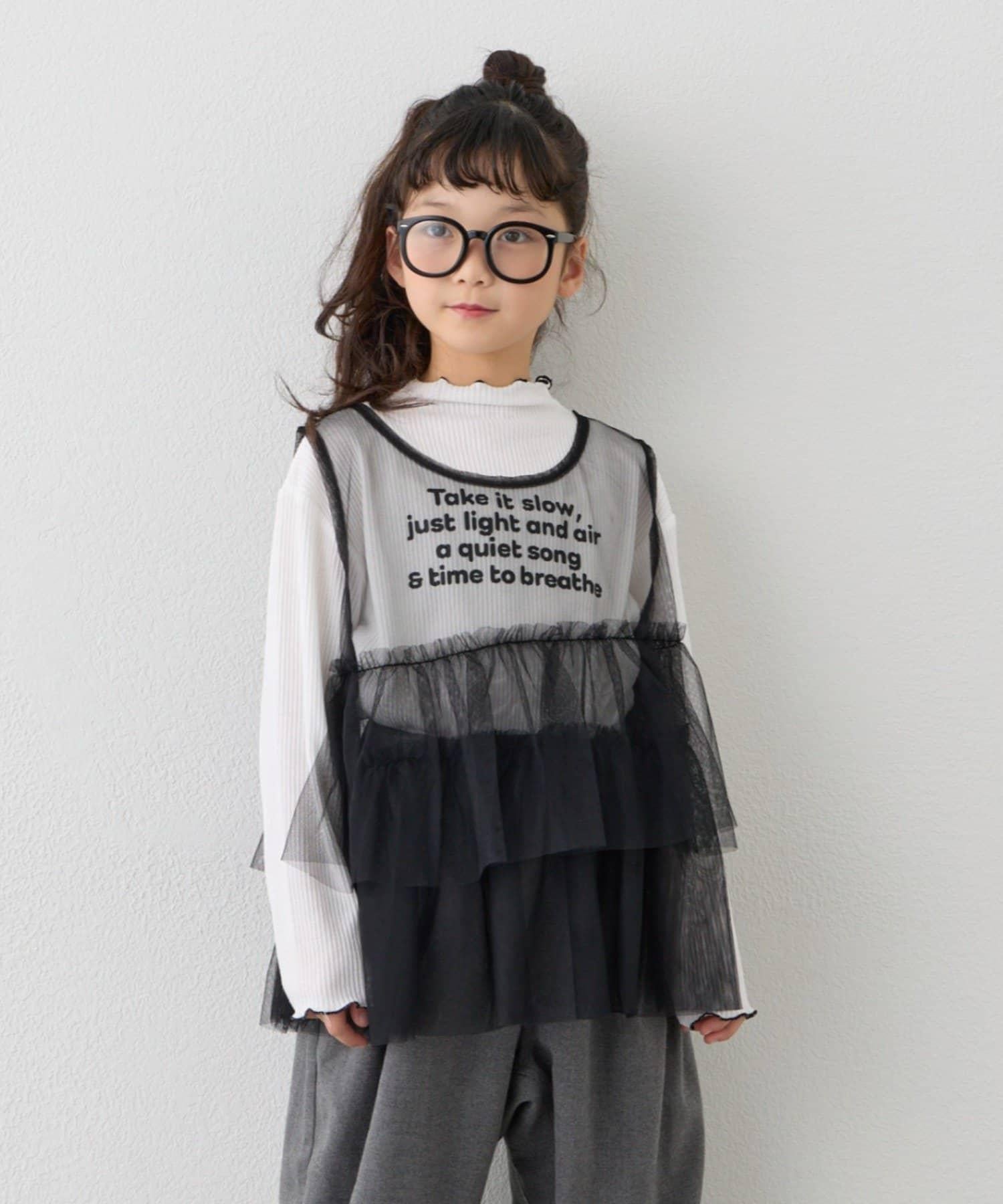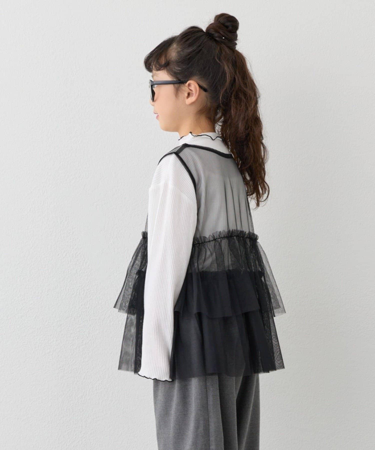 【KIDS】帶層疊網紗的羅紋上衣≪有大童尺碼≫