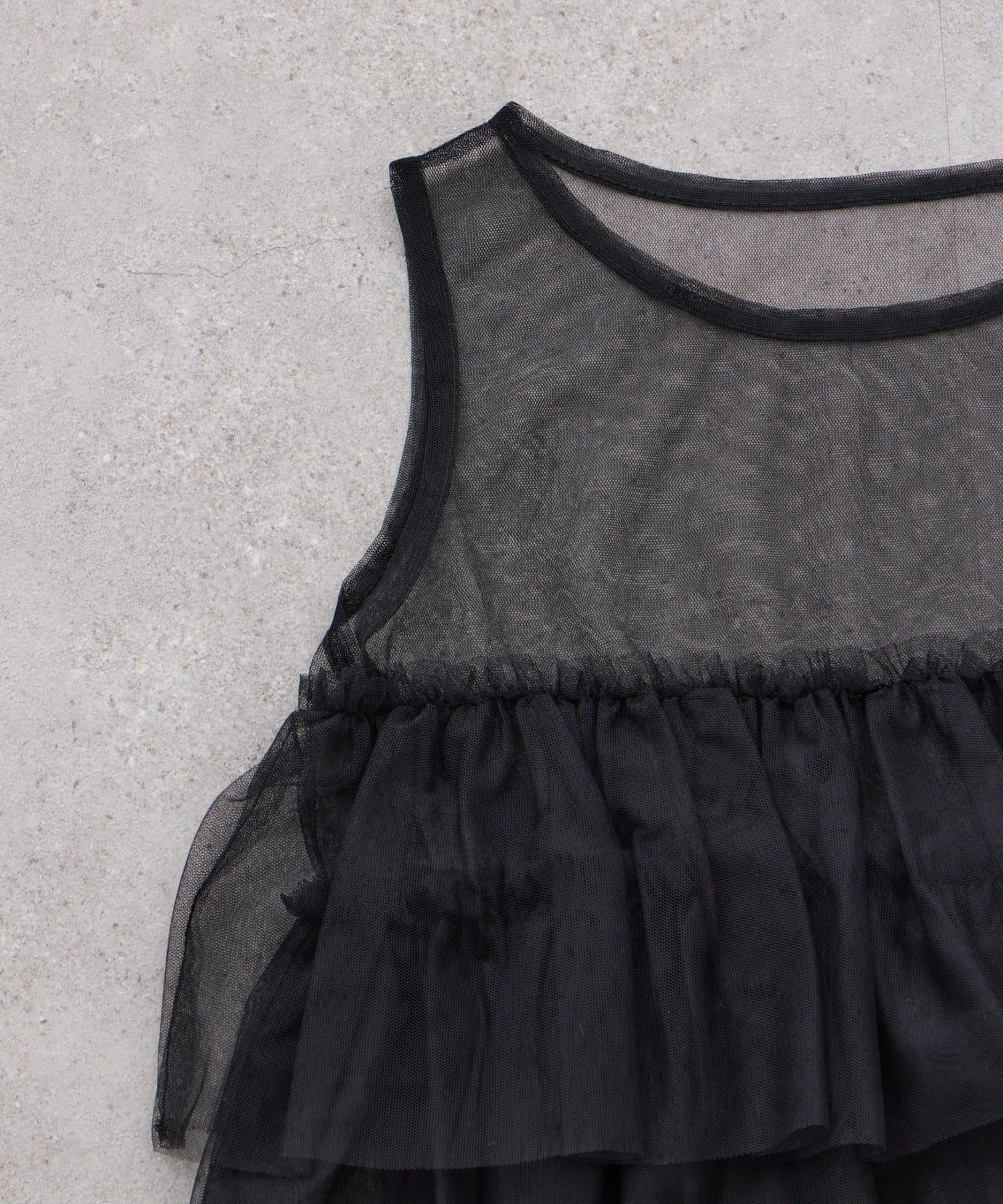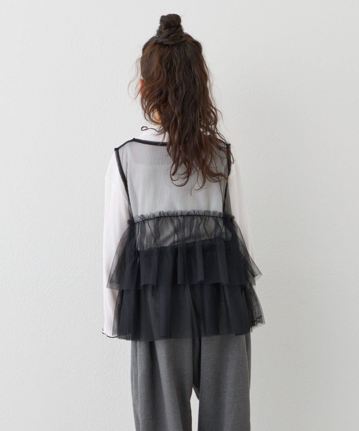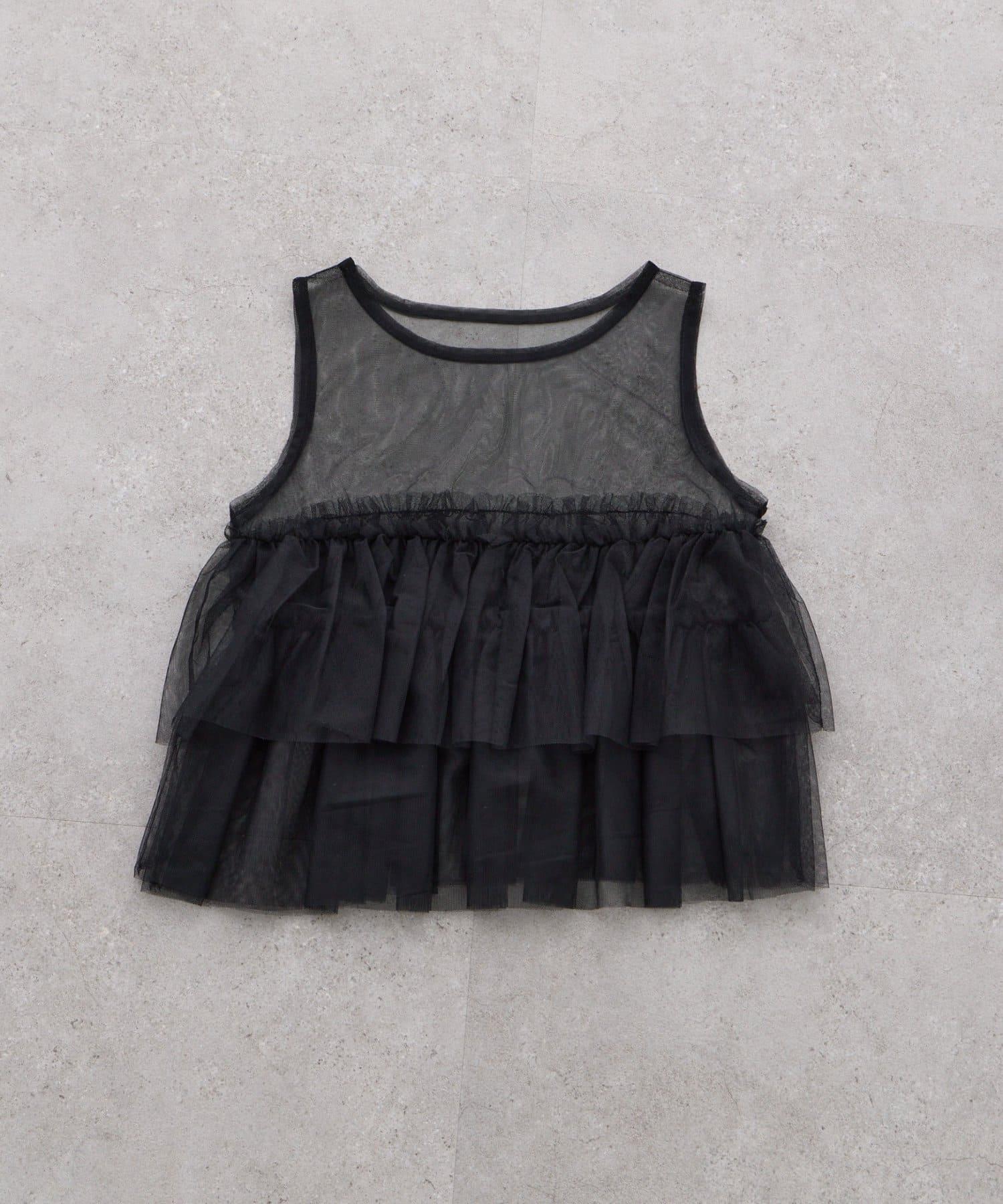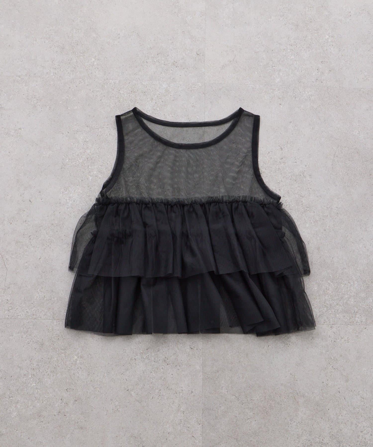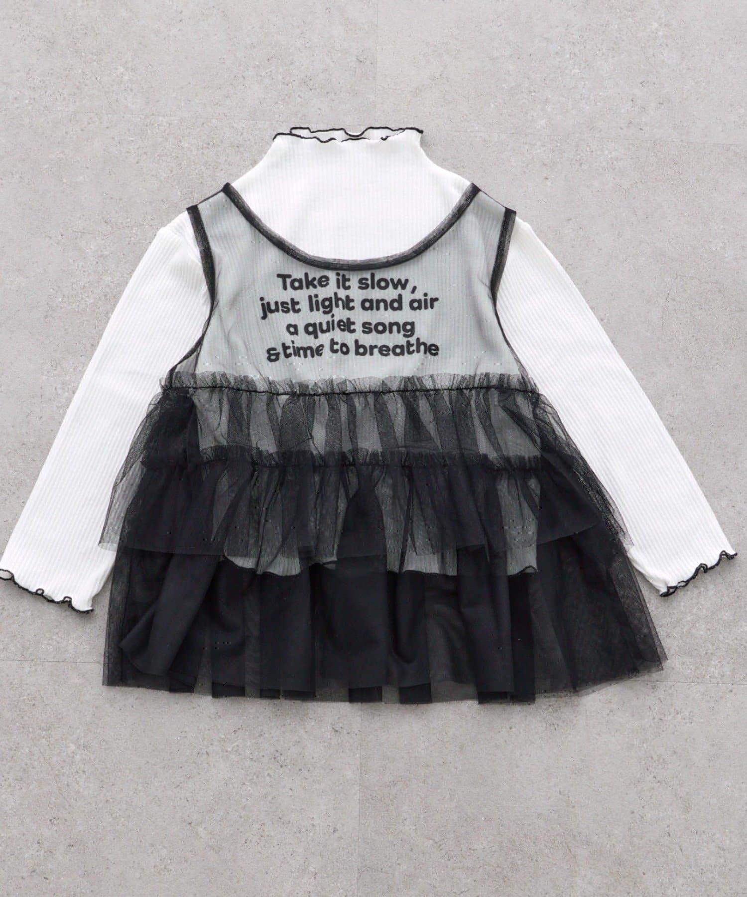 【KIDS】帶層疊網紗的羅紋上衣≪有大童尺碼≫